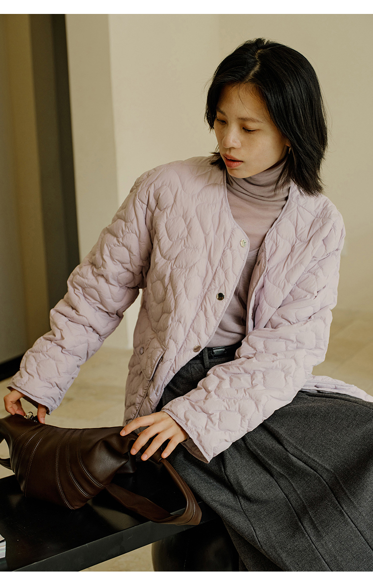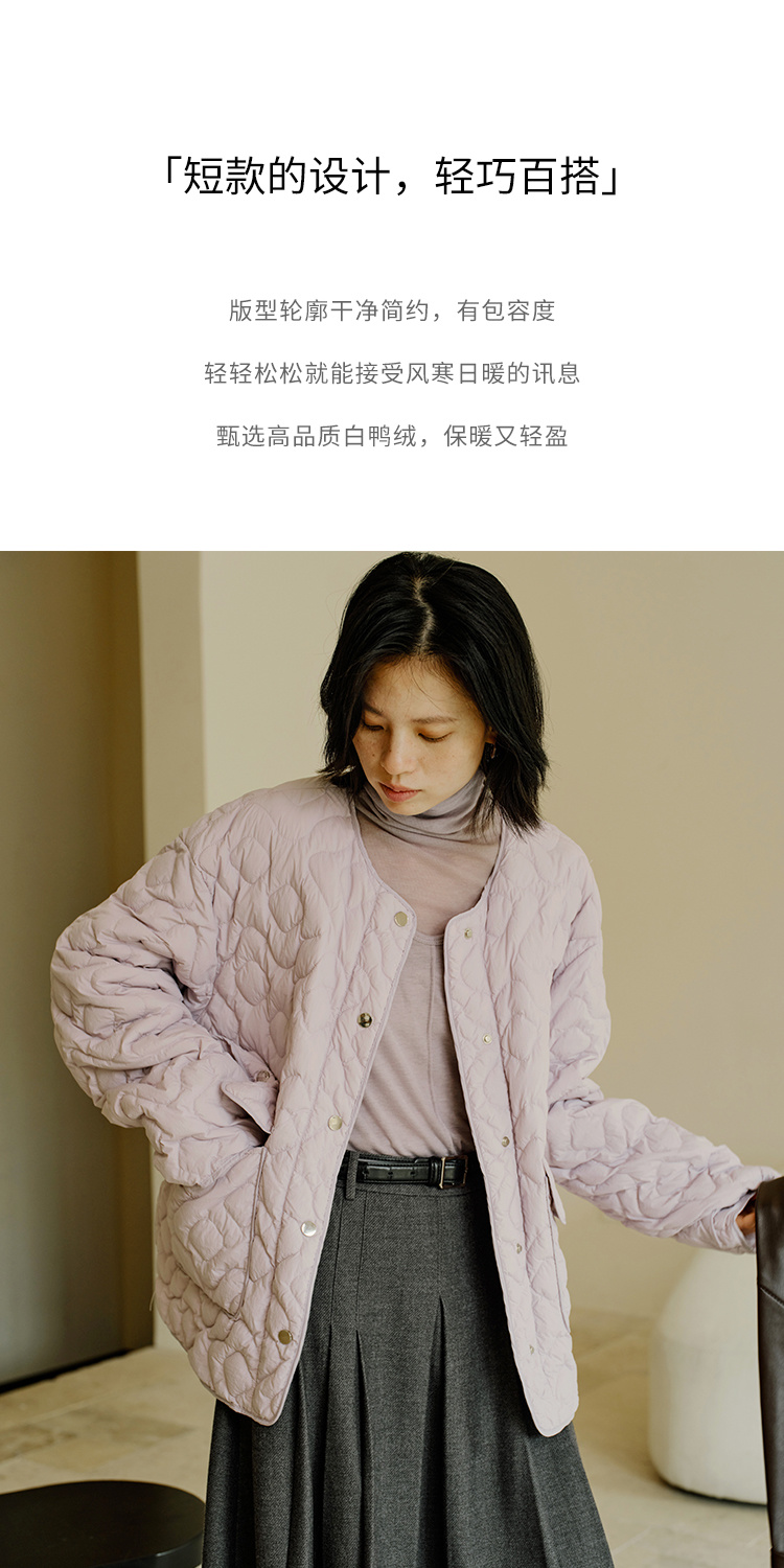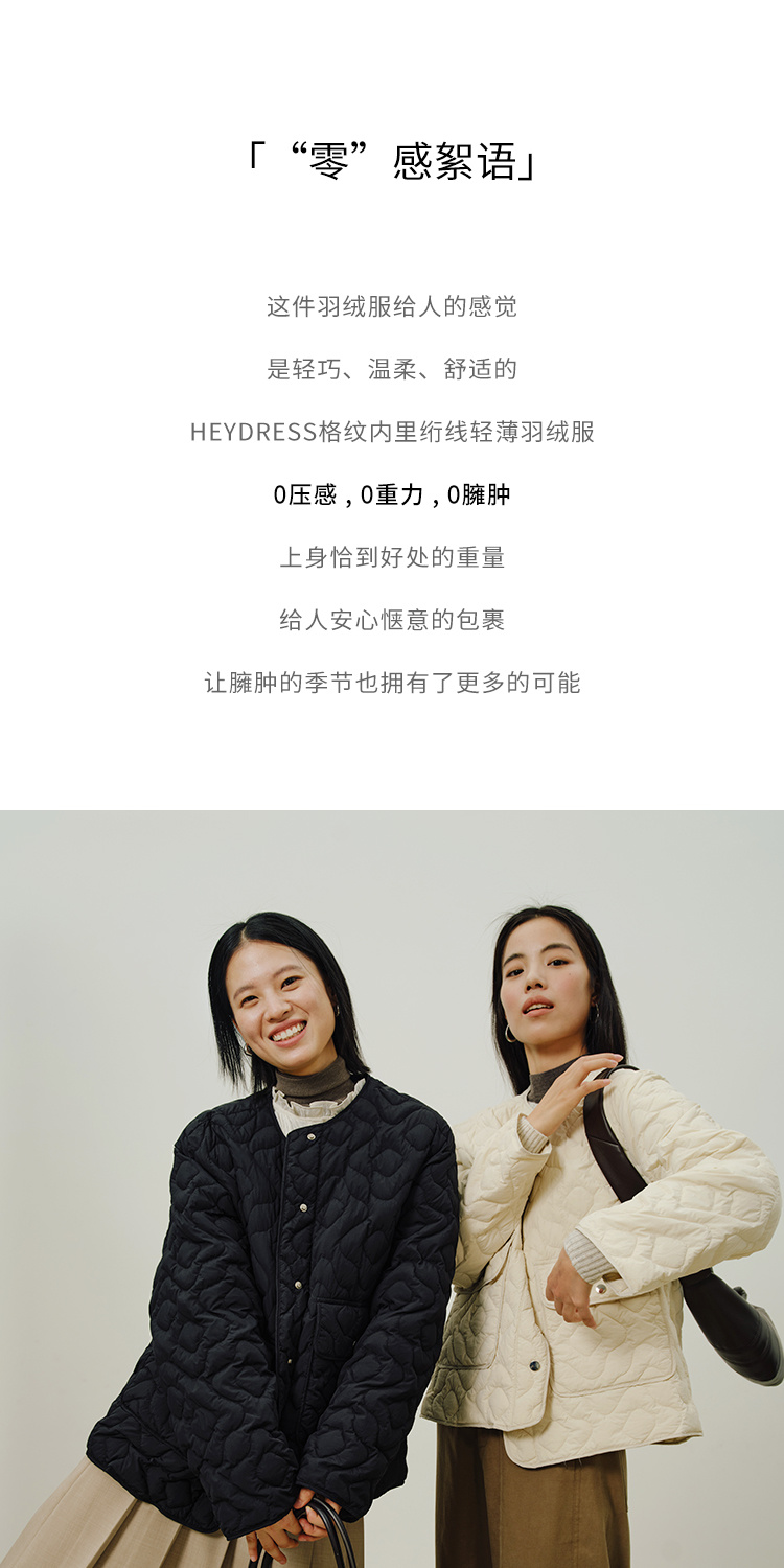 HeyDress轻薄绗线羽绒服女秋冬圆领保暖内搭90鸭绒短外套叠穿上衣