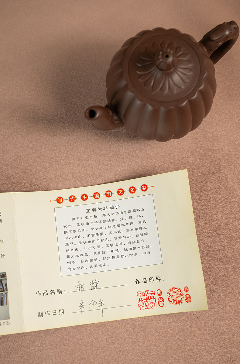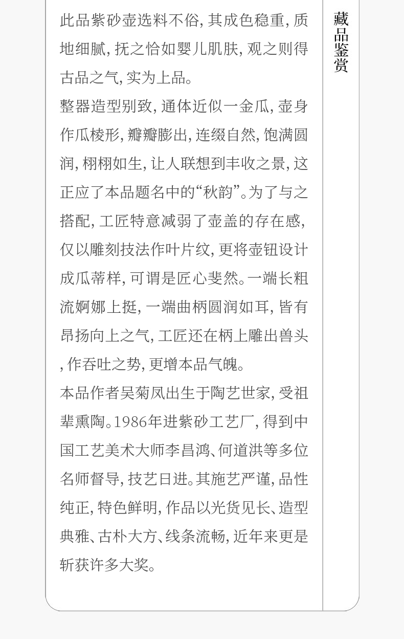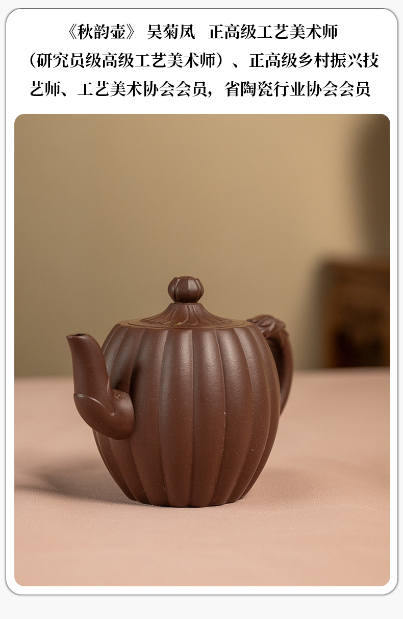 《秋韵壶》 吴菊凤 正高级工艺美术师(研究员级高级工艺美术师)、正高级乡村振兴技艺师、工艺美术协会会员,省陶瓷行业协会会员
