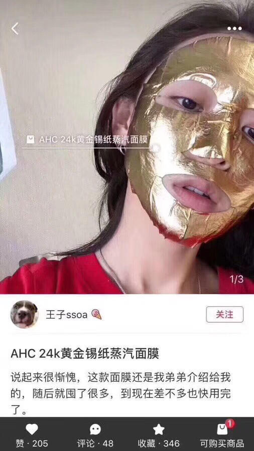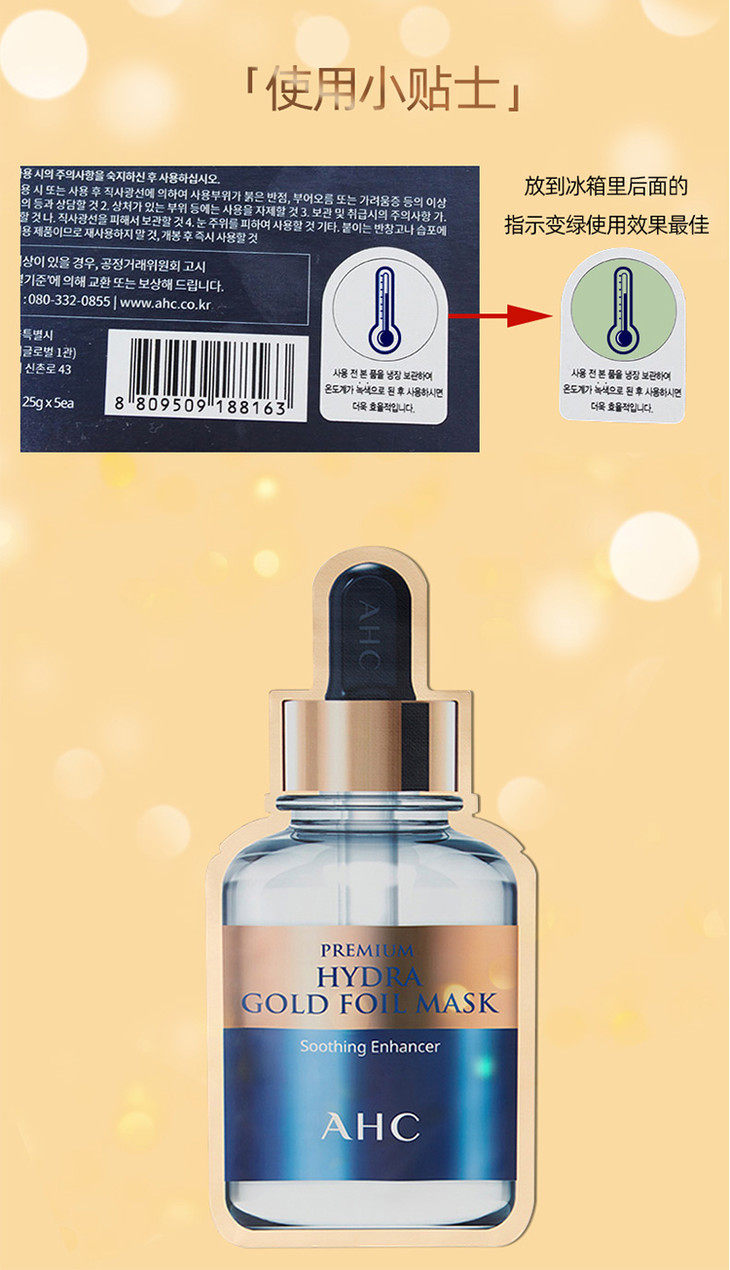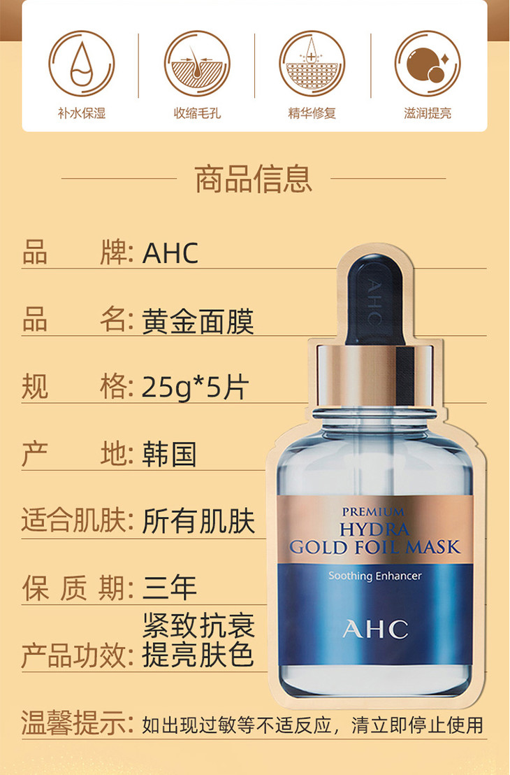 ❄ BX👑 AHC hydry gold foil mask五代黃金蒸汽面膜5片㊙ 这款黄金面膜你发现了吗?和雅诗兰黛的锡纸面膜如出一辙!雅诗兰黛的1680块才8片‼️ 一片要210块啊!AHC的你看看多划算,同样的锡纸同样的面膜同一个世界同一个梦想😏 高保湿高营养,补水镇定效果超明显,精华液超多!长时间保湿💗 不粘腻、不刺激、净颜、舒缓肌肤。尤其针对现在肌肤吸收不畅,暗沉,松弛等等问题❤
