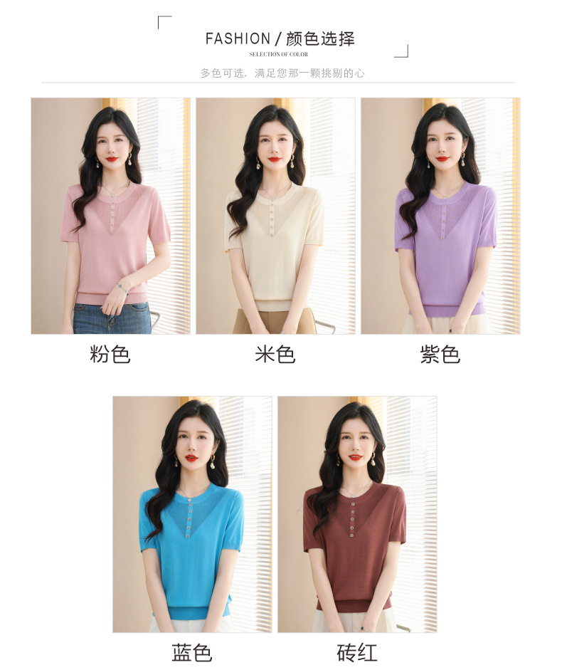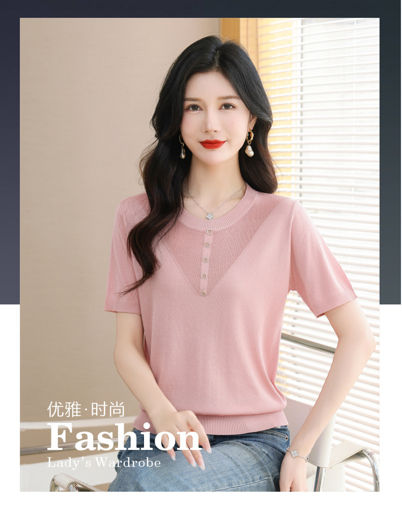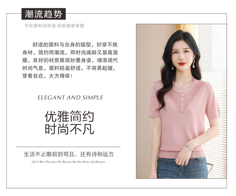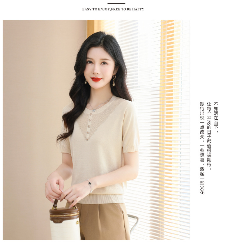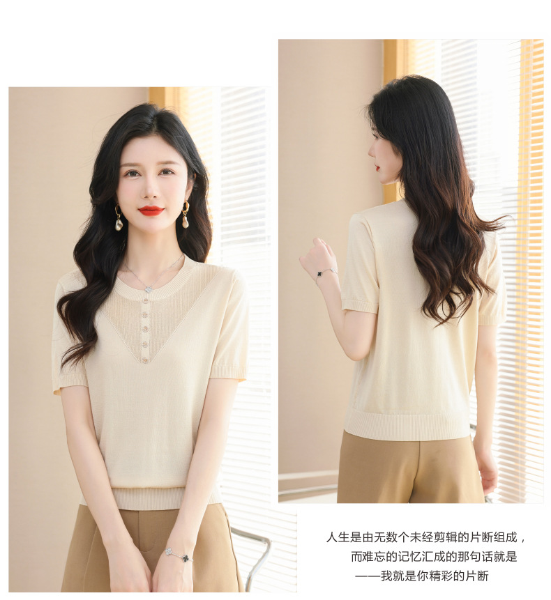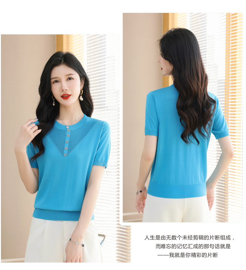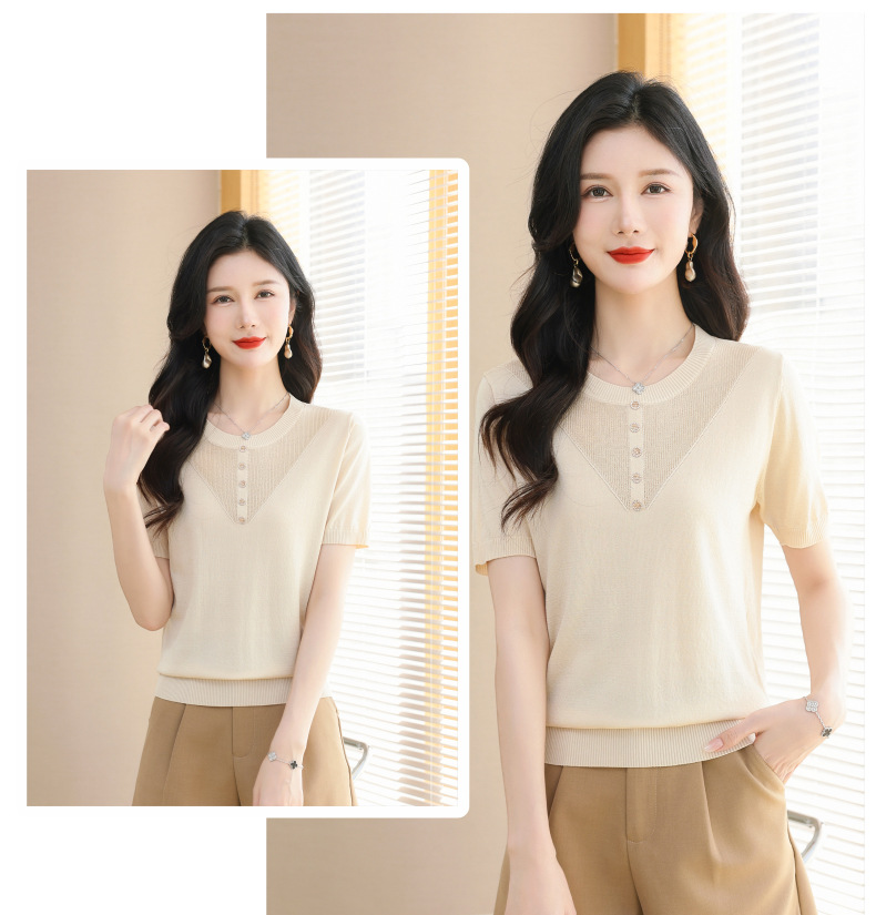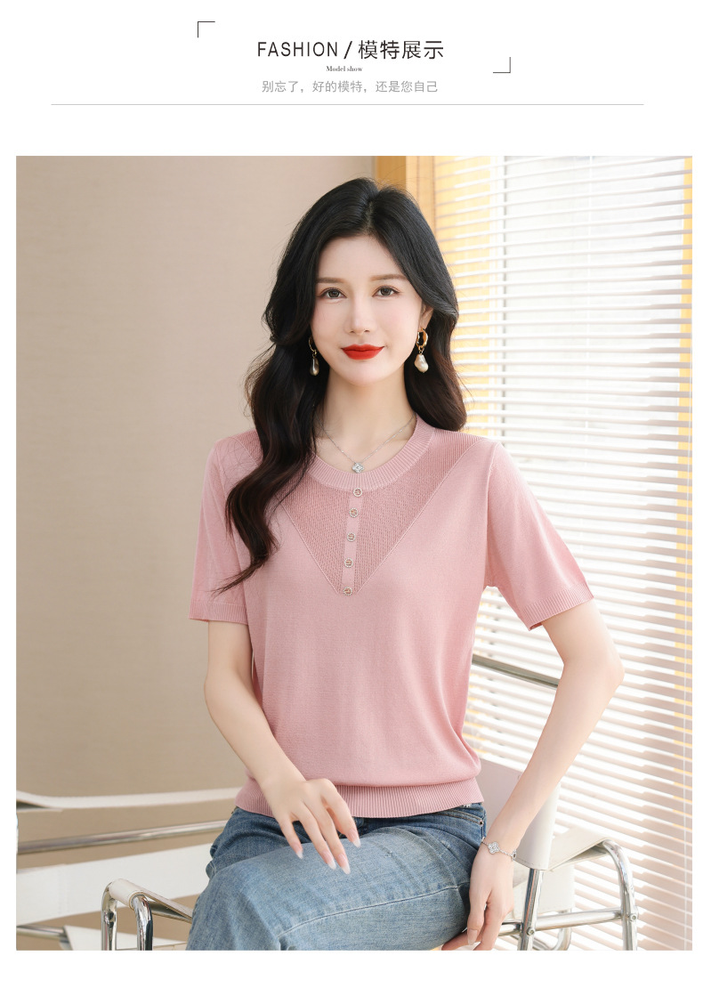 CC夏季妈妈针织衫体恤短款上衣2024新款洋气镂空薄款冰丝短袖t恤衫