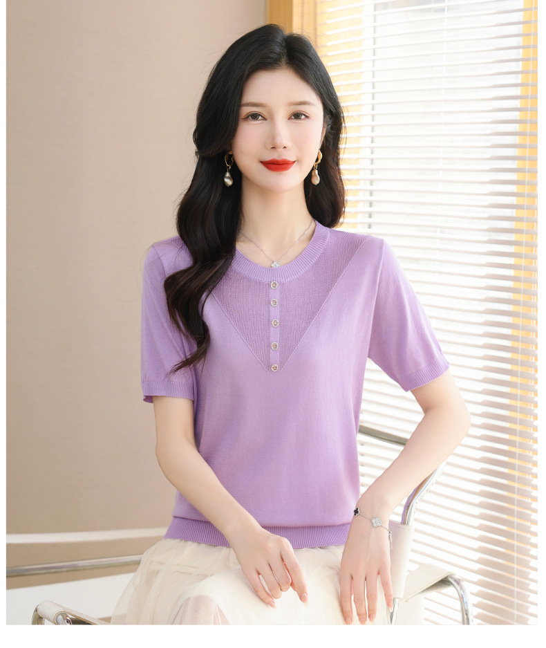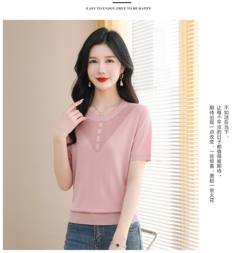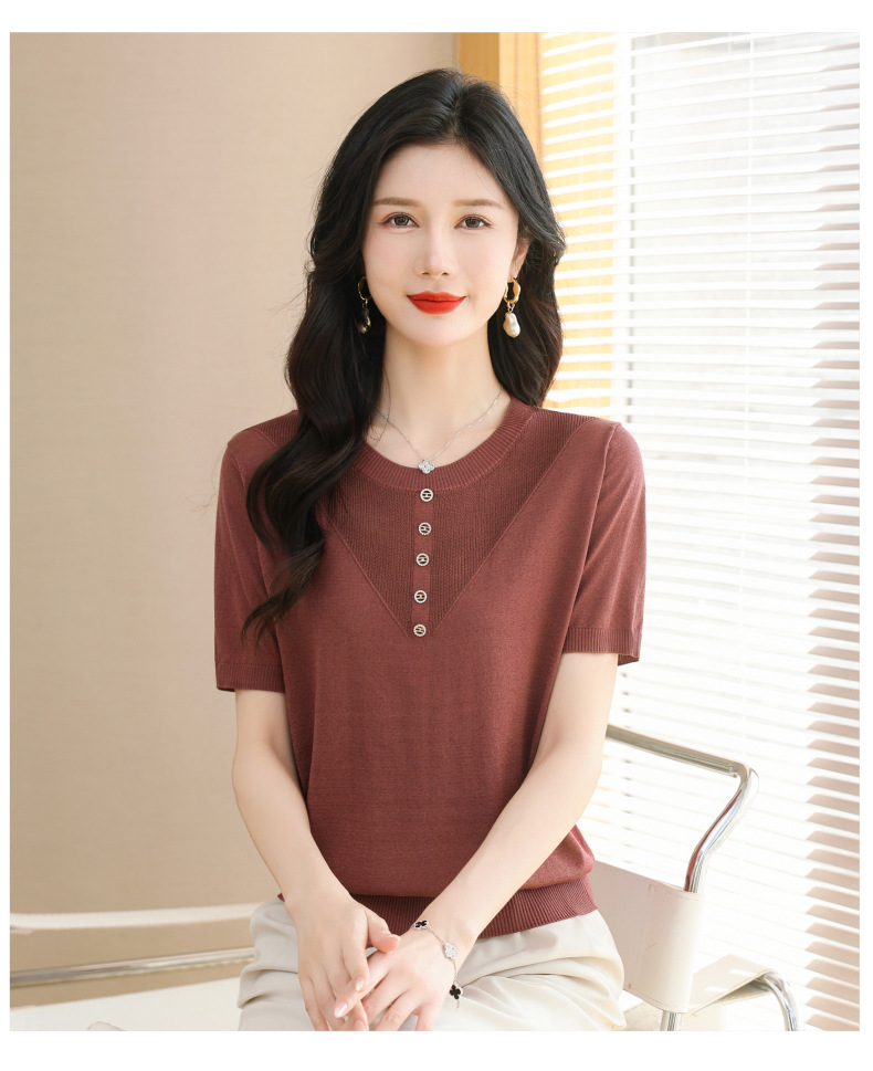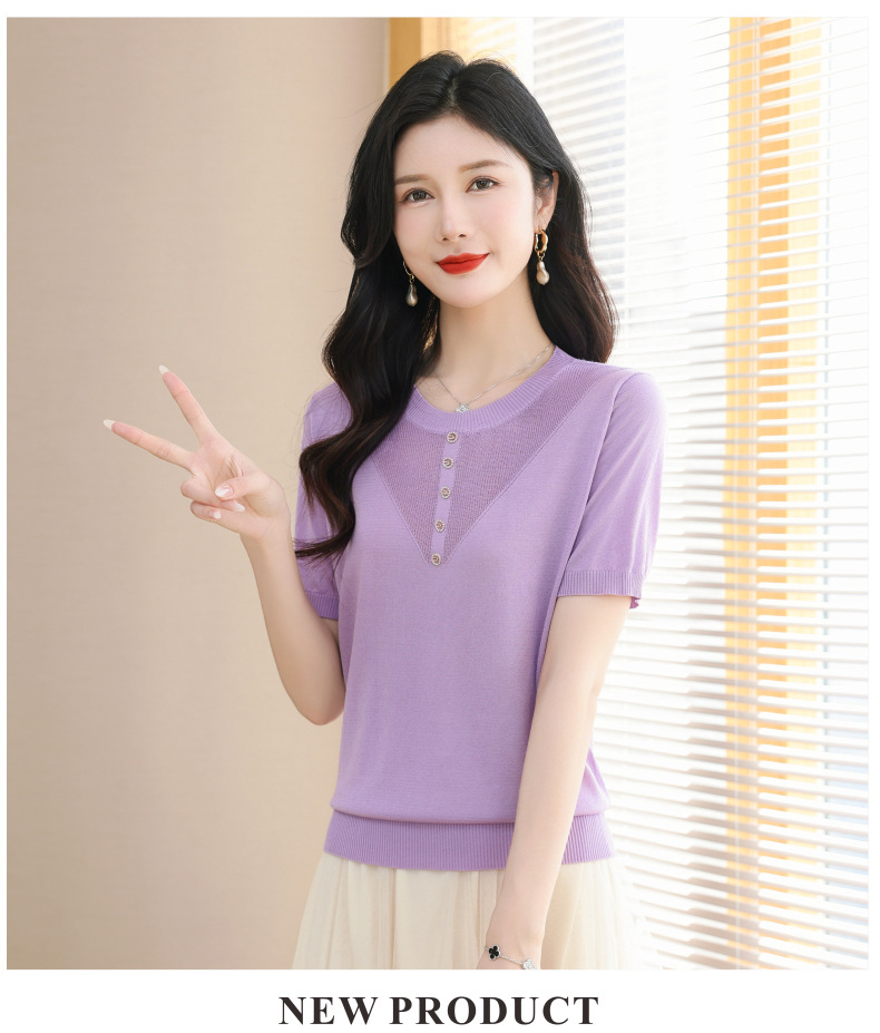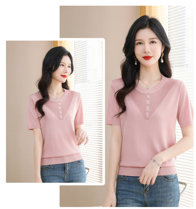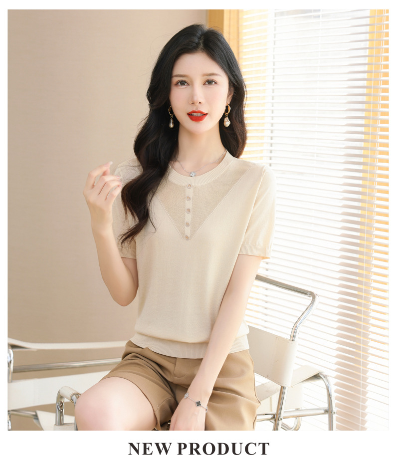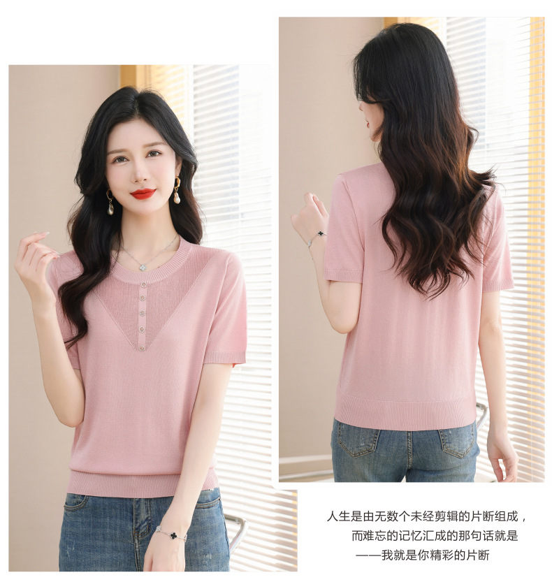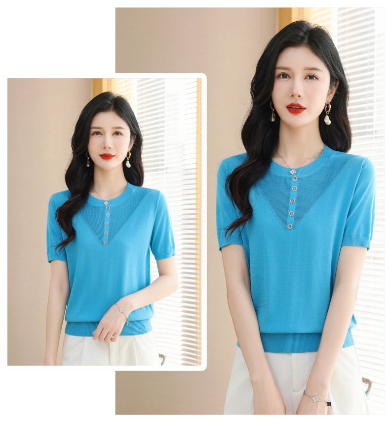 CC夏季妈妈针织衫体恤短款上衣2024新款洋气镂空薄款冰丝短袖t恤衫