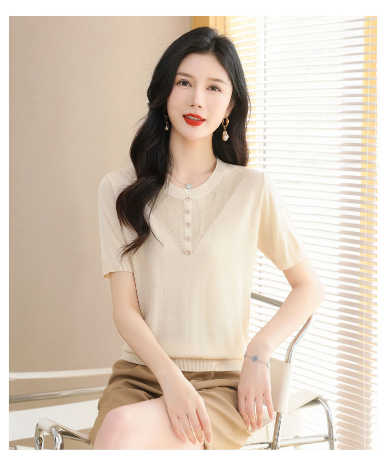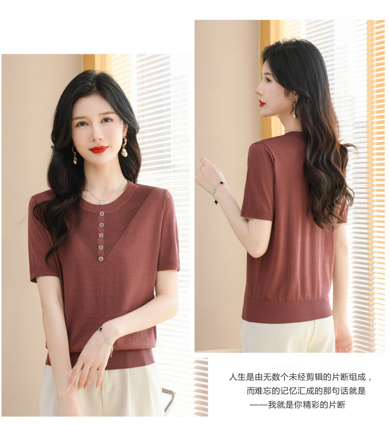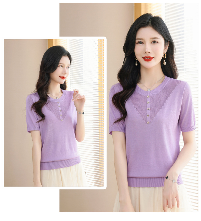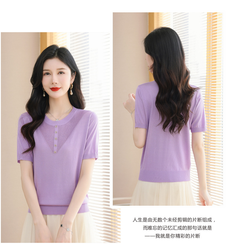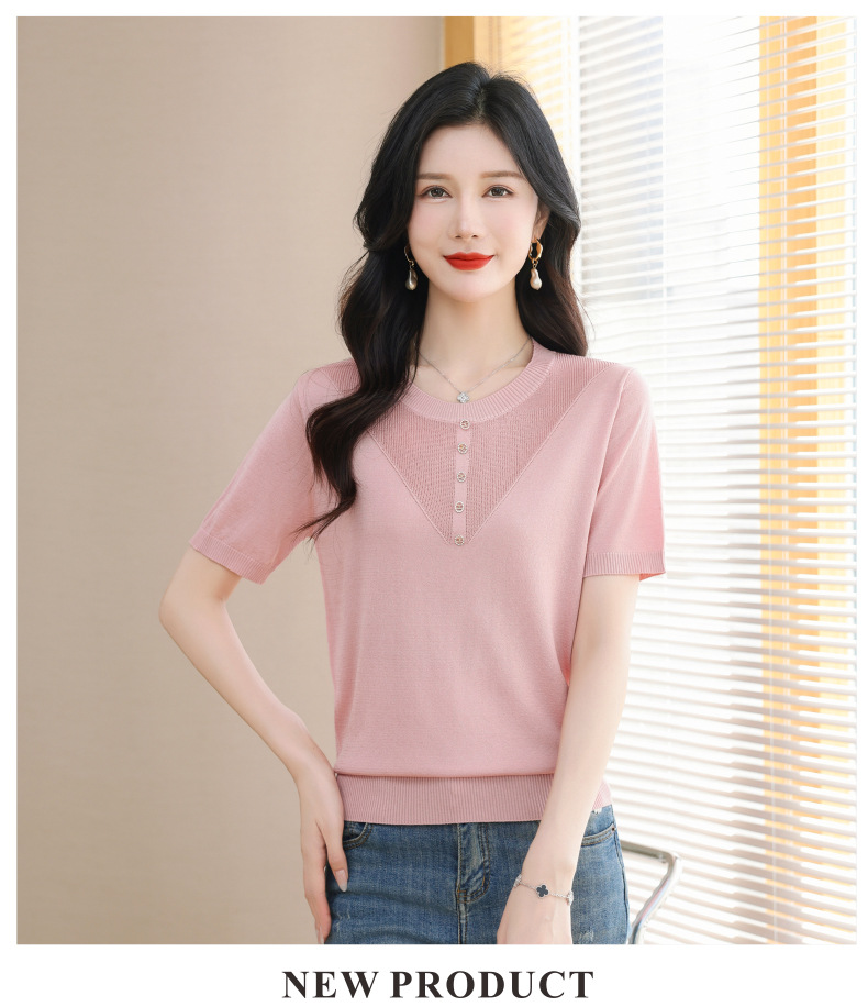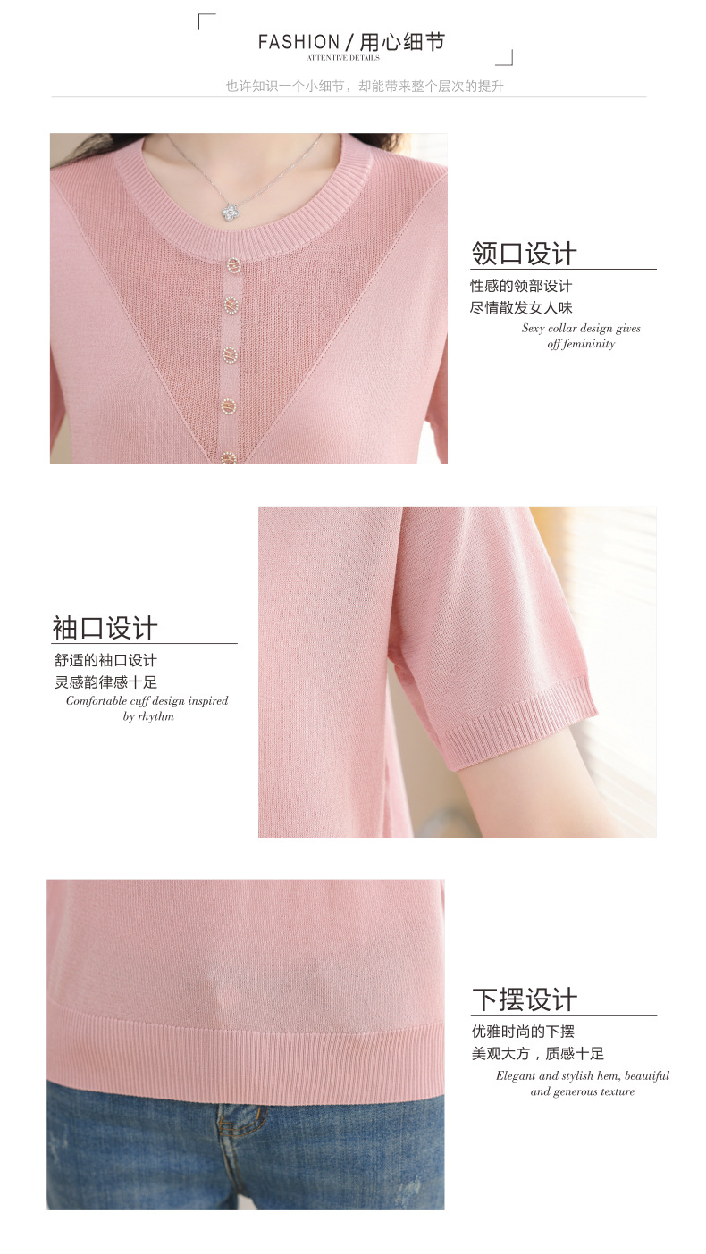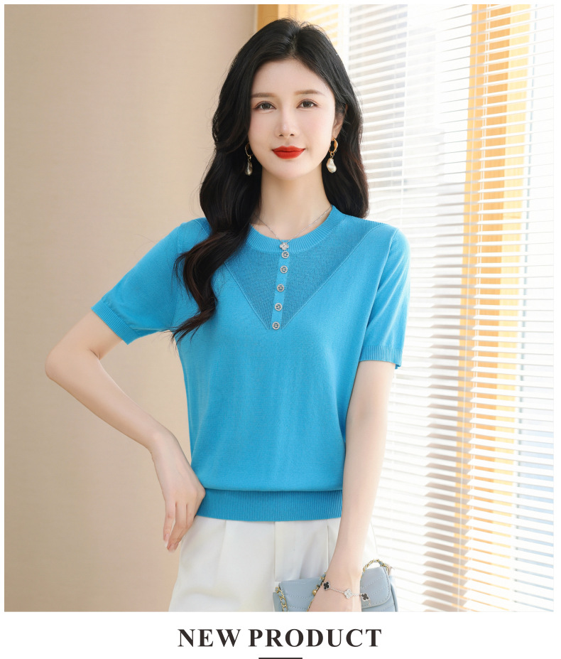 CC夏季妈妈针织衫体恤短款上衣2024新款洋气镂空薄款冰丝短袖t恤衫
