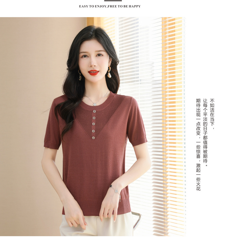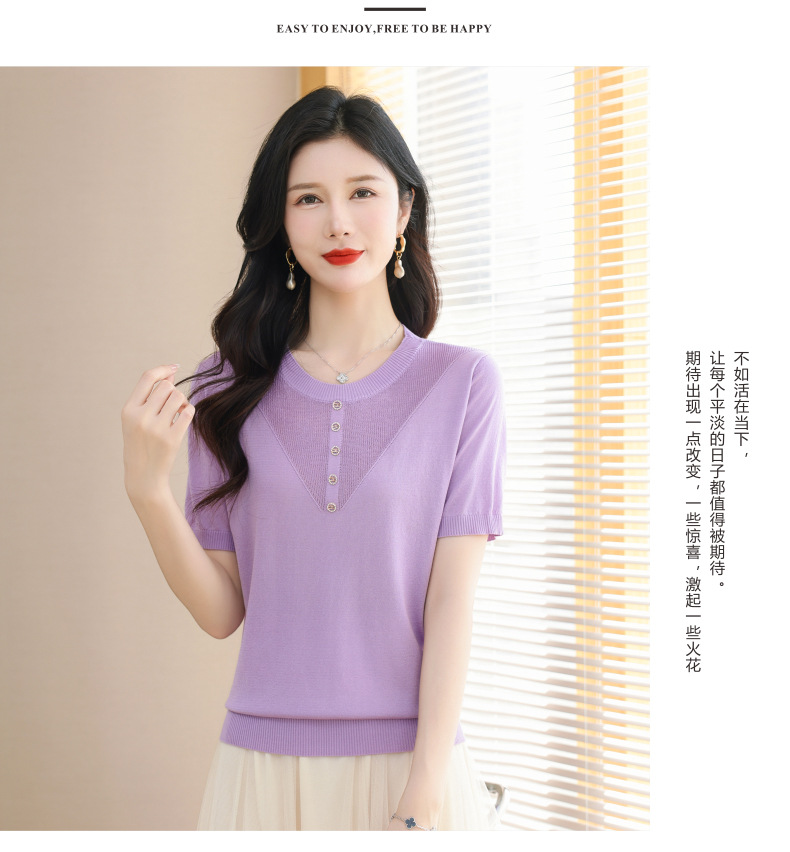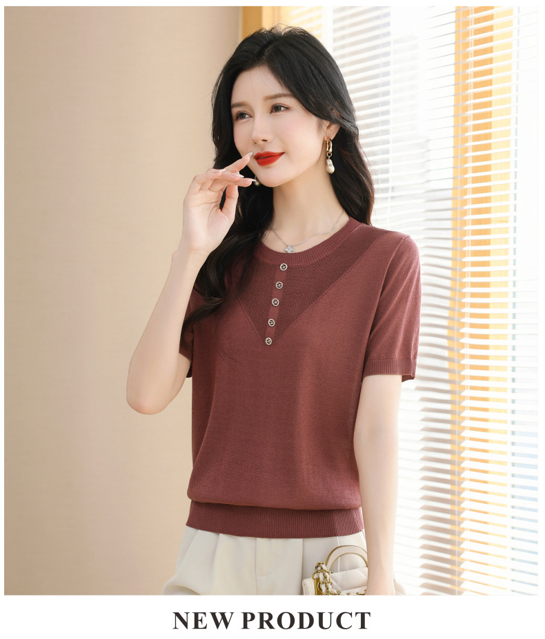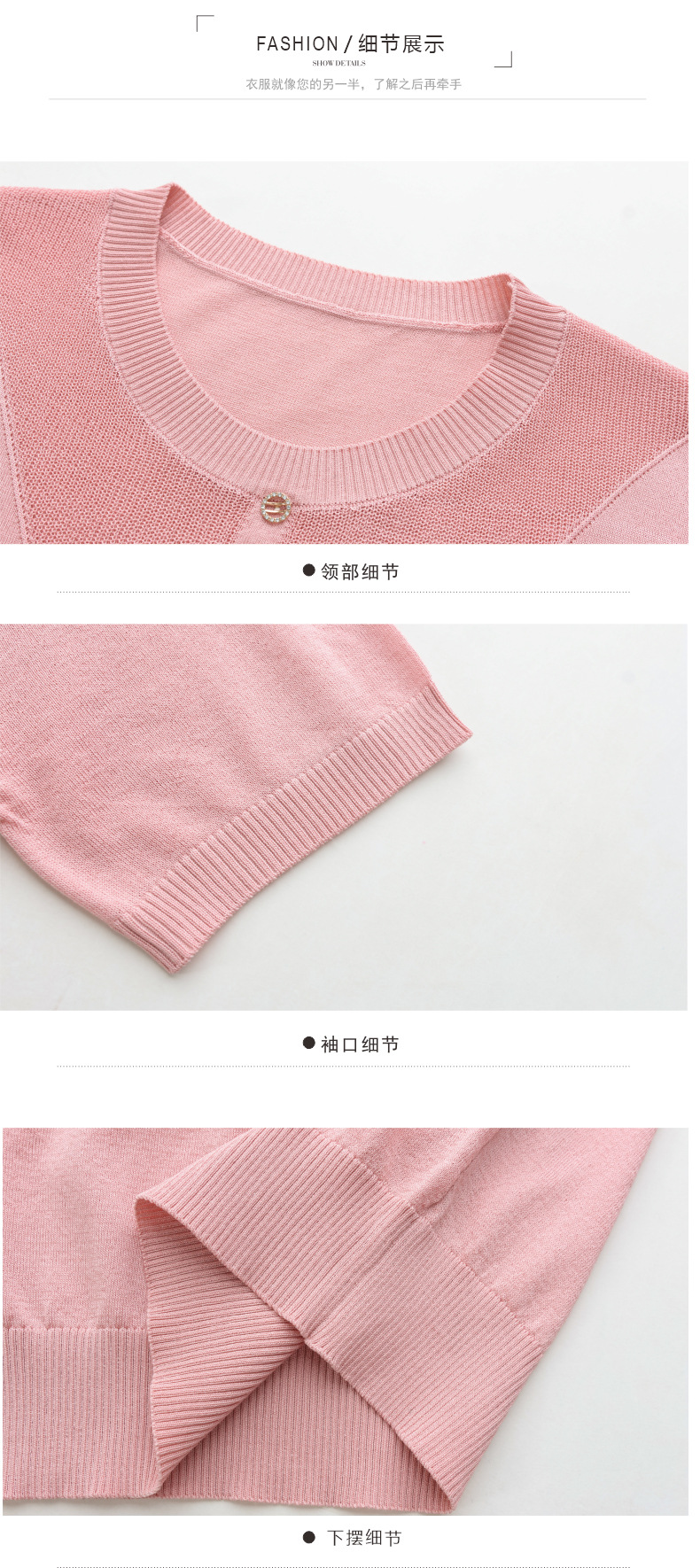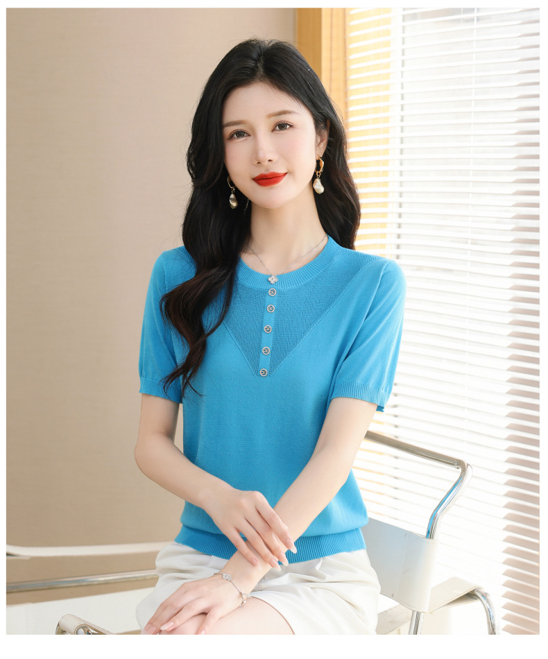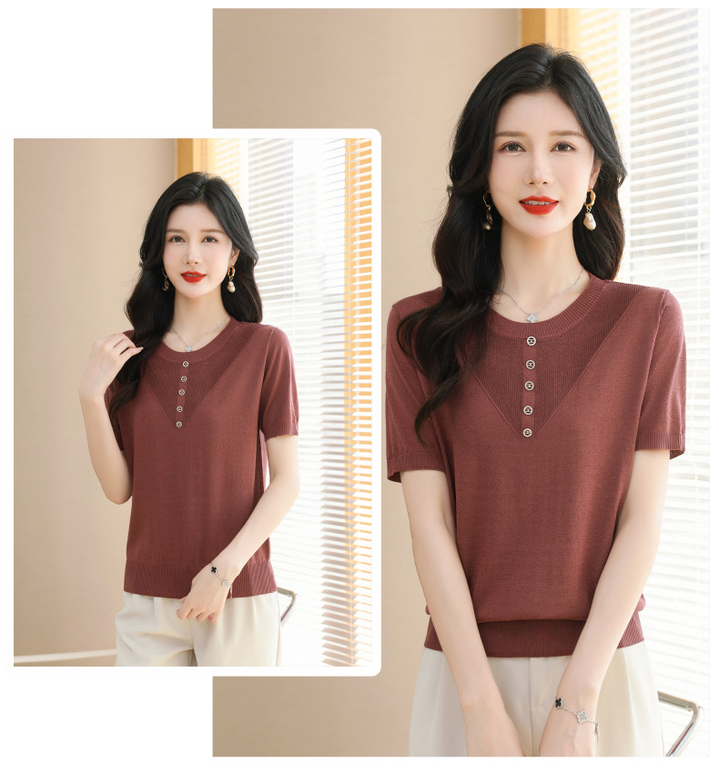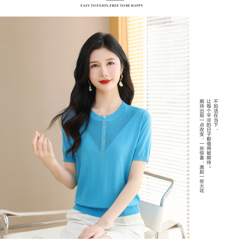 CC夏季妈妈针织衫体恤短款上衣2024新款洋气镂空薄款冰丝短袖t恤衫