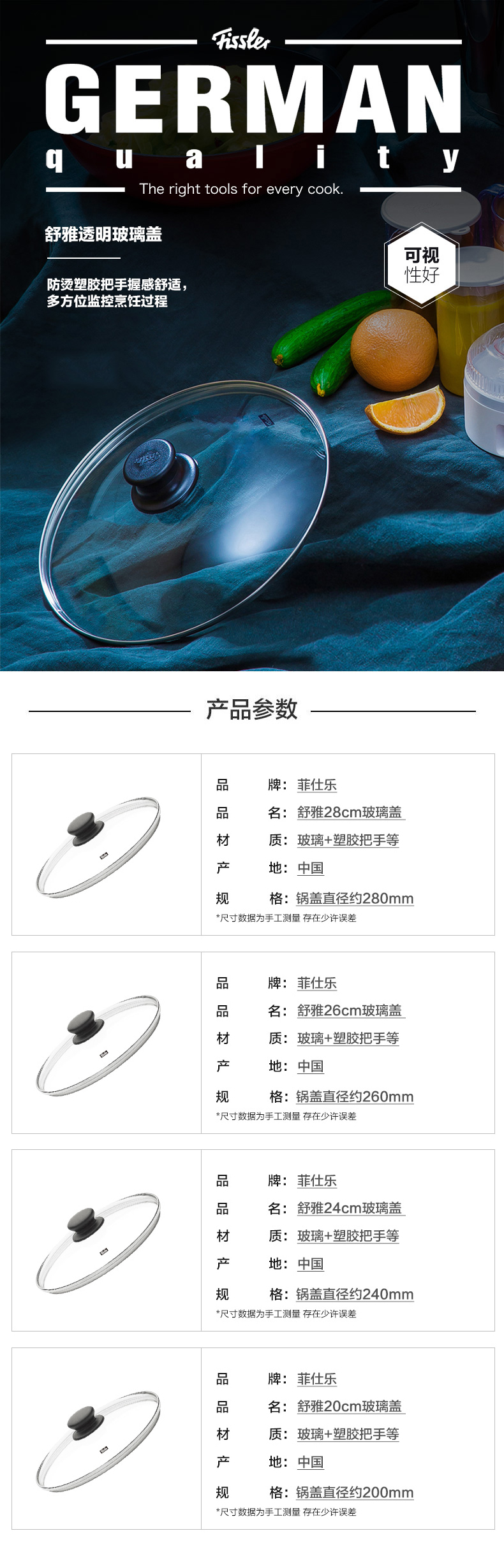 菲仕乐 舒雅玻璃盖 (不粘锅适用)