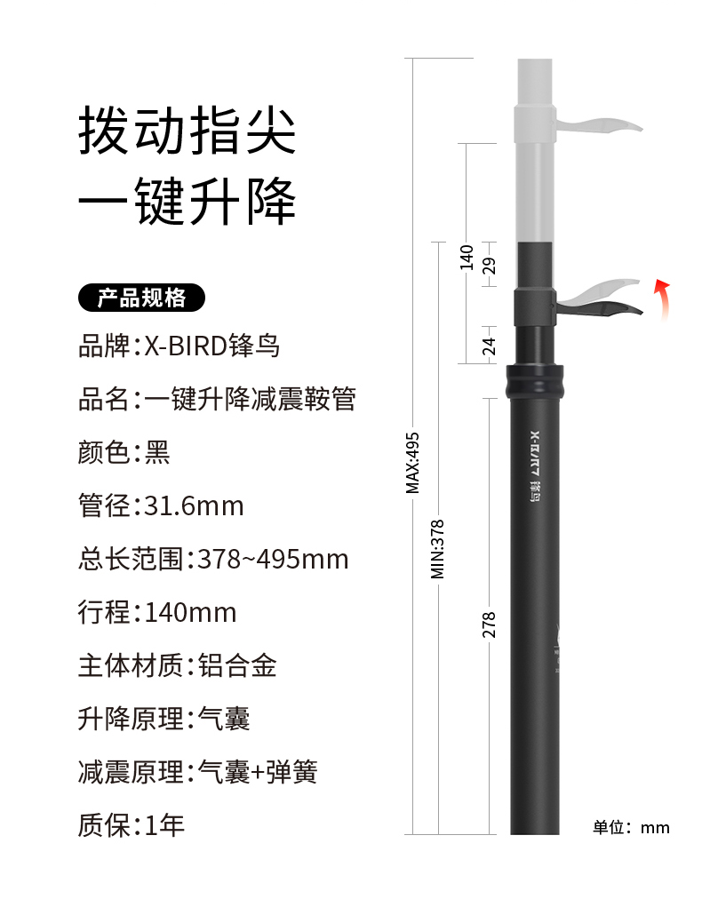 锋鸟代驾车NEO PRO HULK 通用 减震鞍管一键升降鞍管