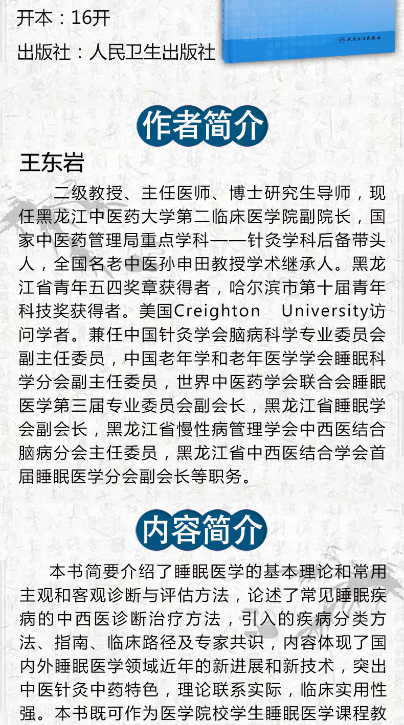 中西医结合睡眠医学概要 王东岩主编 2020年7月参考书