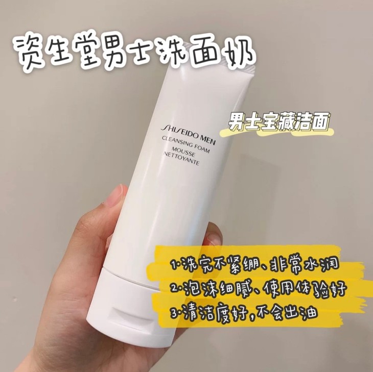 资生堂男士洁面乳125ML👍洁面膏是属于氨基酸与皂基两性,避免了氨基酸过于温和清洁力太低❌,又避免了皂基太强太刺激❌。🙇可适当的解决油脂分泌过剩的问题,控油的同时不会过分干燥,能改善肌肤粗糙,带走黑头和暗哑的表皮细胞,焕活疲倦暗哑肌肤🌟。蕴含植物性磨砂粗粒、微细颗粒及幼滑微粒🤖,综合起来超优秀,推荐混合油皮和混油皮的男生哦!