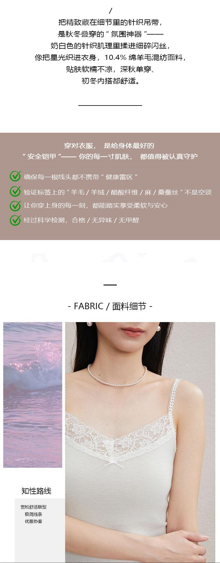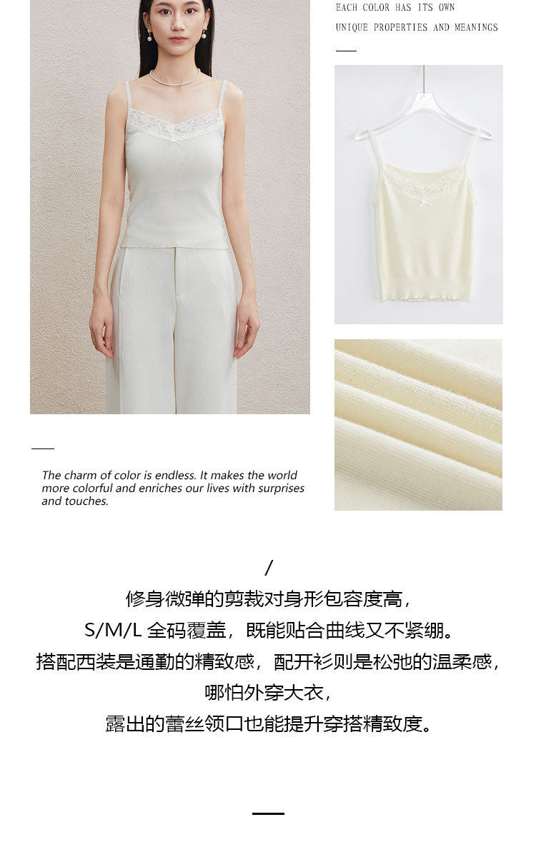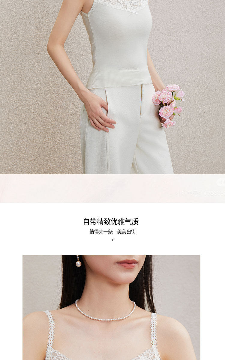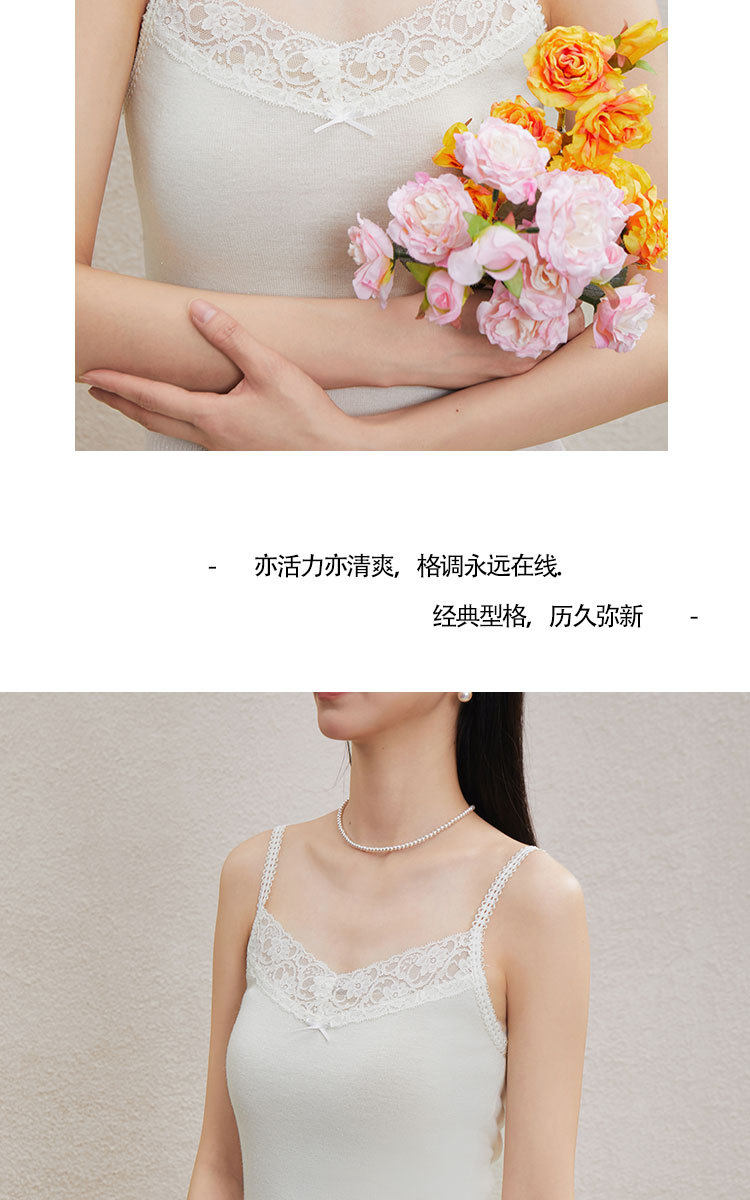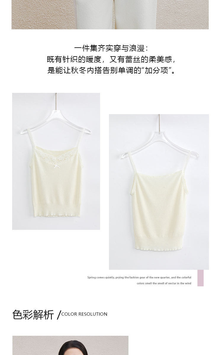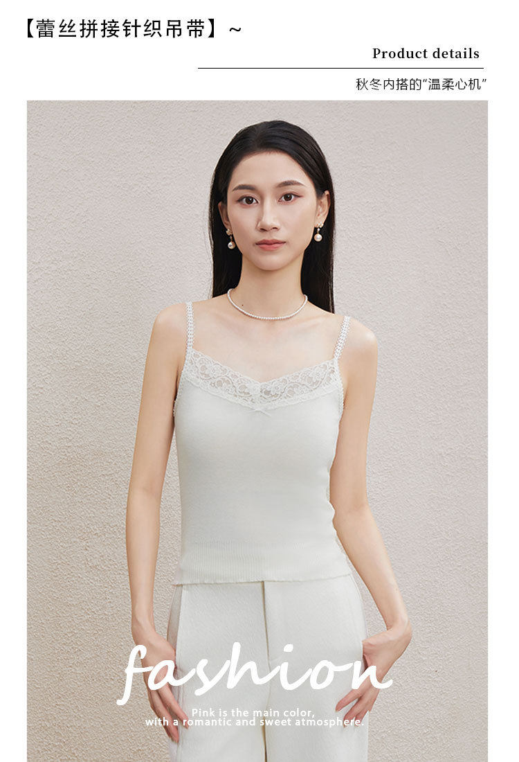 「自」全新升级【铂金会员146/天猫199/差价53】(51534)洛诗琳气质蕾丝花边拼接吊带2026新款含羊毛针织打底上衣51534