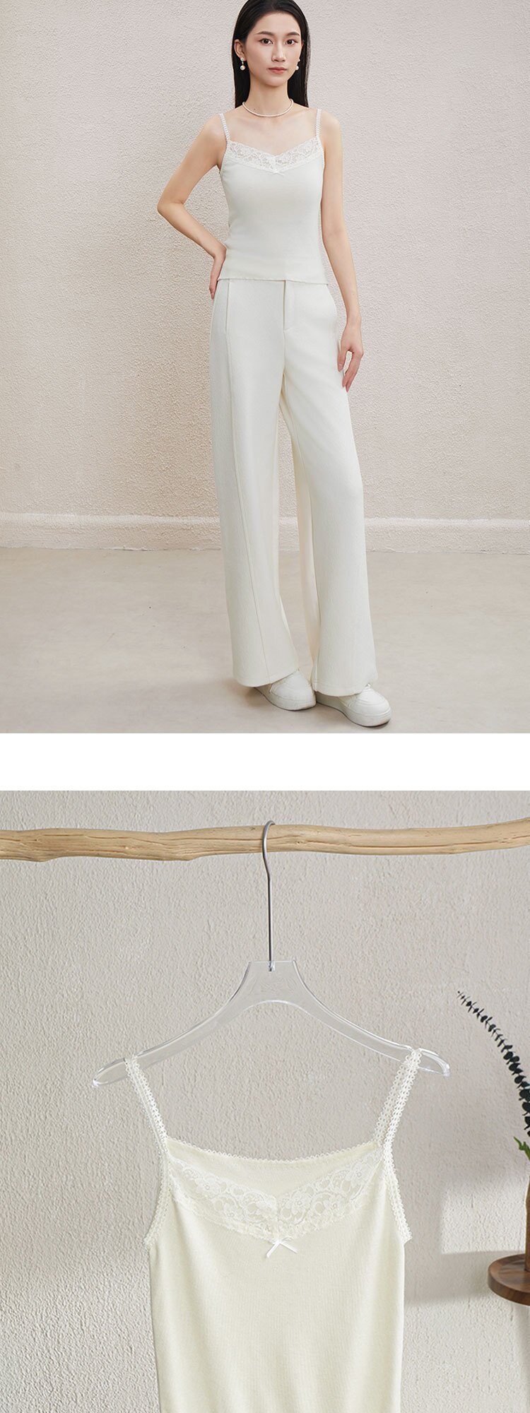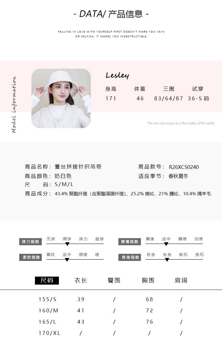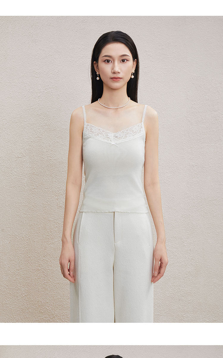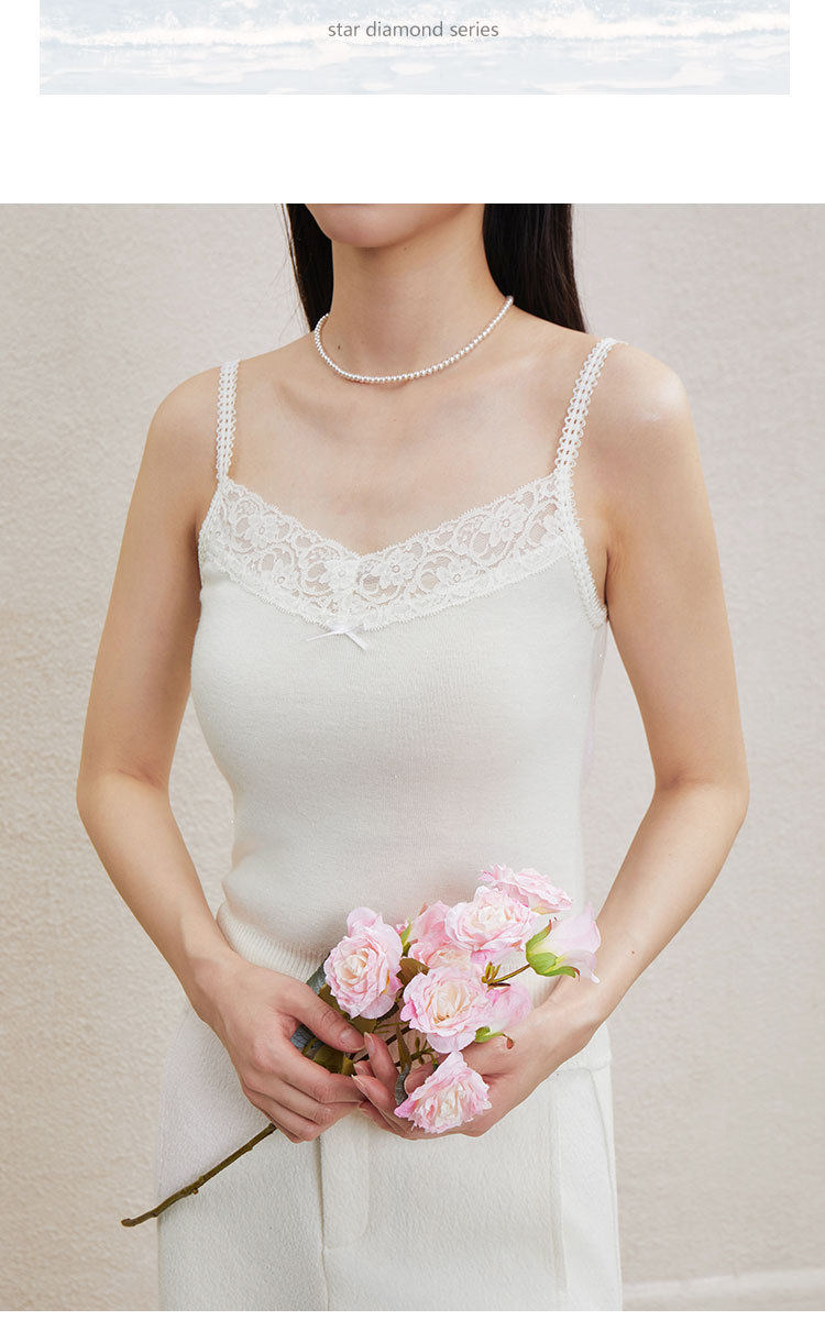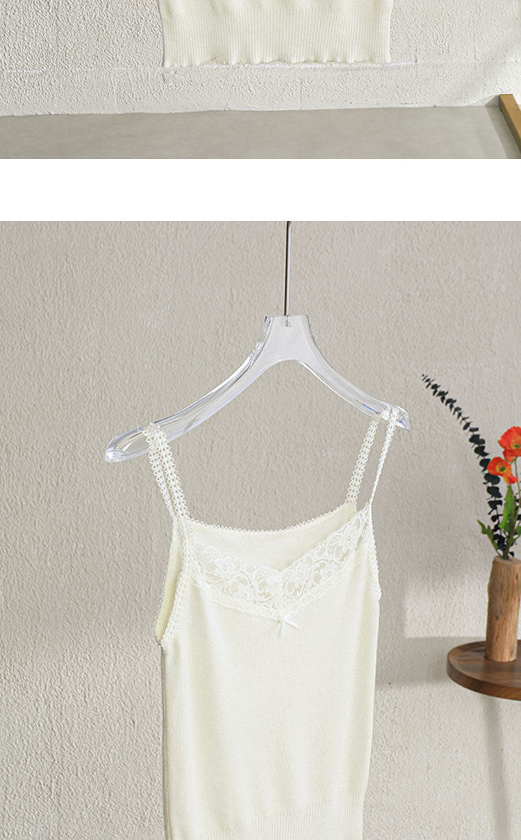 「自」全新升级【铂金会员146/天猫199/差价53】(51534)洛诗琳气质蕾丝花边拼接吊带2026新款含羊毛针织打底上衣51534