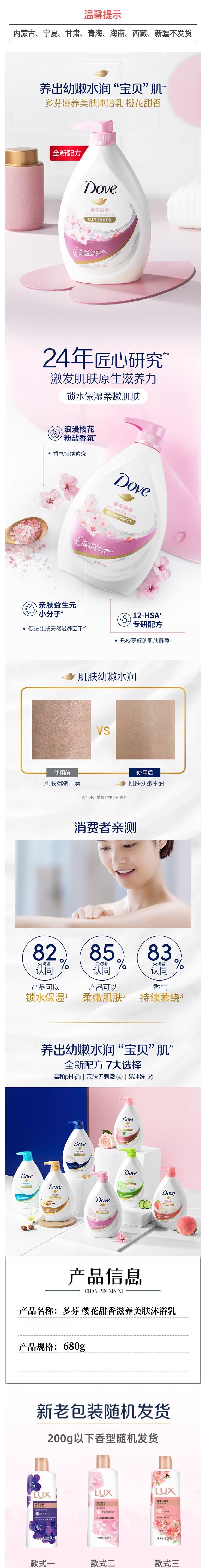 多芬 沐浴露套装(樱花甜香680g+力士焕亮粉樱200g*1瓶) U98632