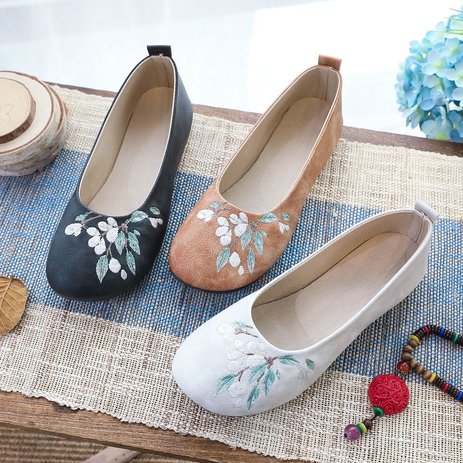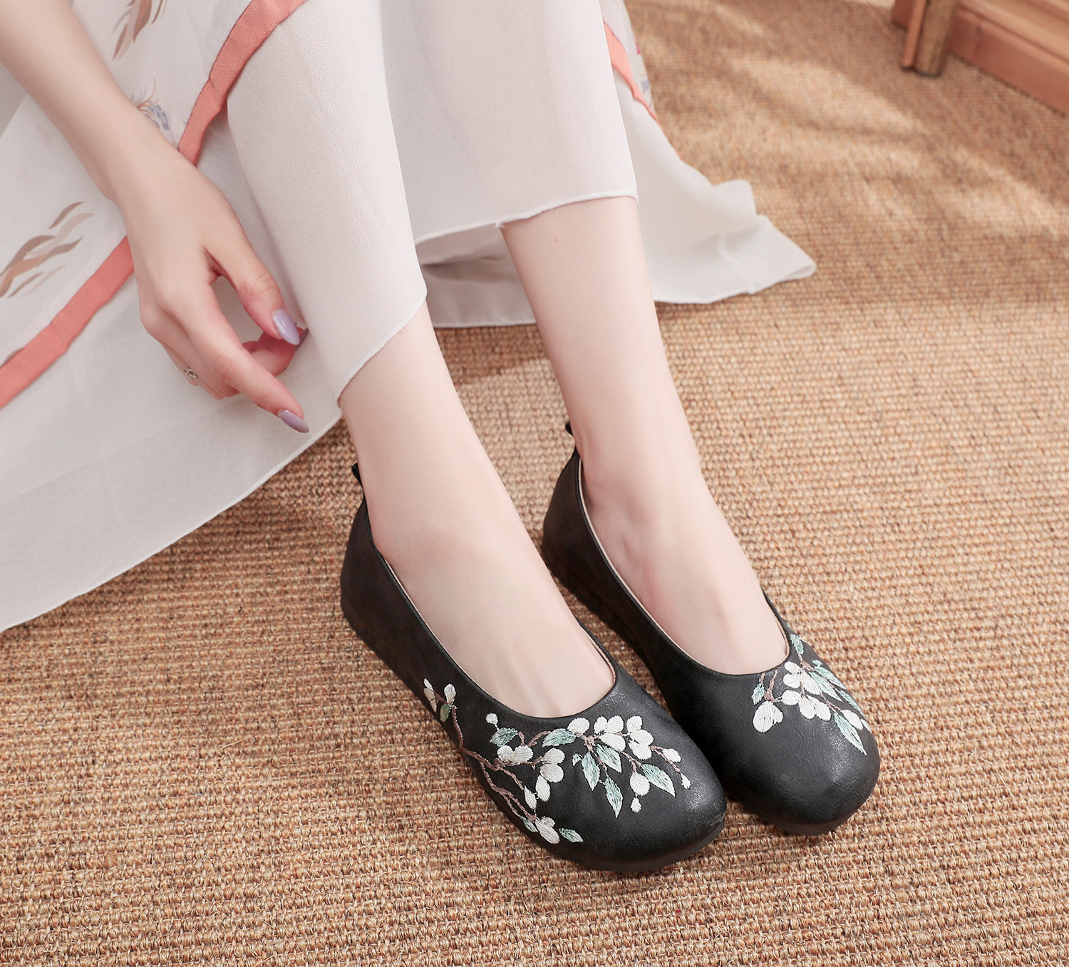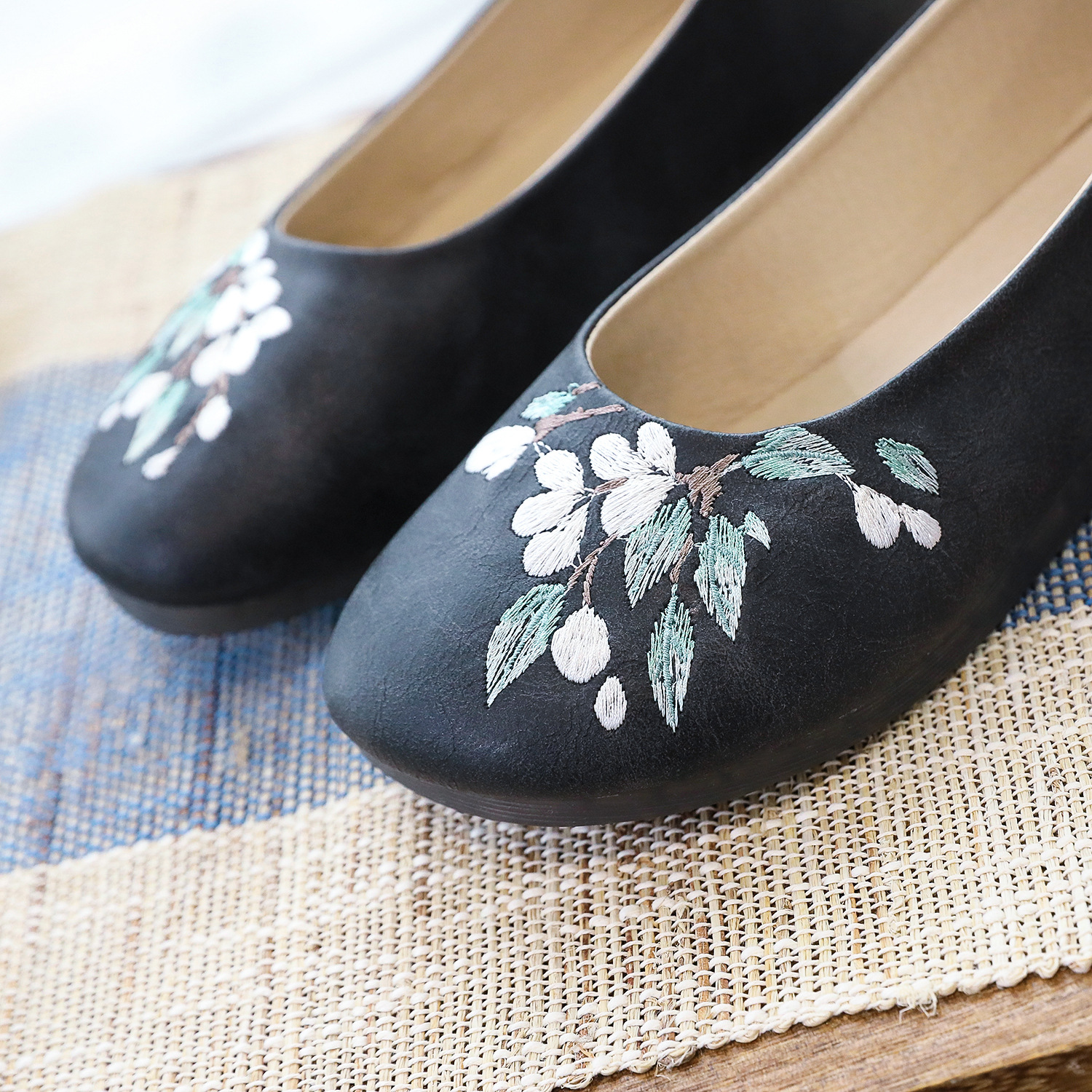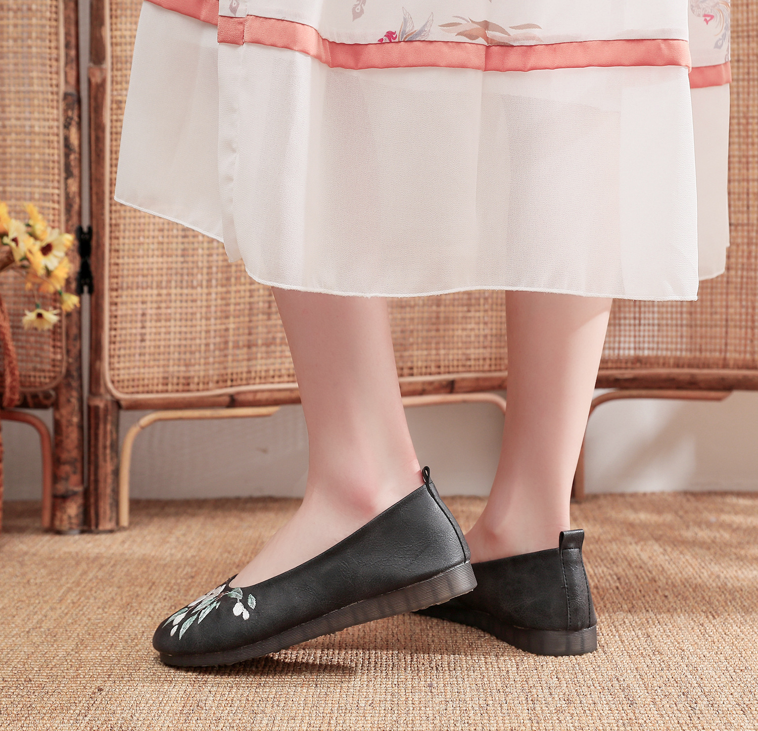 【落英】平底绣花单鞋秋季茶禅服鞋 YR