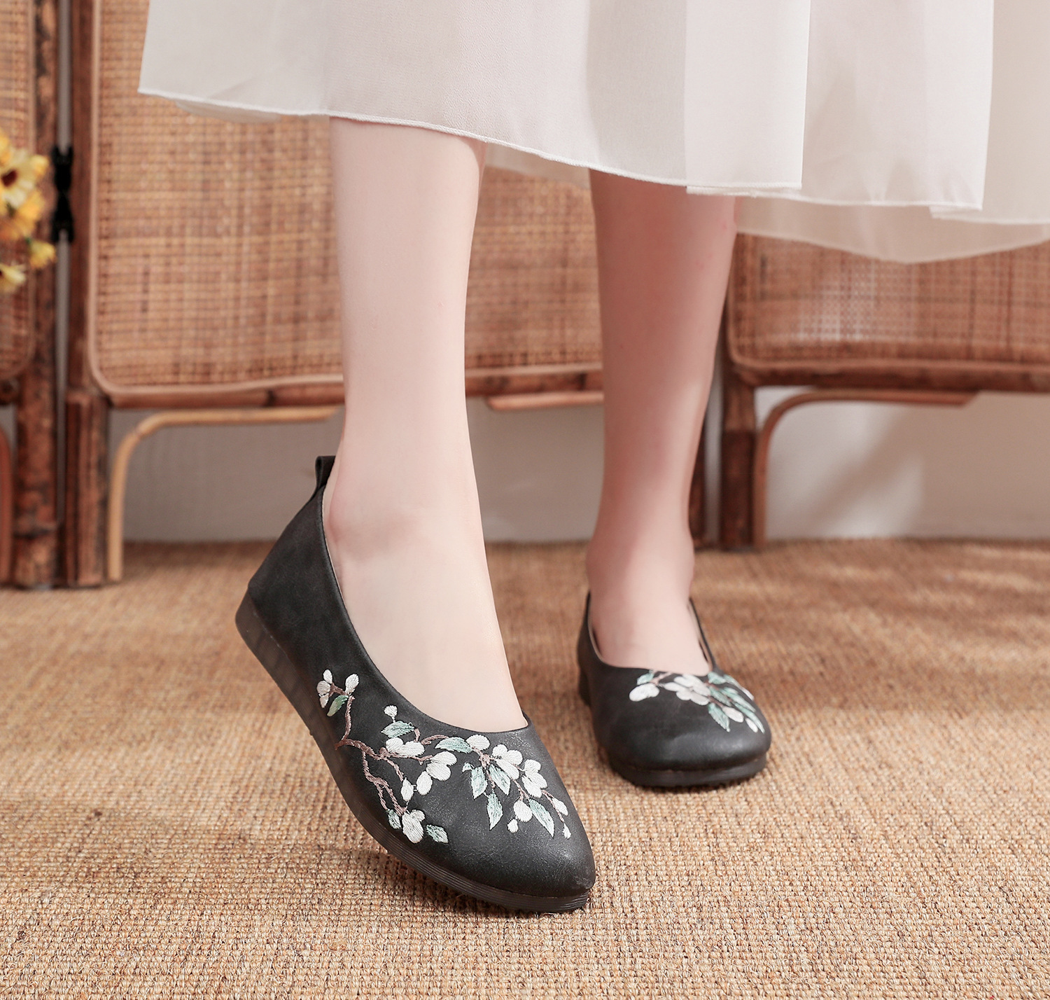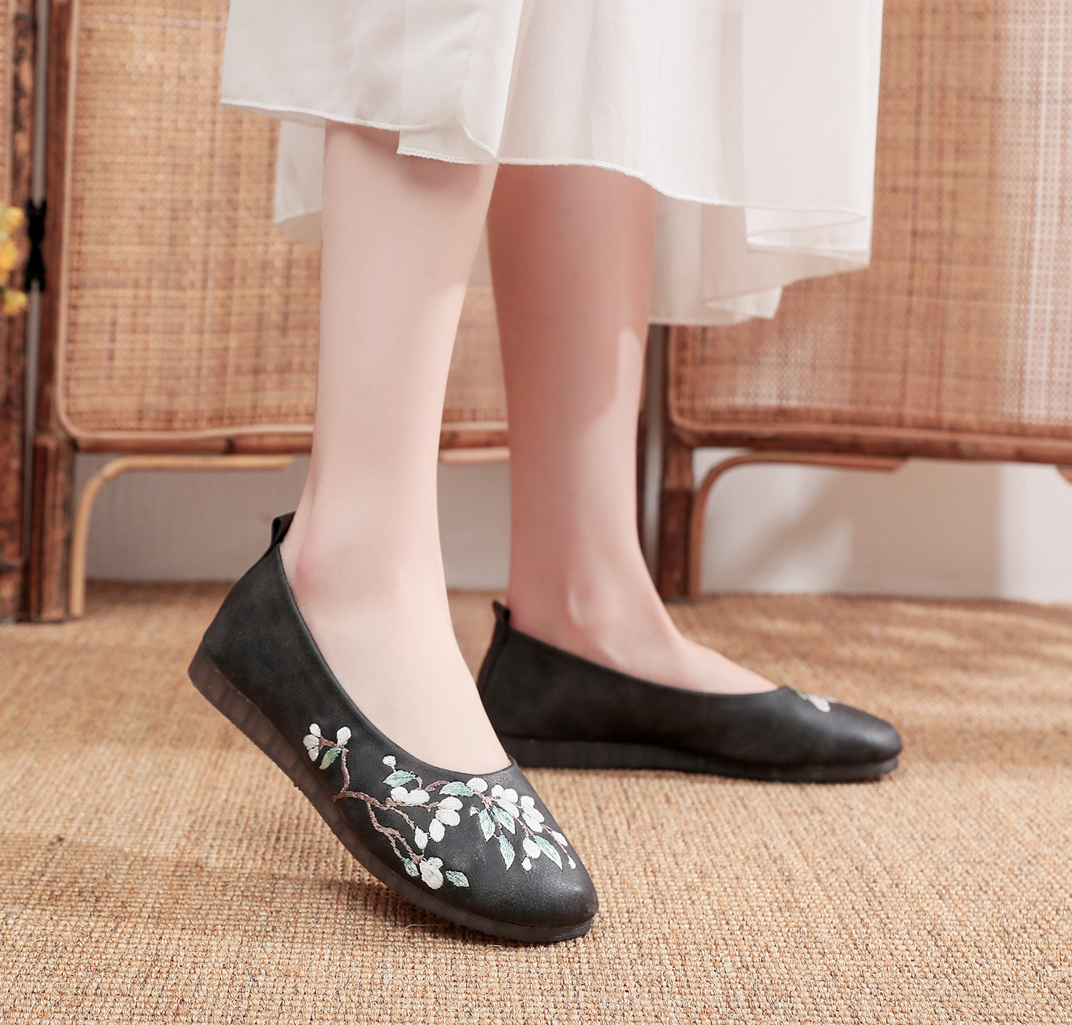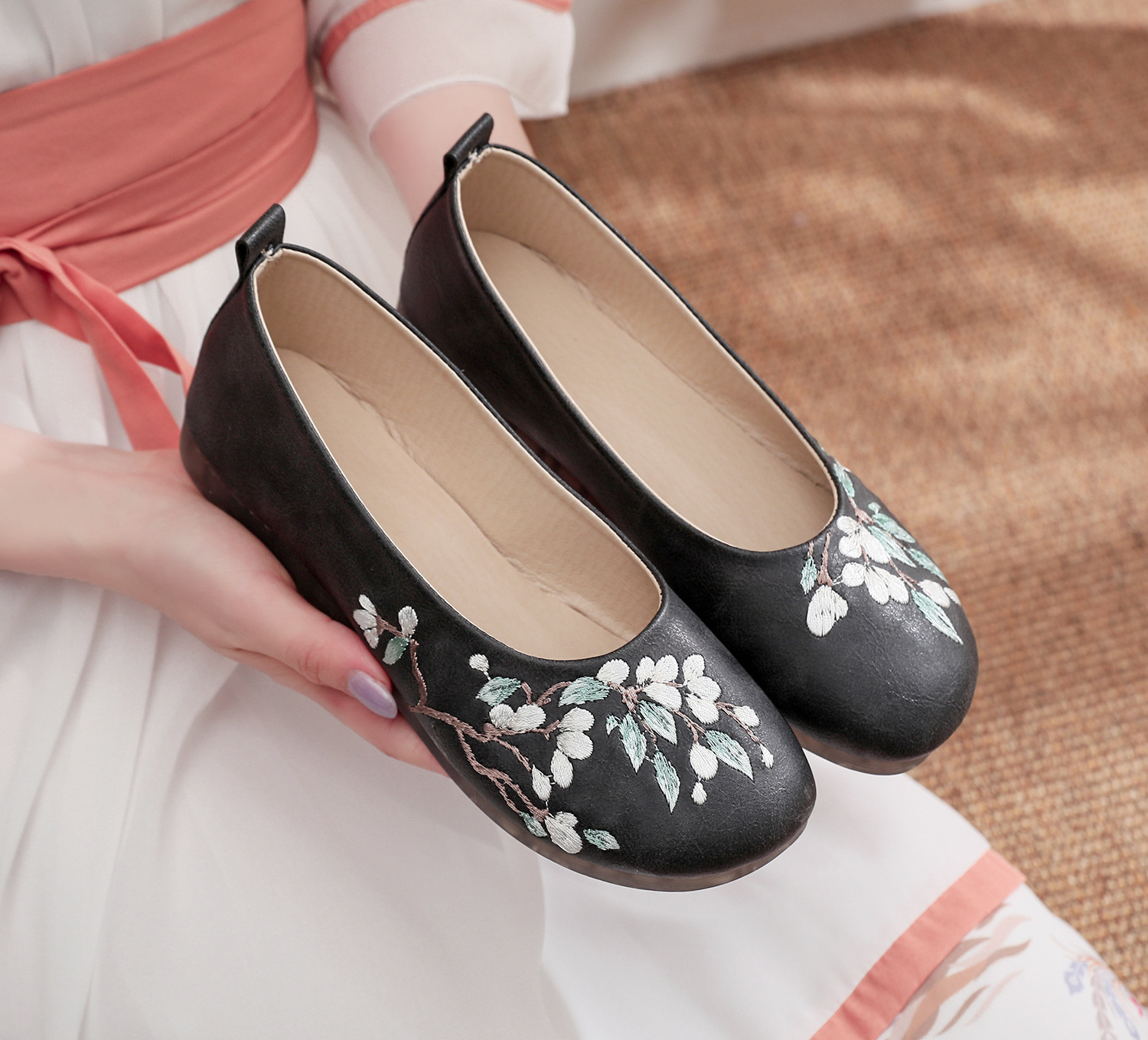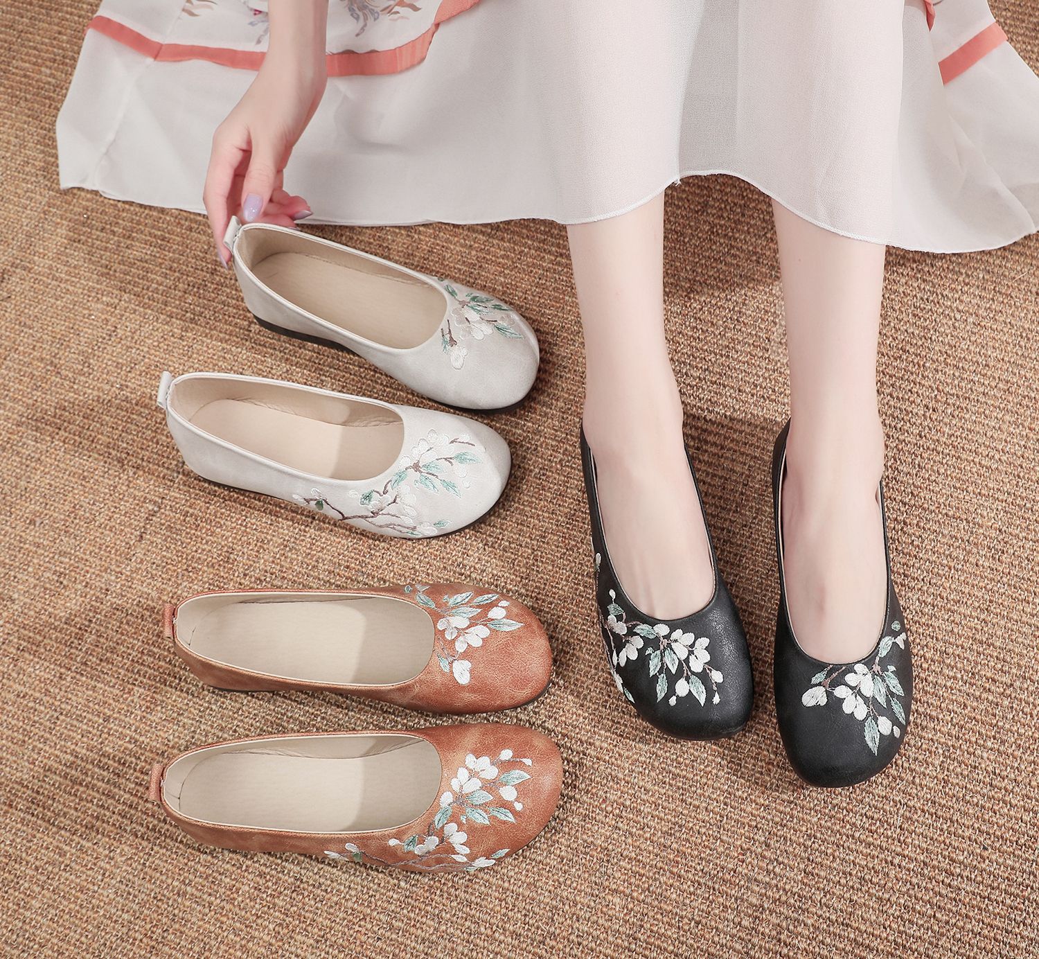 【落英】平底绣花单鞋秋季茶禅服鞋 YR