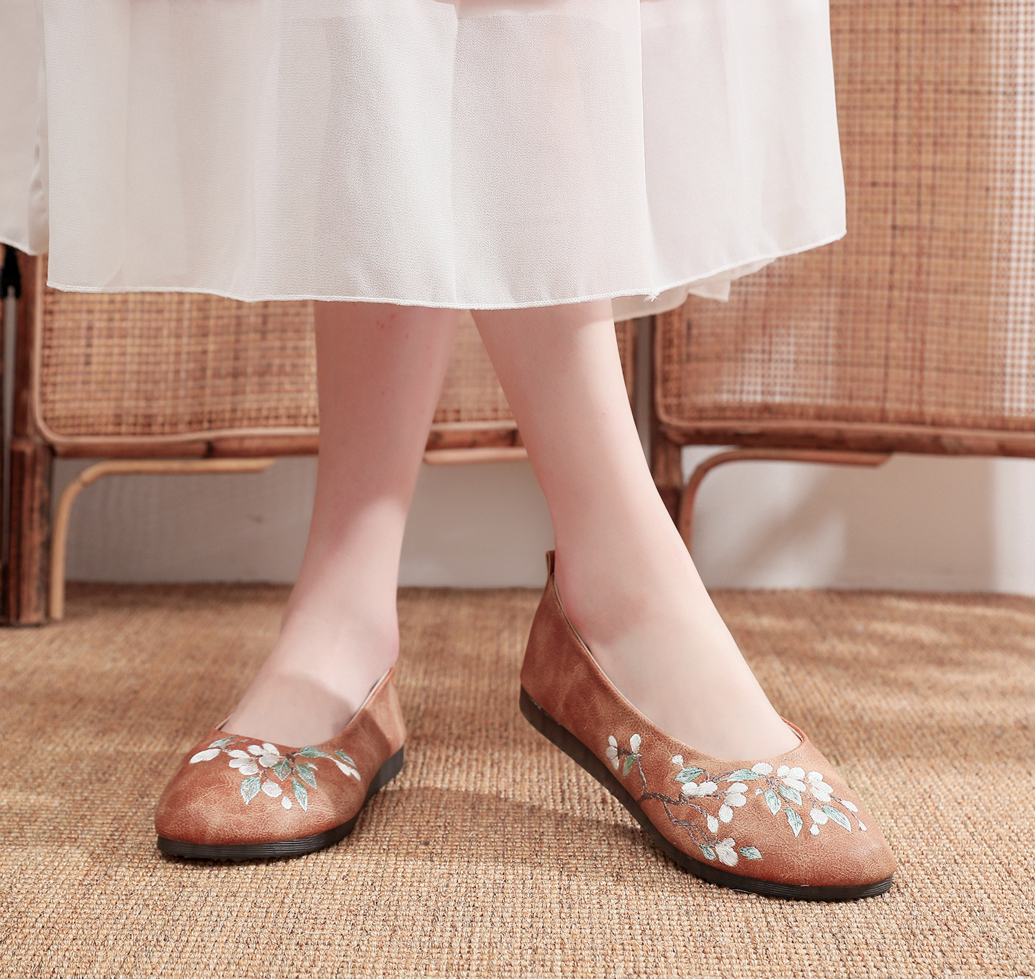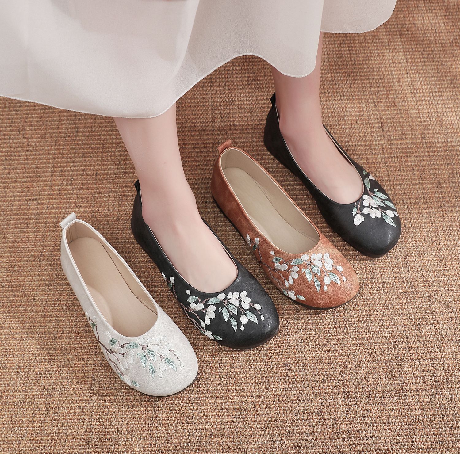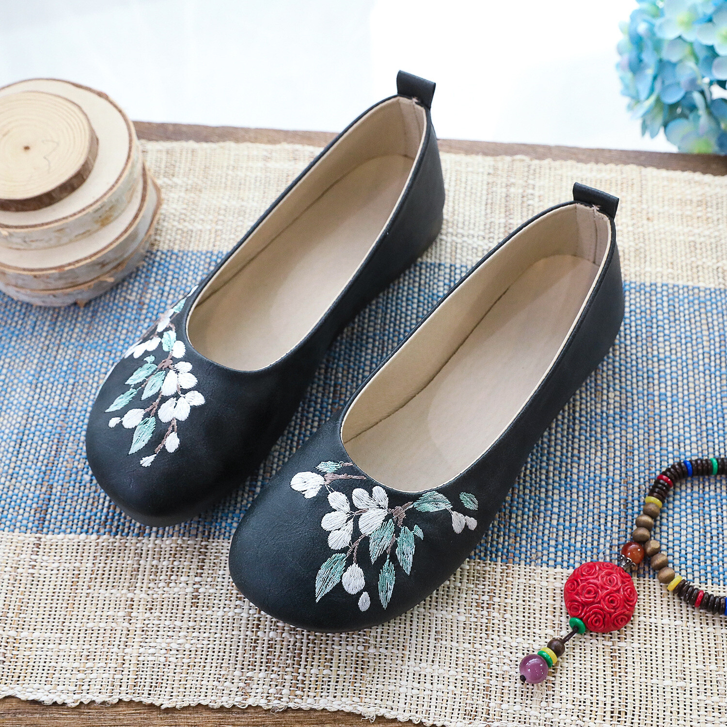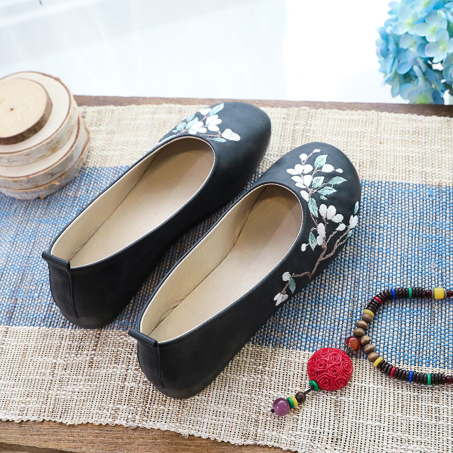 【落英】平底绣花单鞋秋季茶禅服鞋 YR
