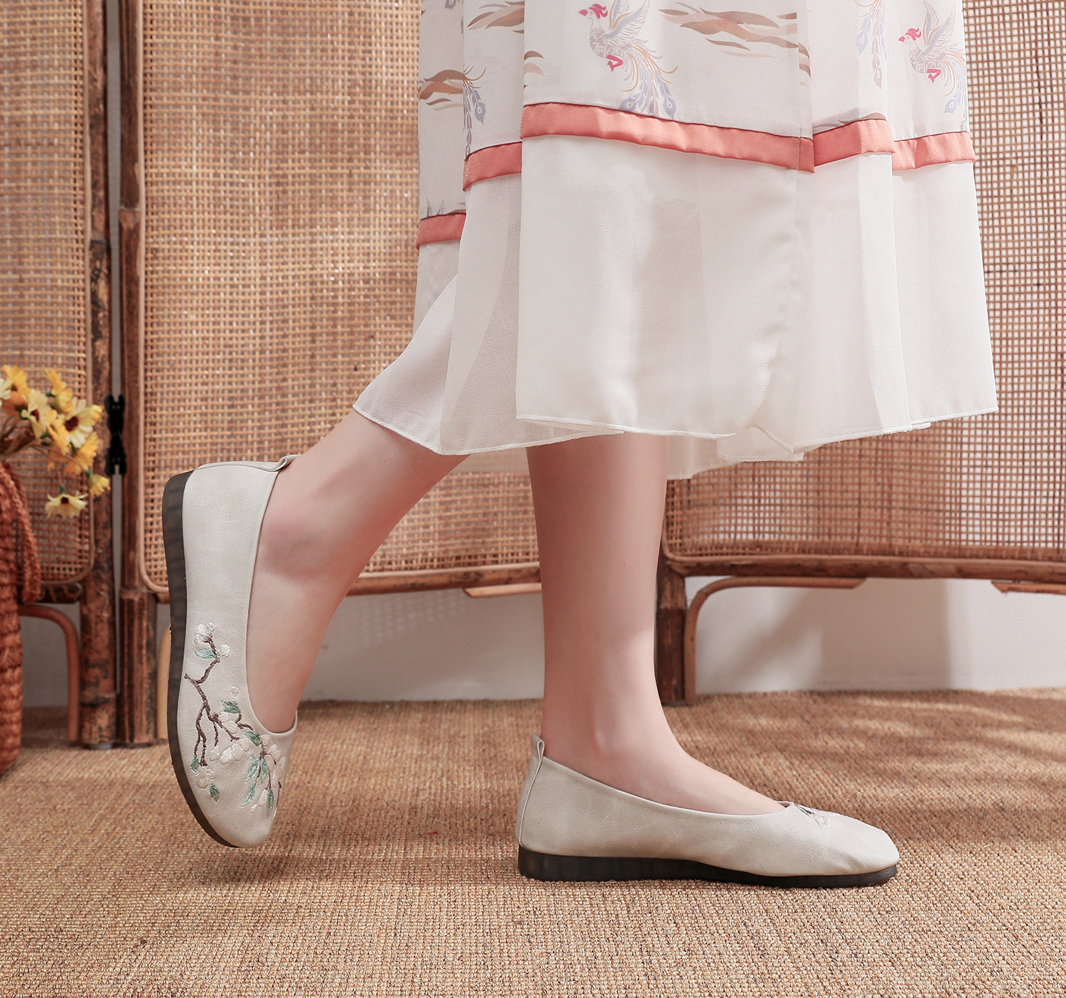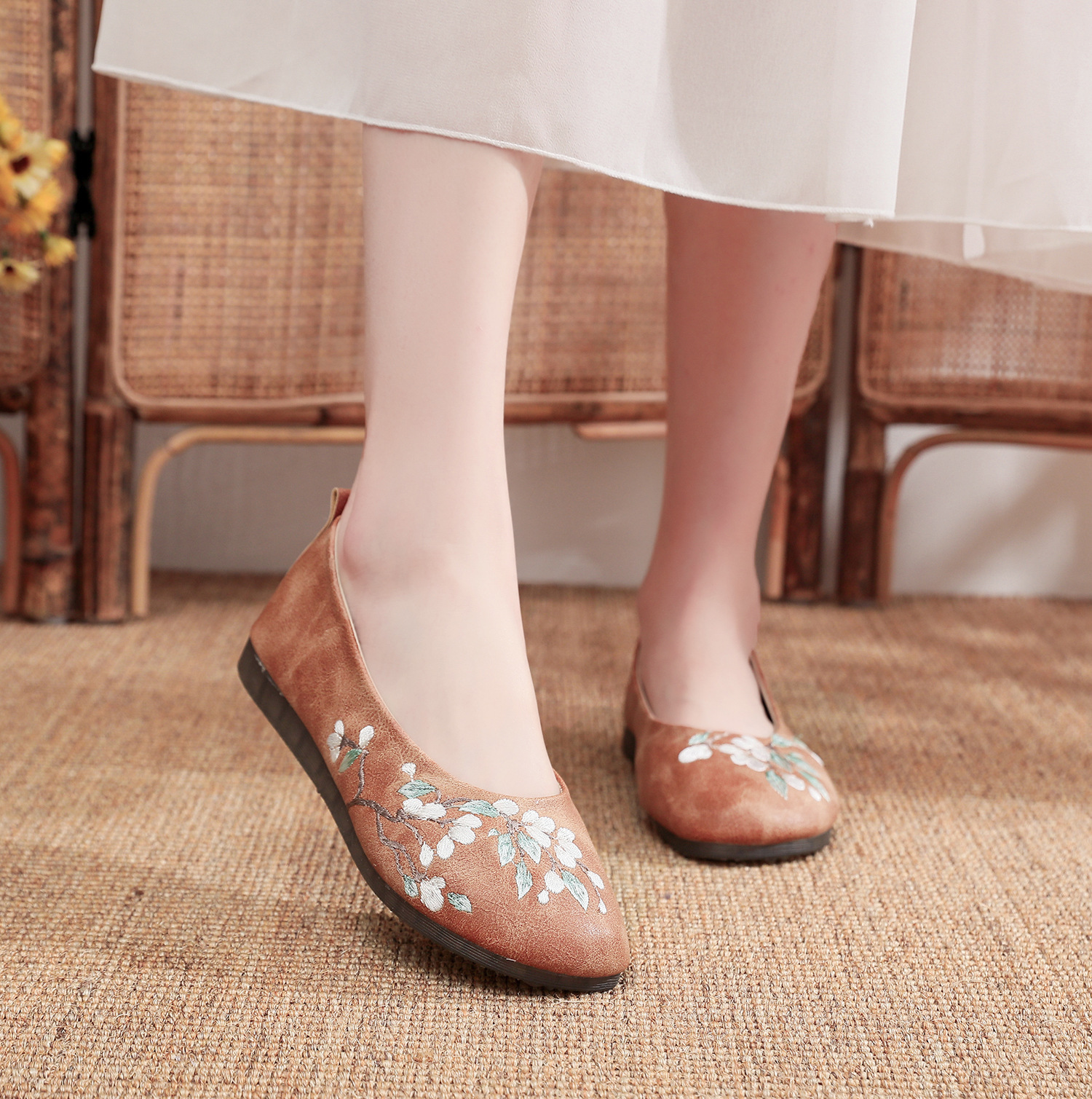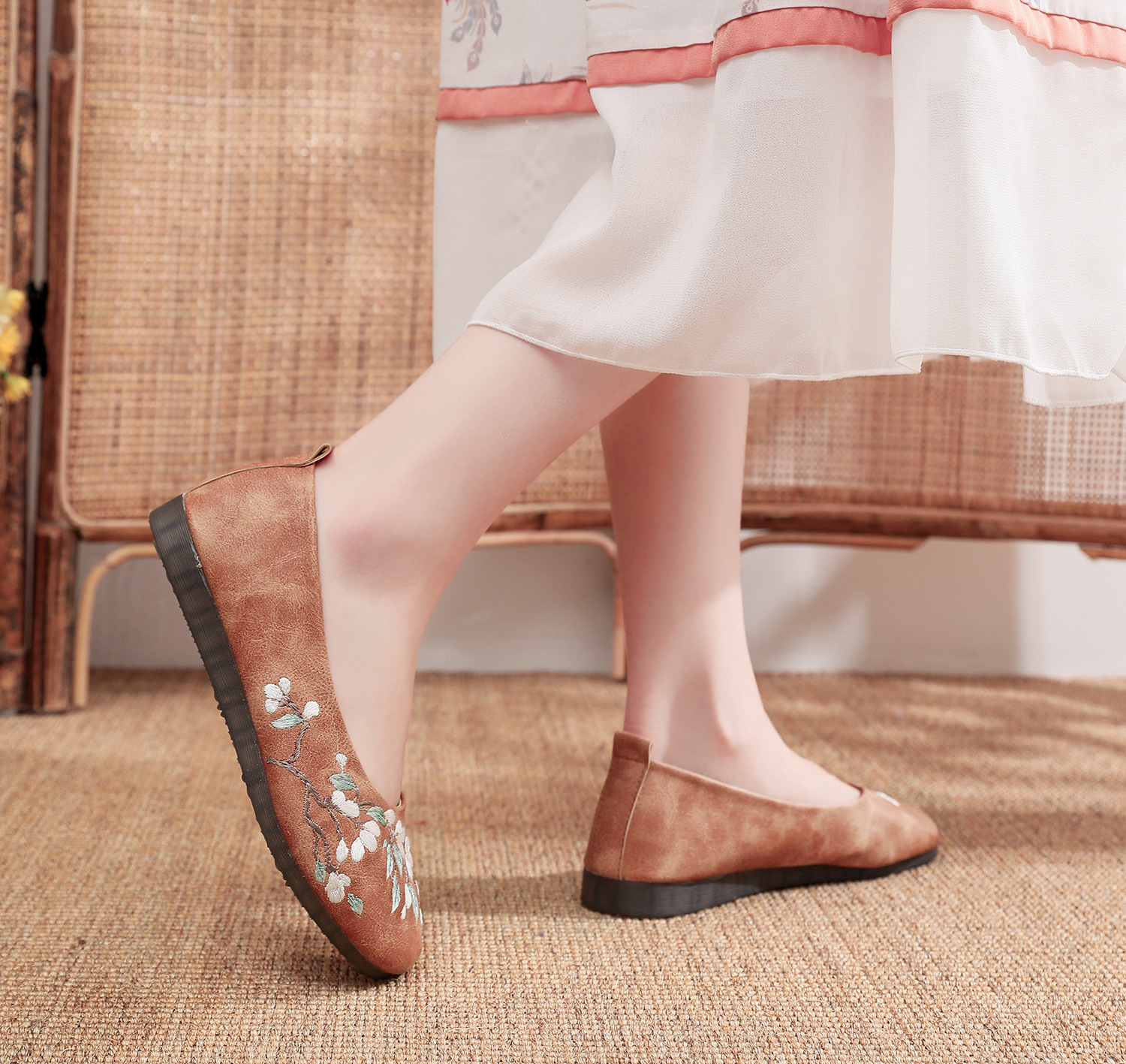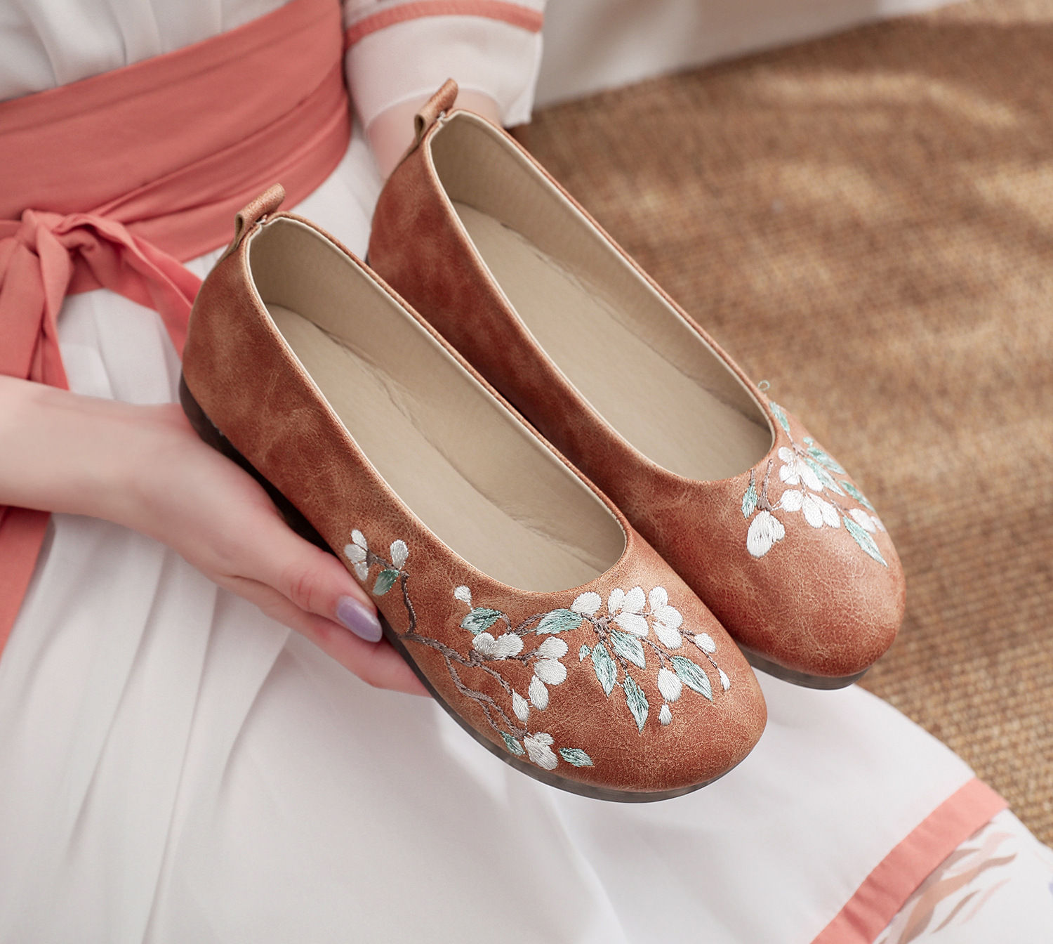 【落英】平底绣花单鞋秋季茶禅服鞋 YR