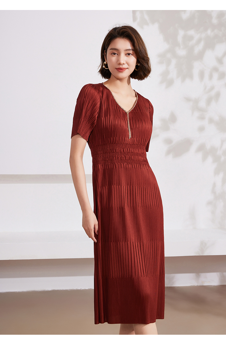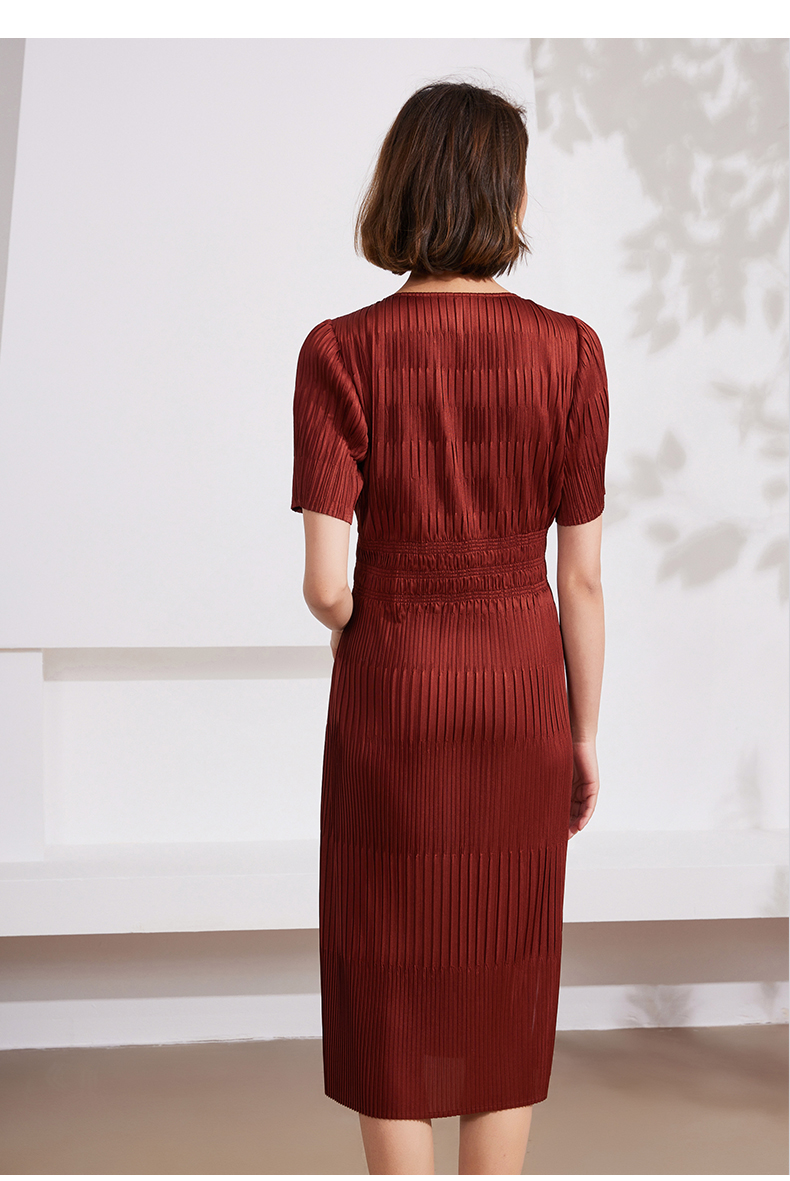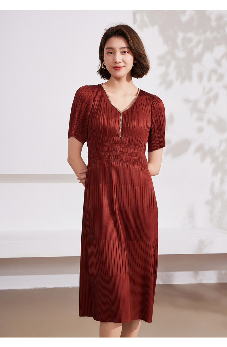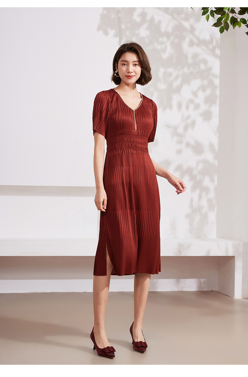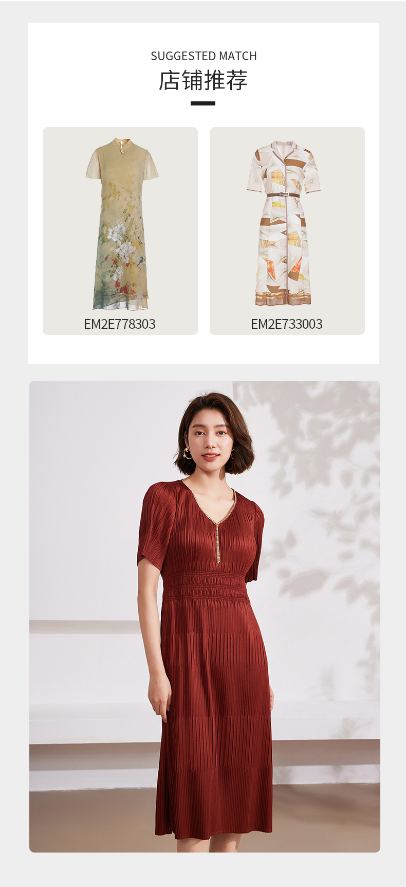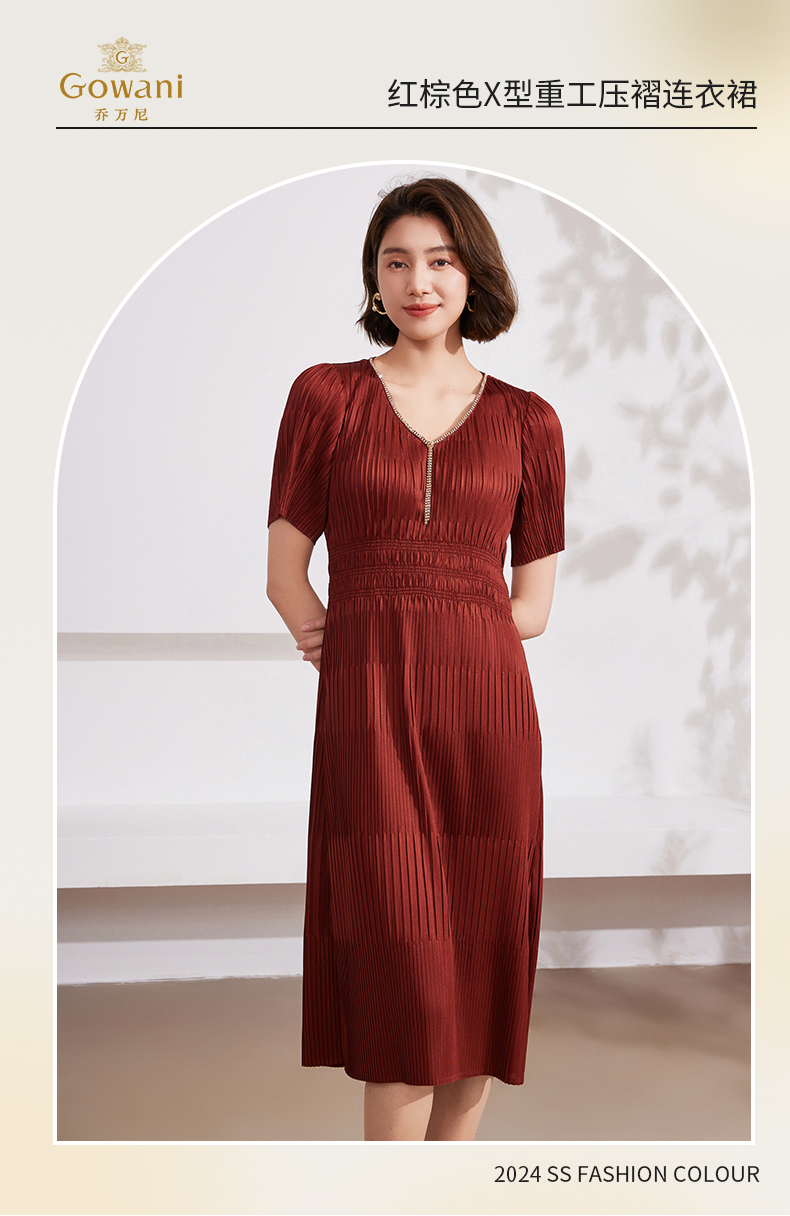 乔万尼新款连衣裙重工压褶设计收腰显瘦EM2E727