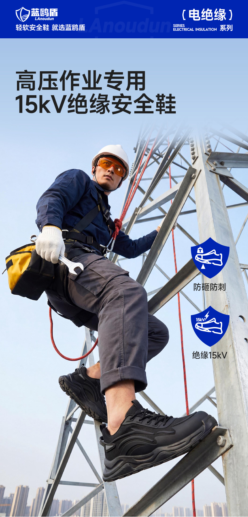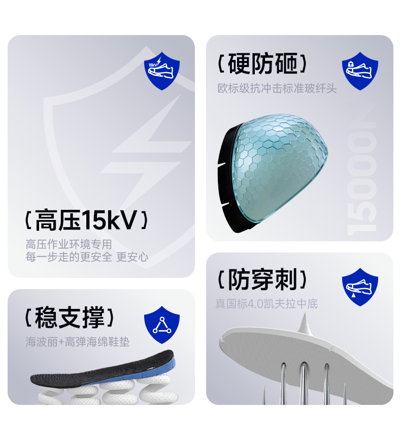 蓝鸥盾新款安全鞋防砸防刺绝缘10KV四季款玻纤头4.0凯夫拉耐磨实心底