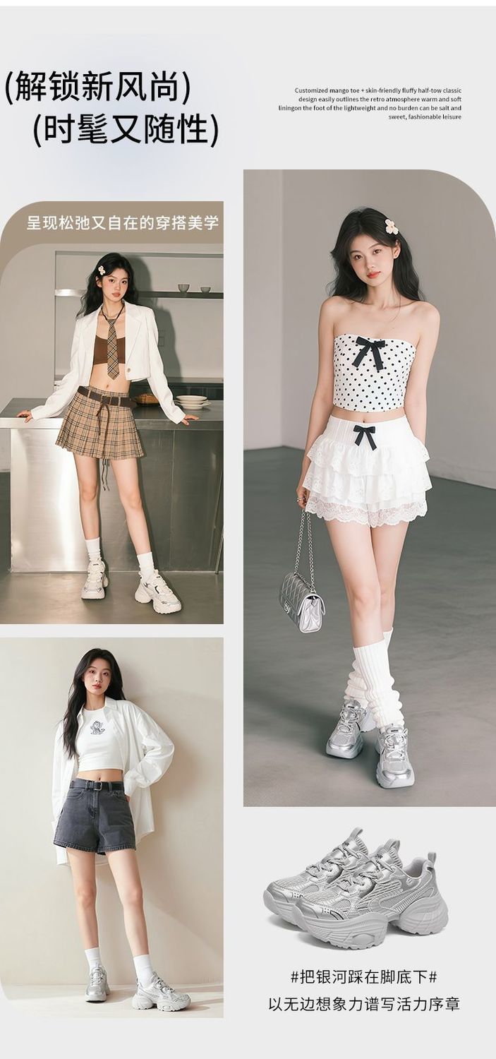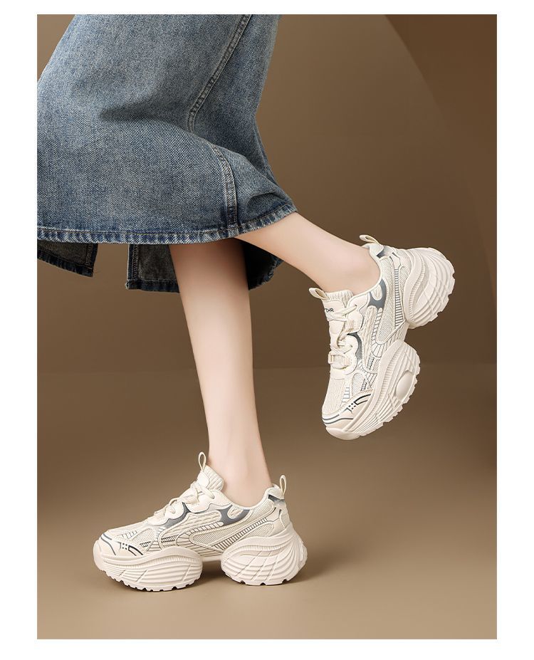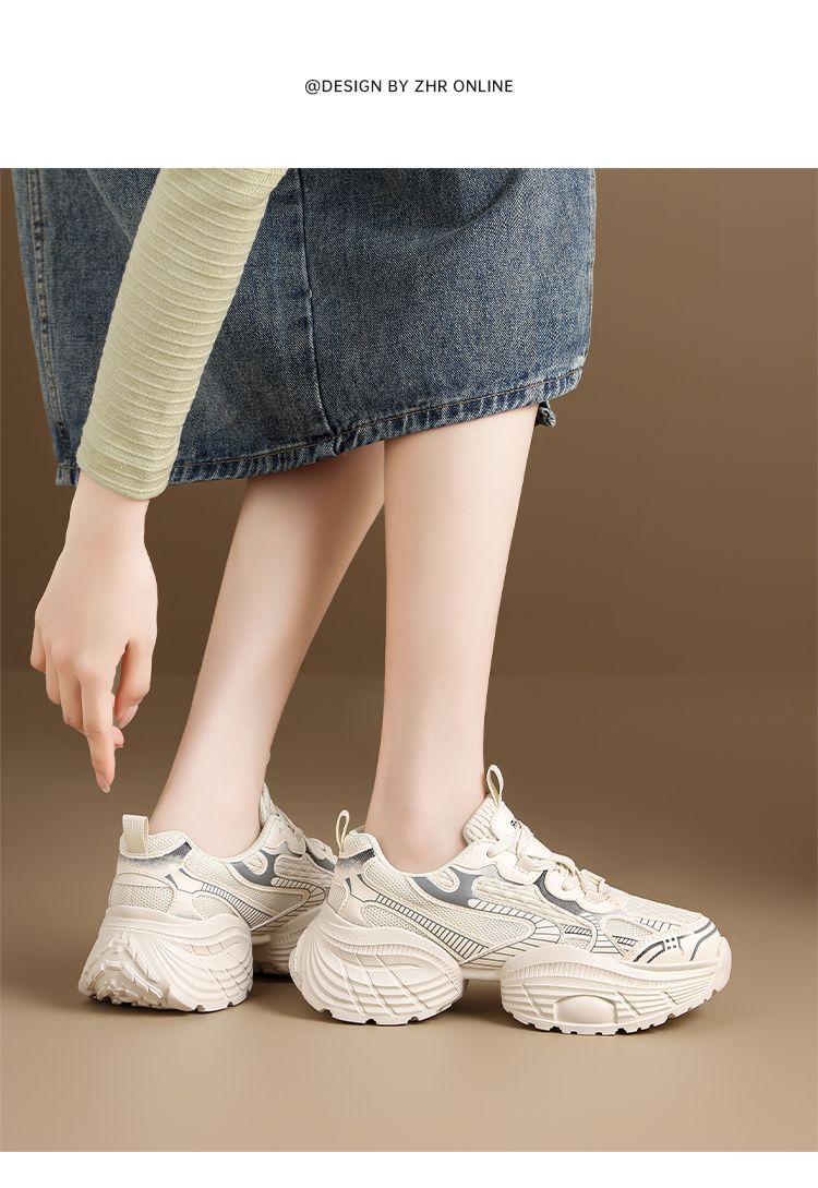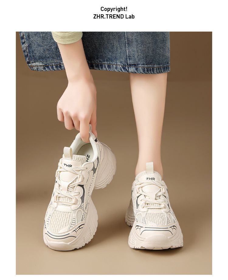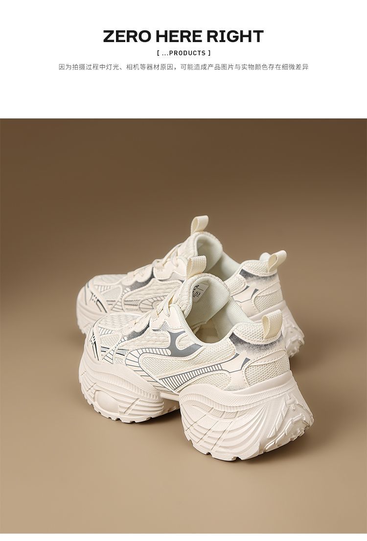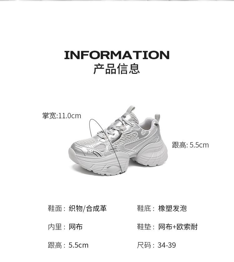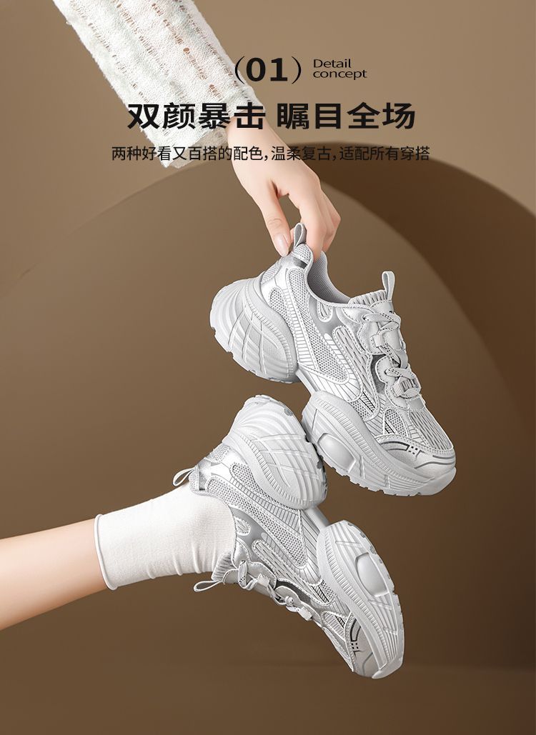 ZHR【增高5.5CM】银色厚底老爹鞋女网面透气运动鞋超软轻便休闲鞋