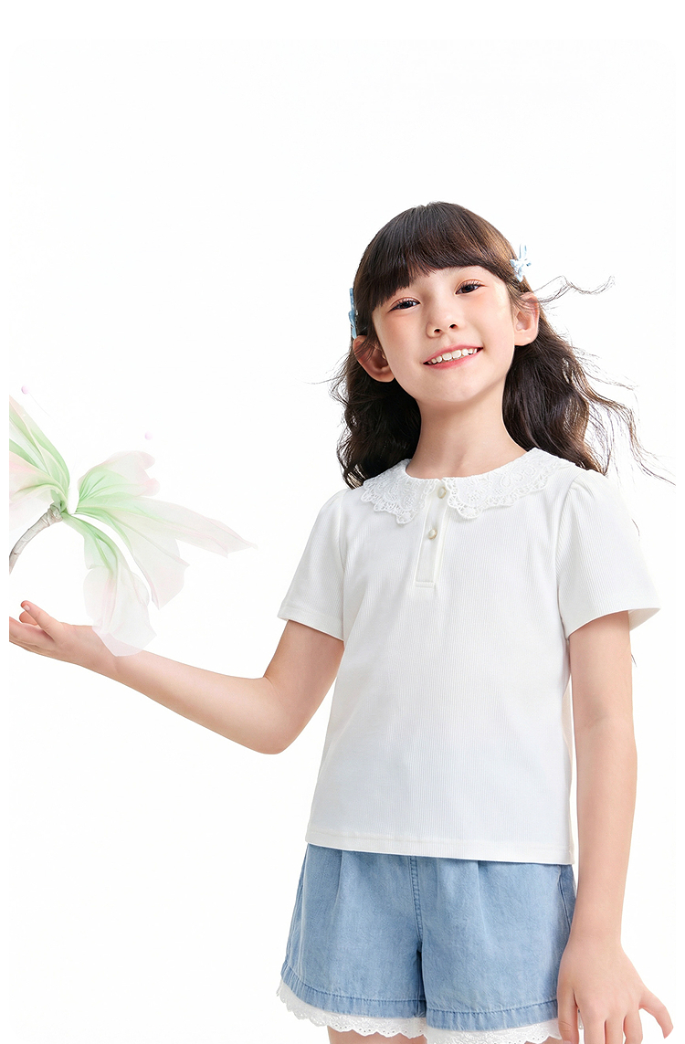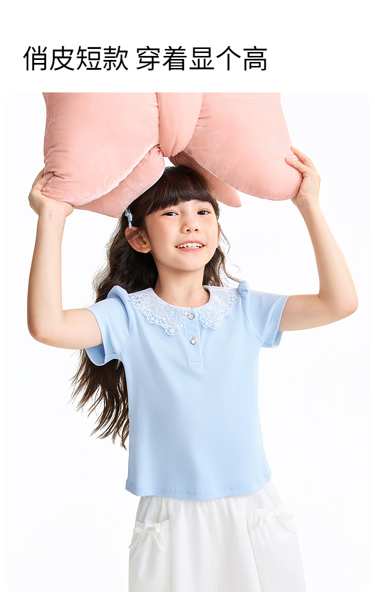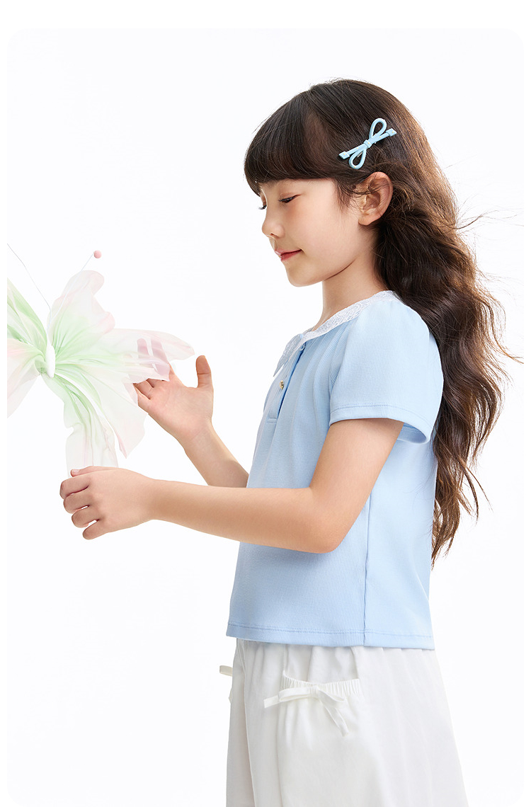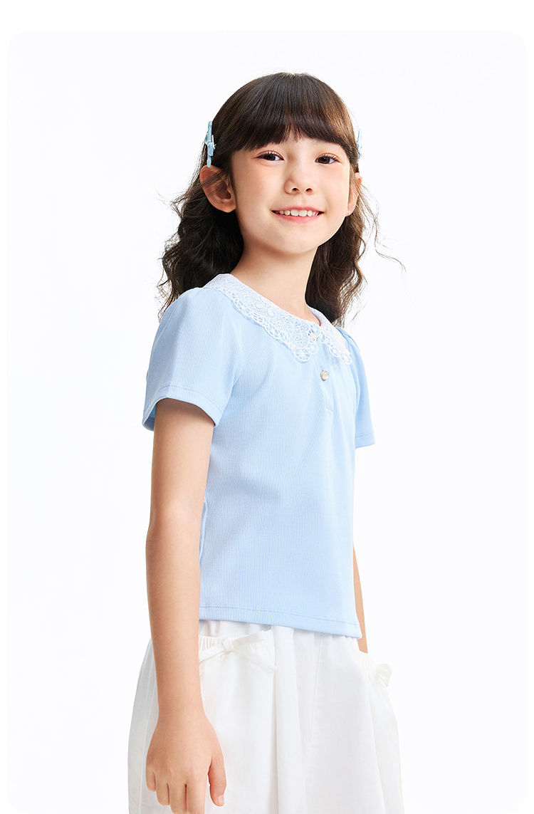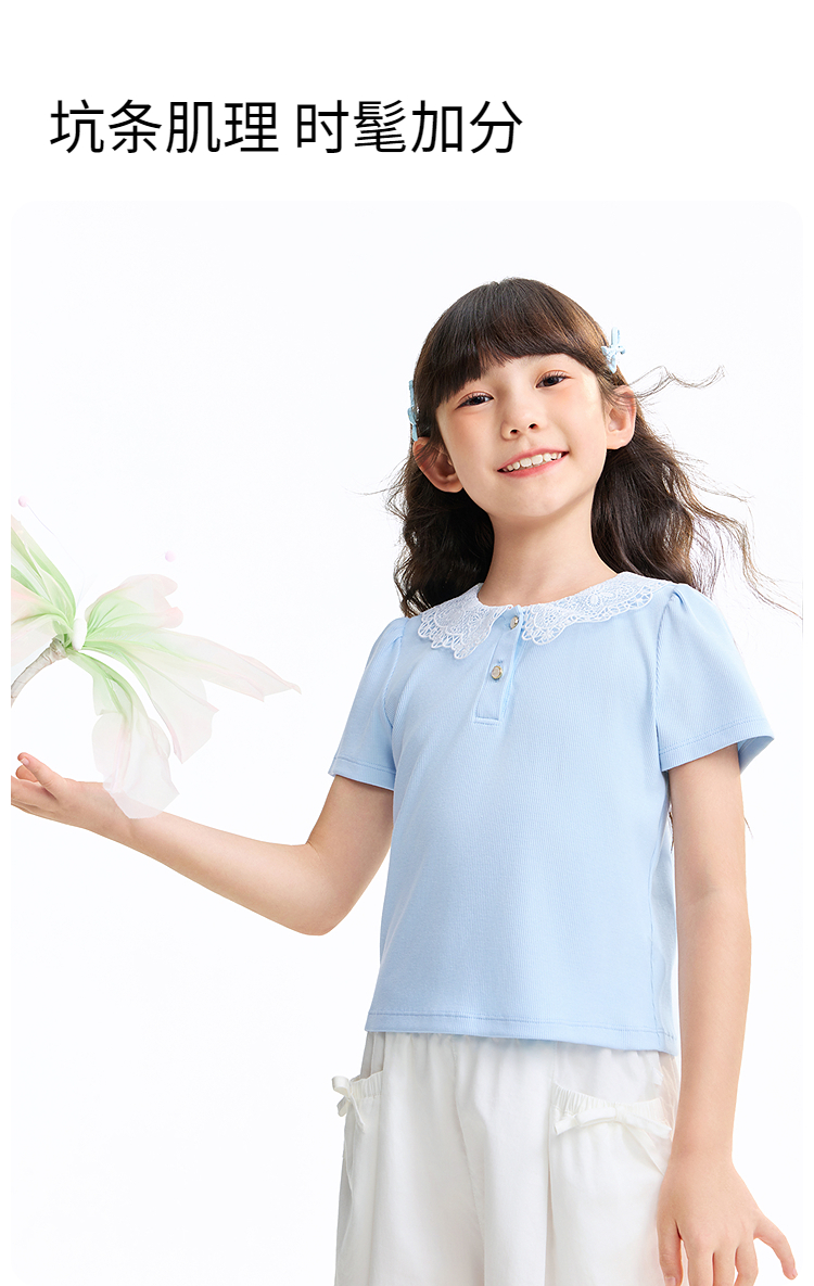 女童翻领短袖针织衫夏季新款安奈儿童装EG621617