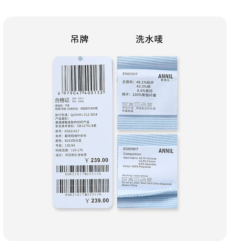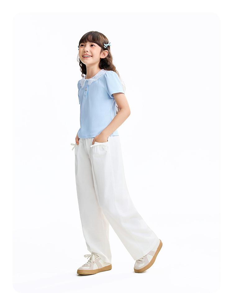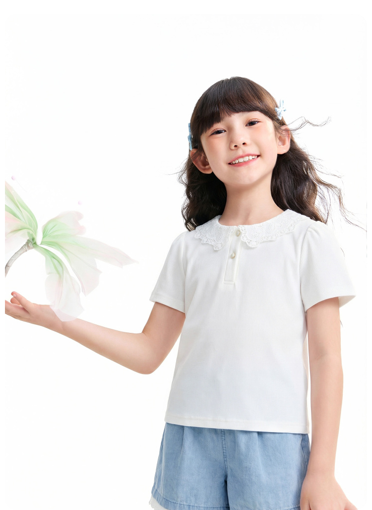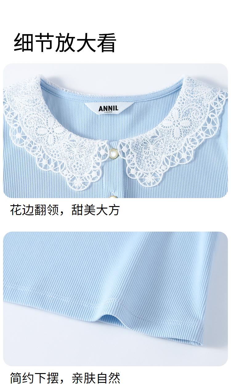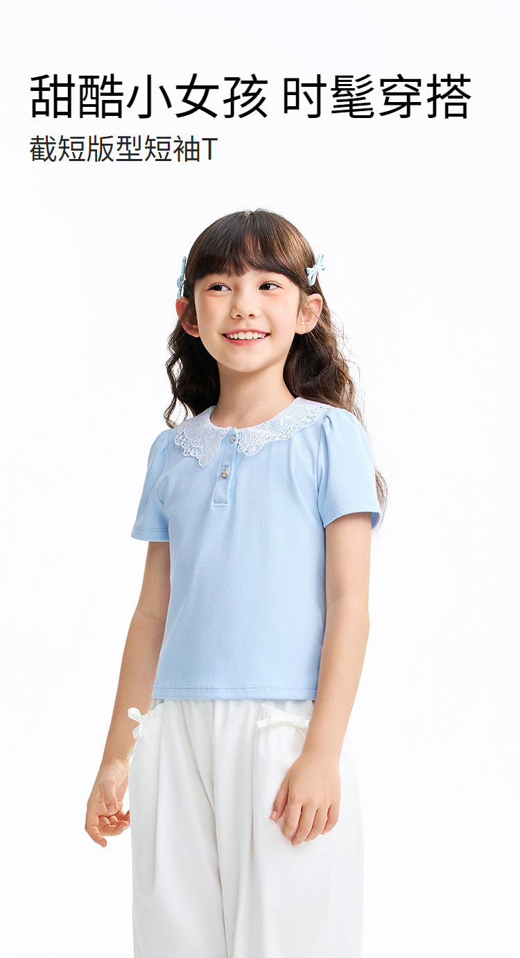女童翻领短袖针织衫夏季新款安奈儿童装EG621617