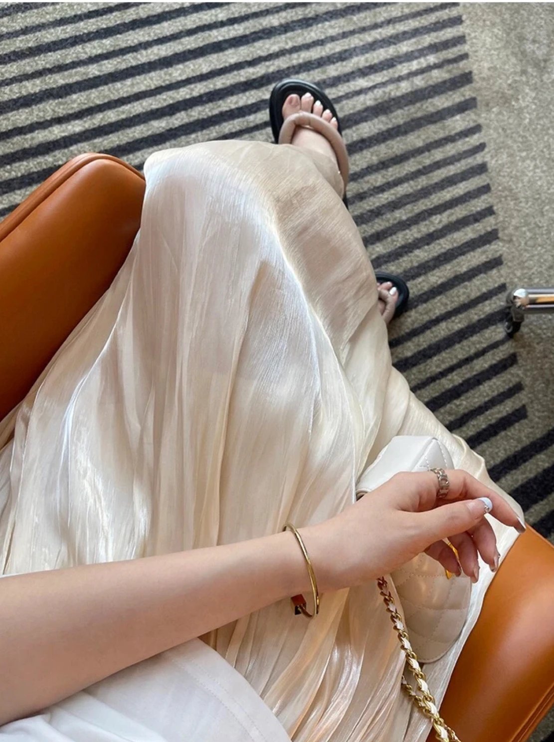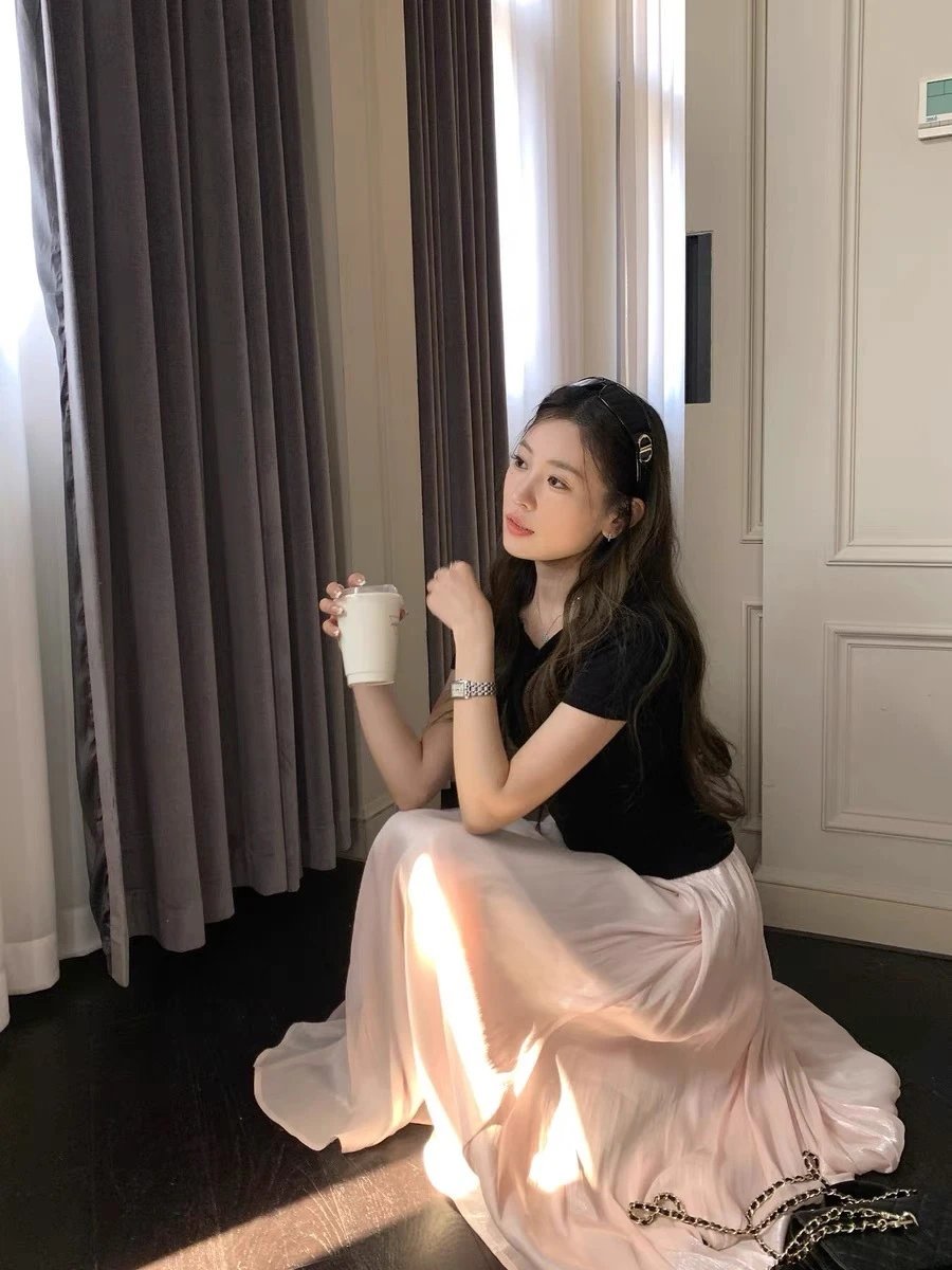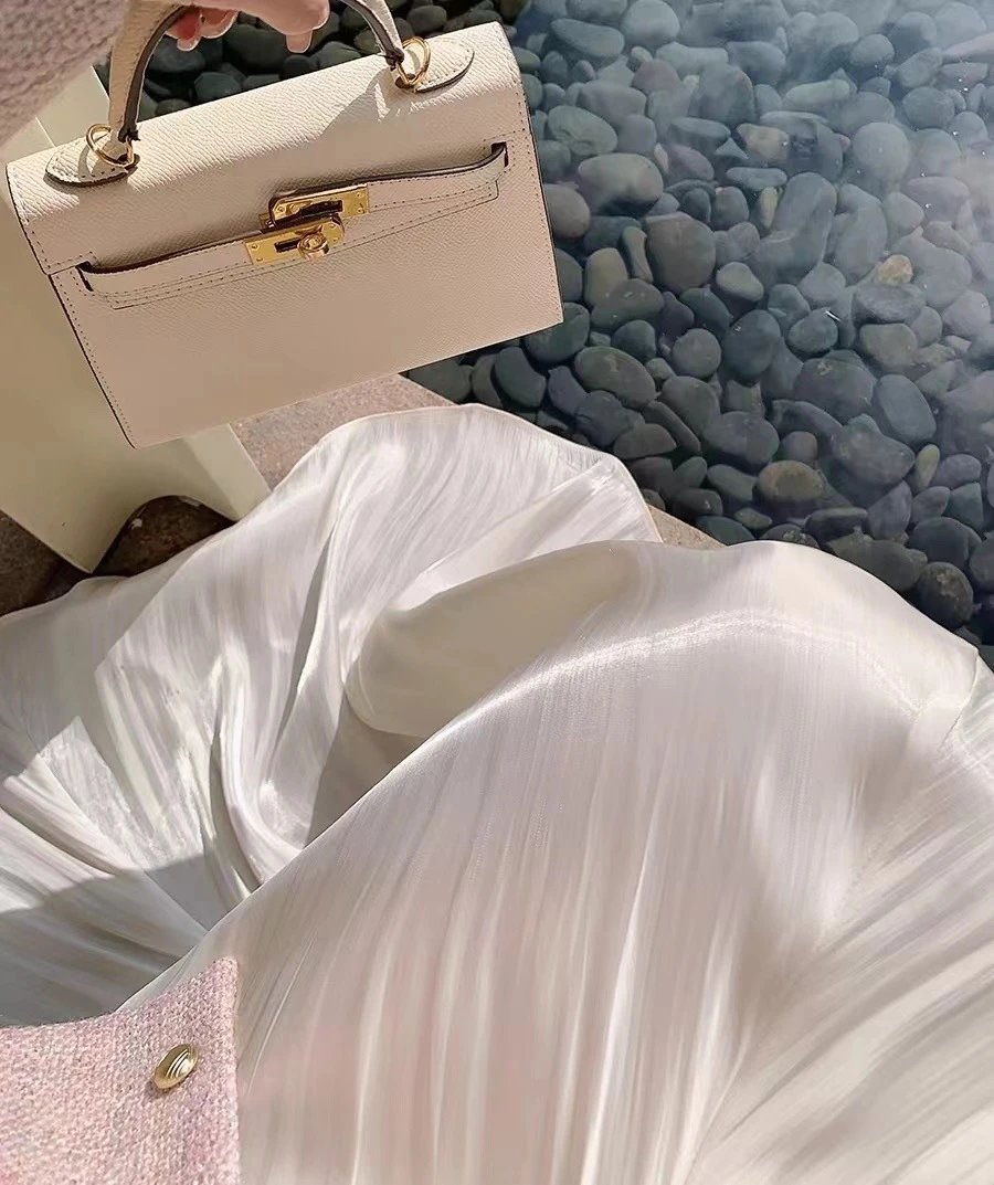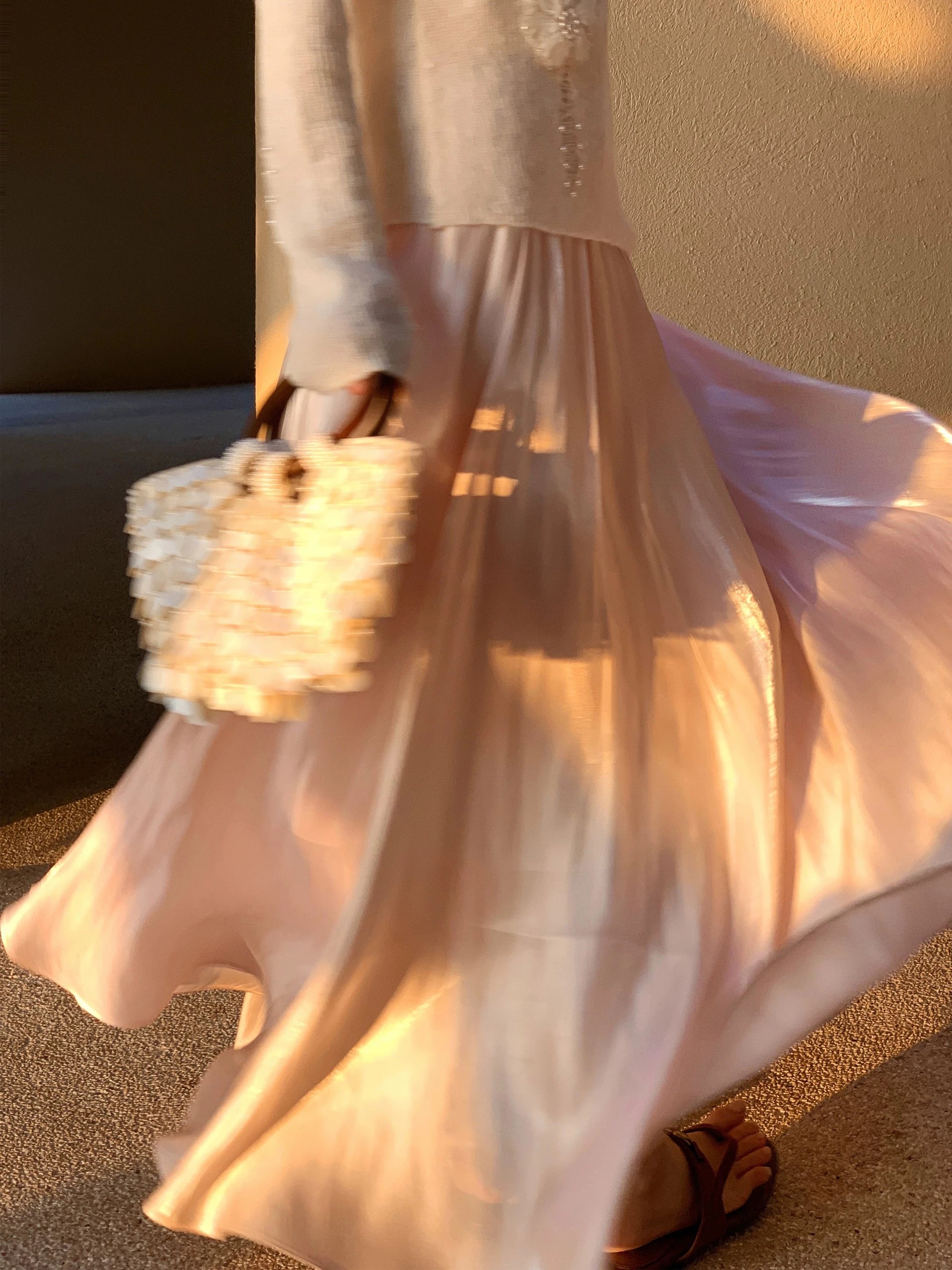 只有丰富的褶量 才会显得整个裙身充盈灵动上身垂坠有型 既有分量也有轻盈度在行走间自带温柔优雅