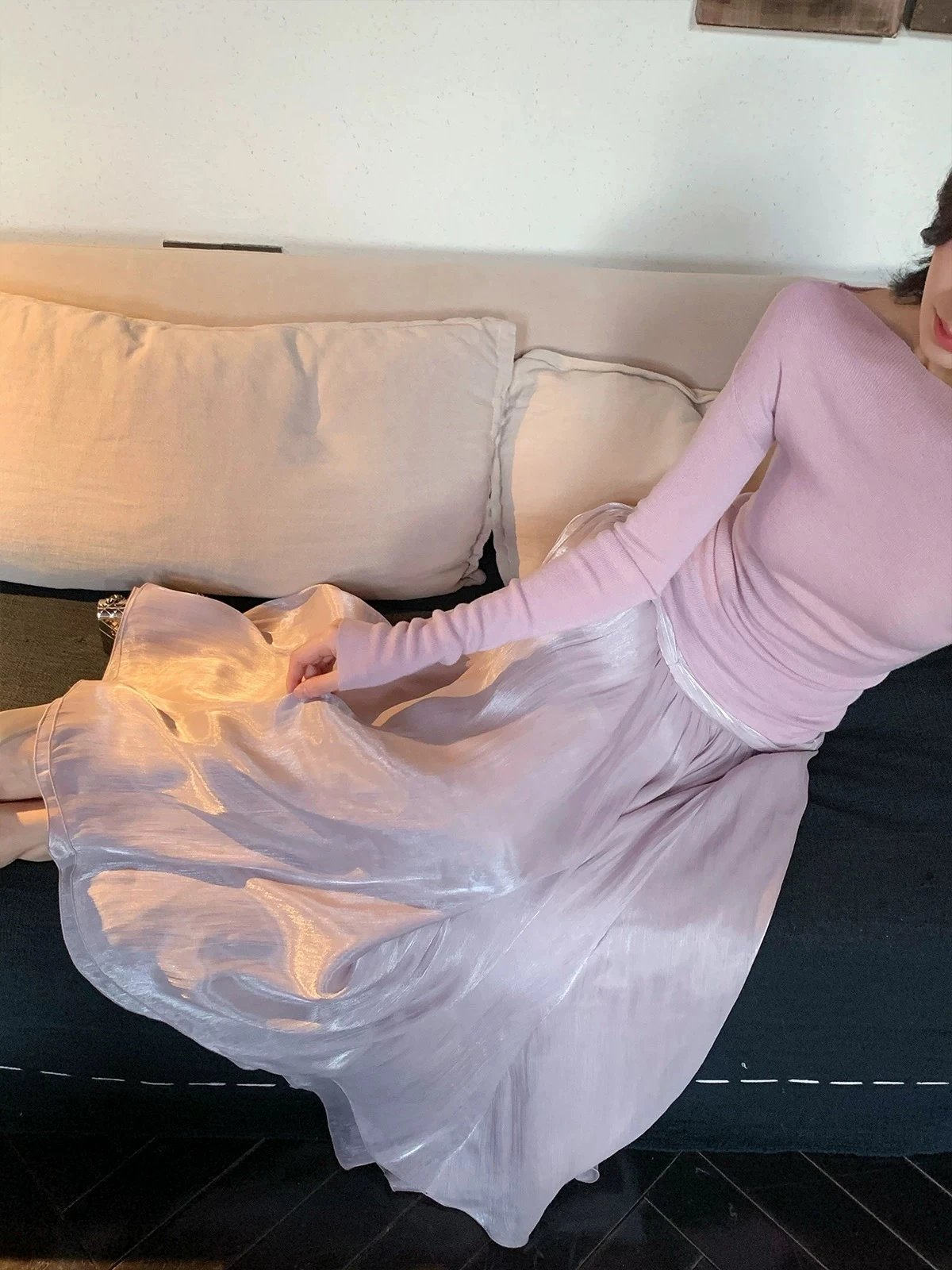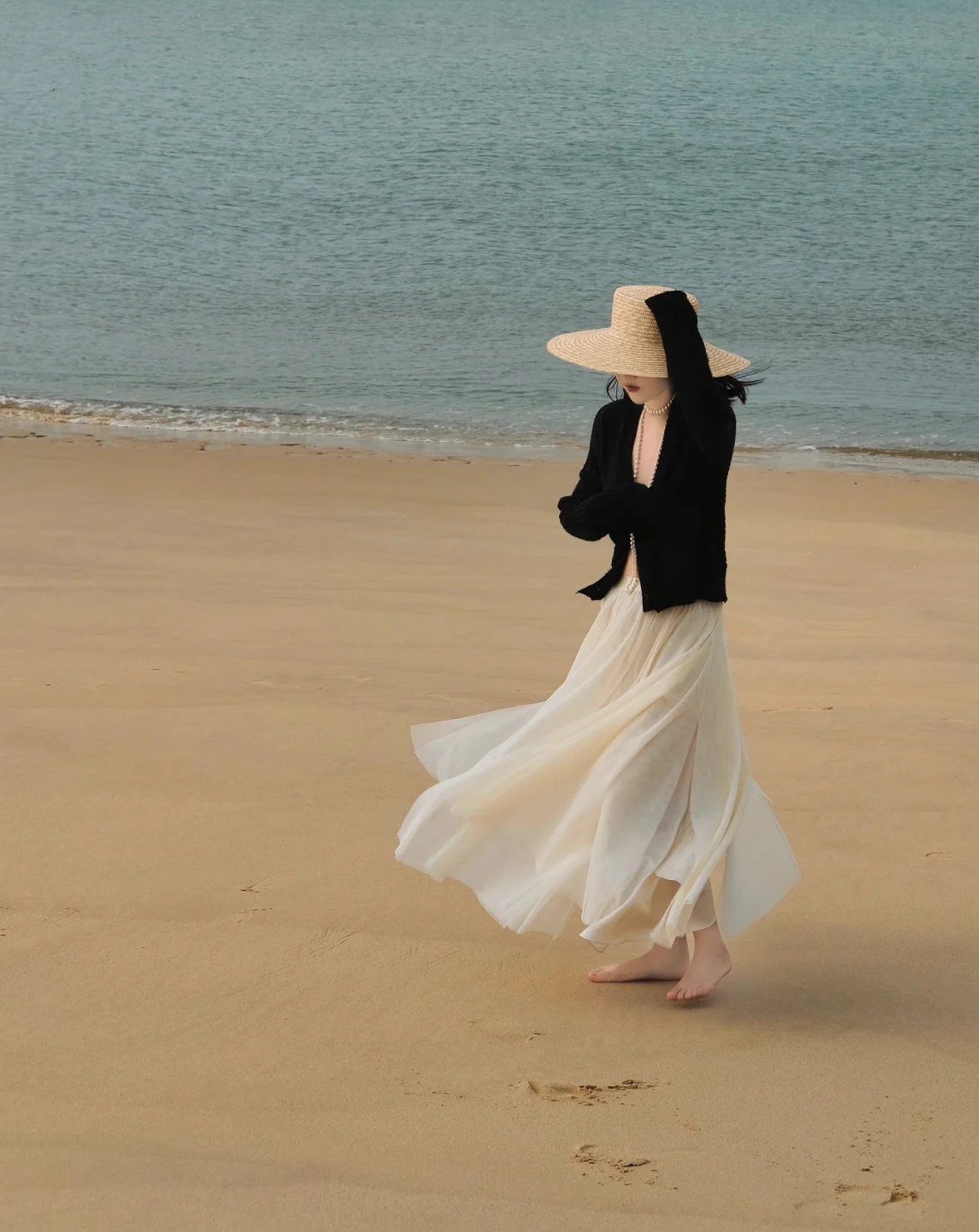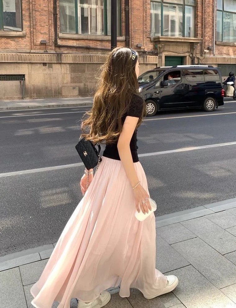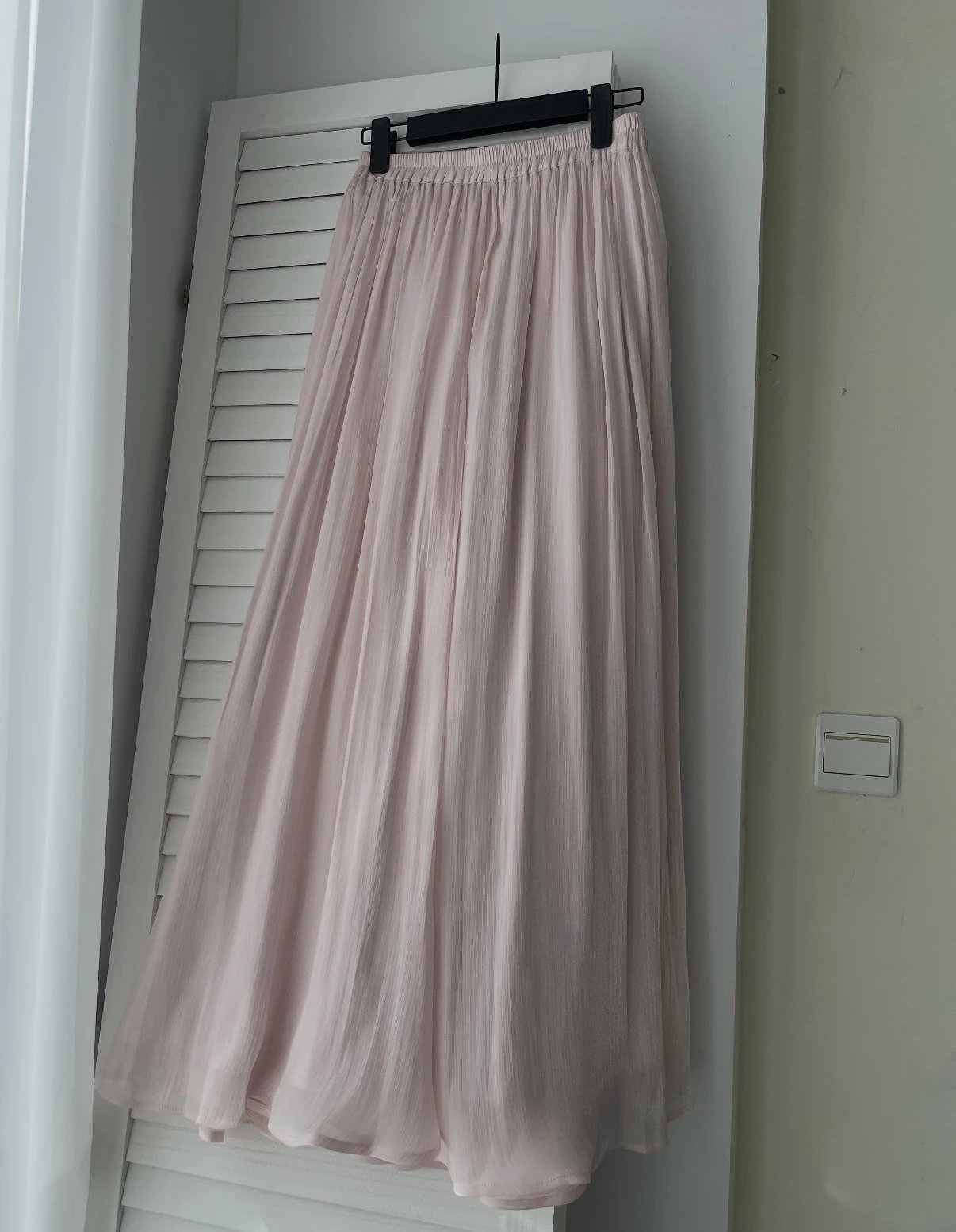 只有丰富的褶量 才会显得整个裙身充盈灵动上身垂坠有型 既有分量也有轻盈度在行走间自带温柔优雅