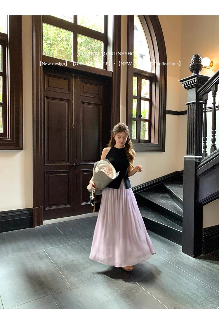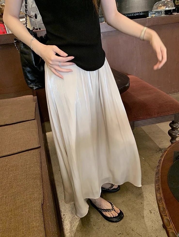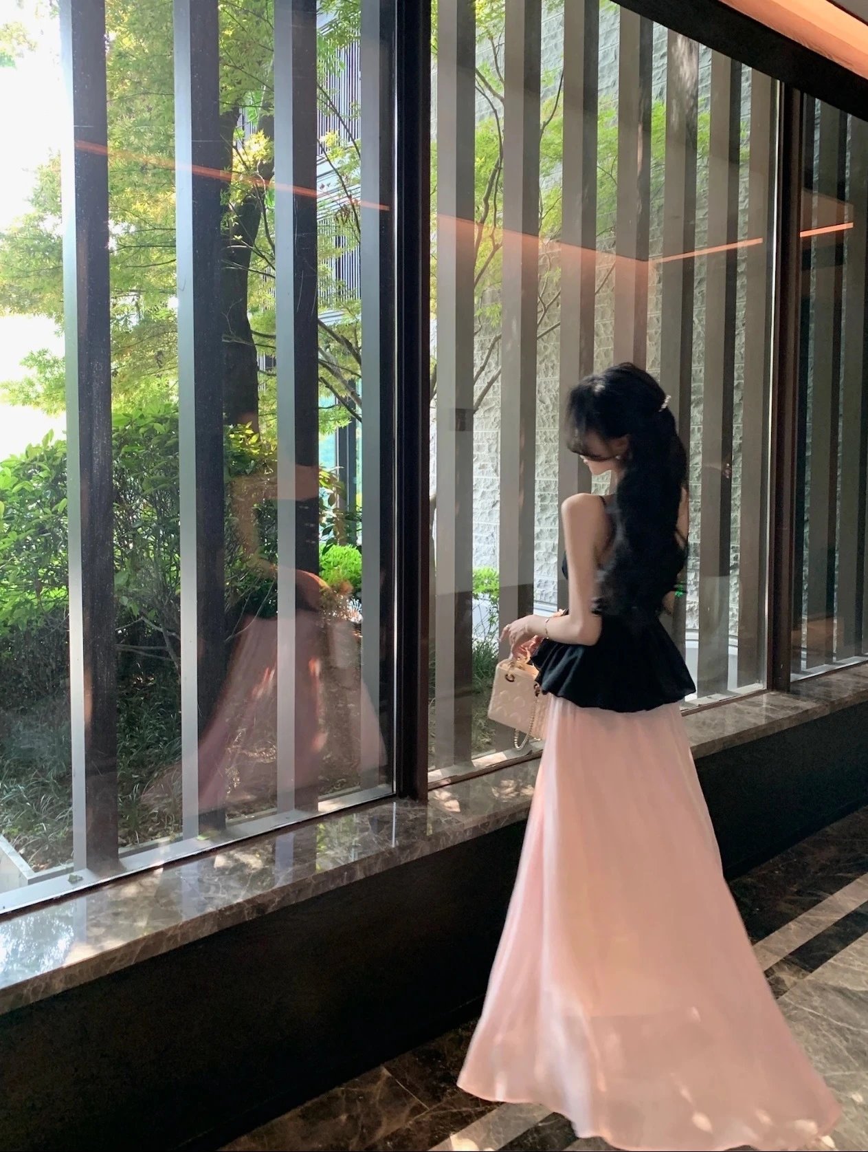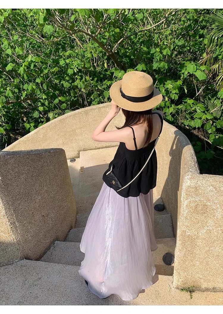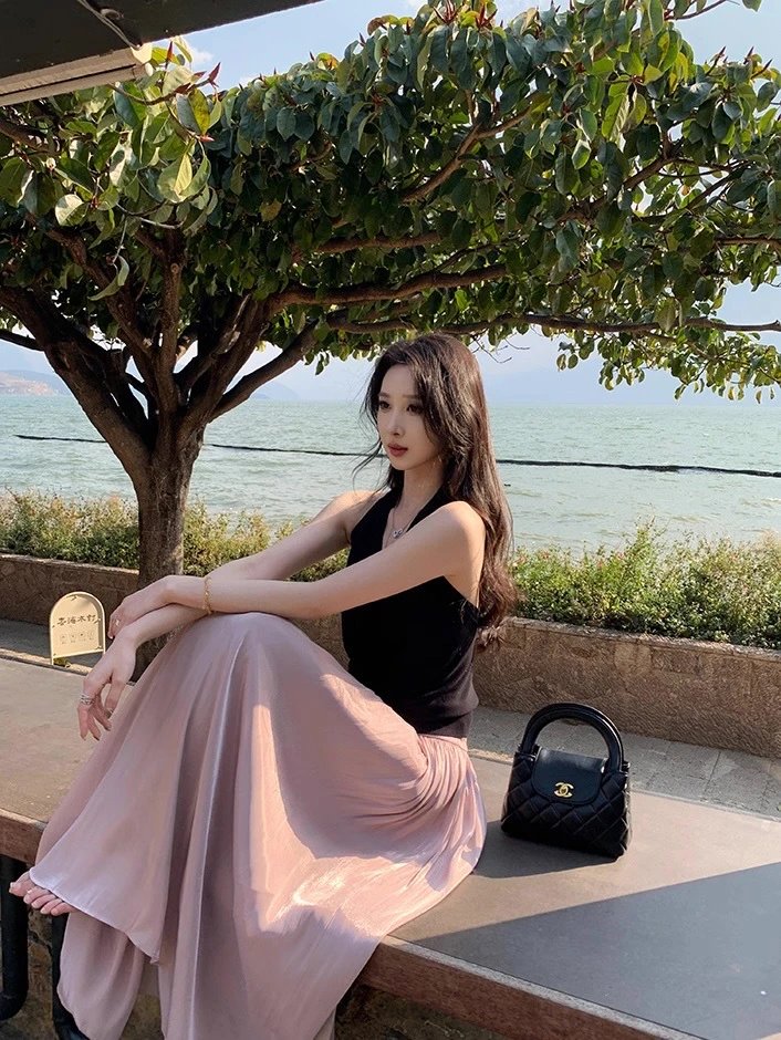 采用舒适凉感面料 亲肤垂感很好高腰的腰头视觉上显高显比例经典的大A裙摆对身材包容度很高