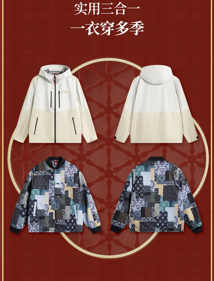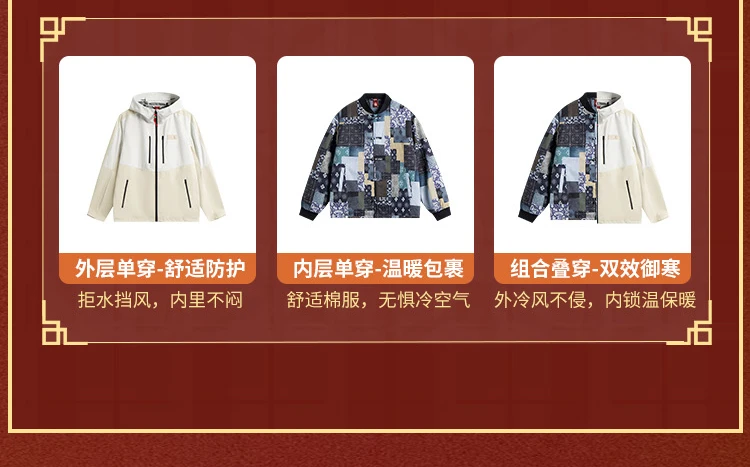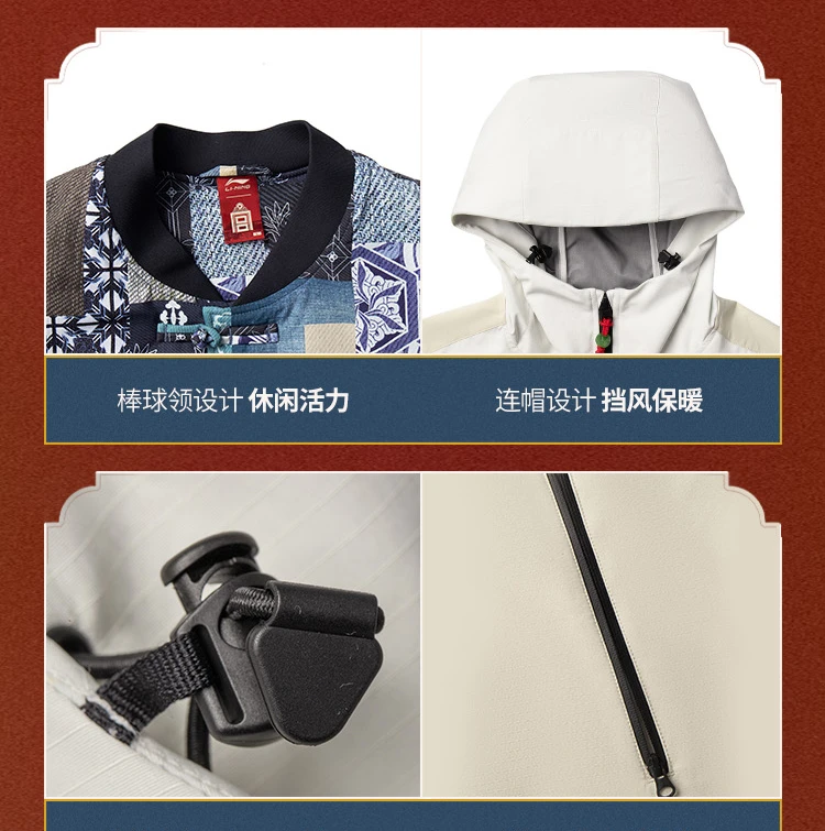 李宁中国文化系列故宫联名男子宽松三合一运动风衣套装AWBV027