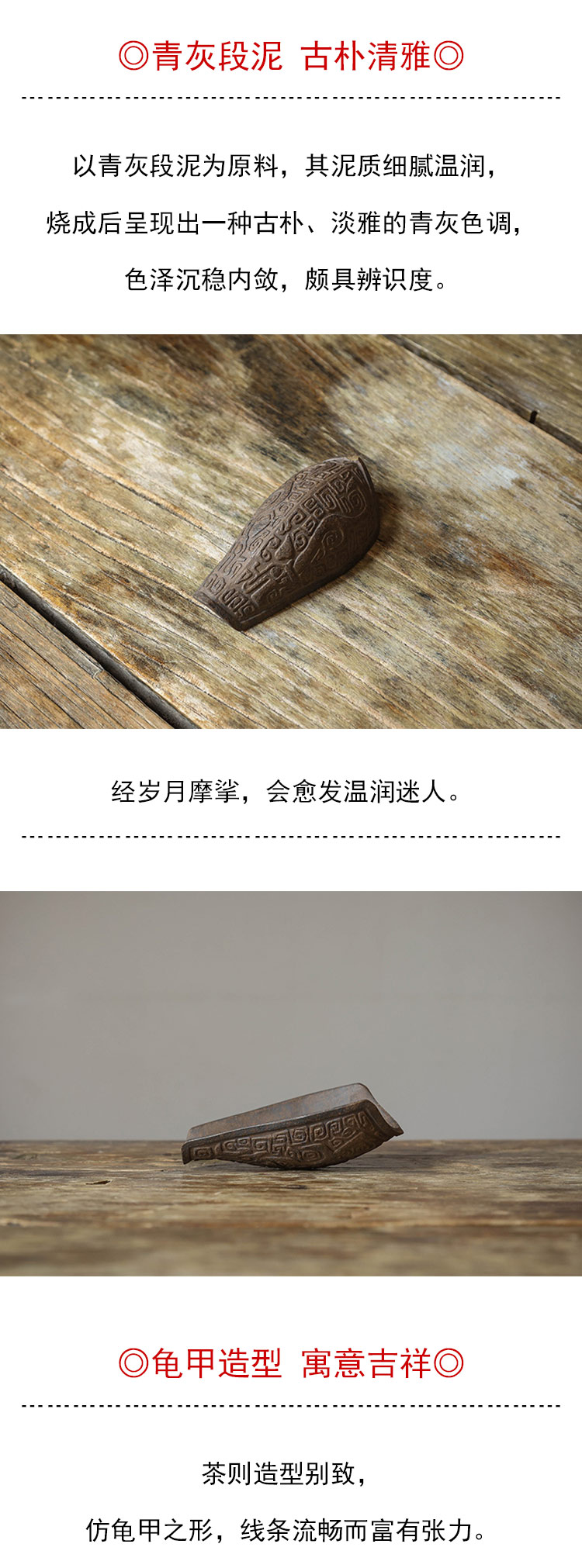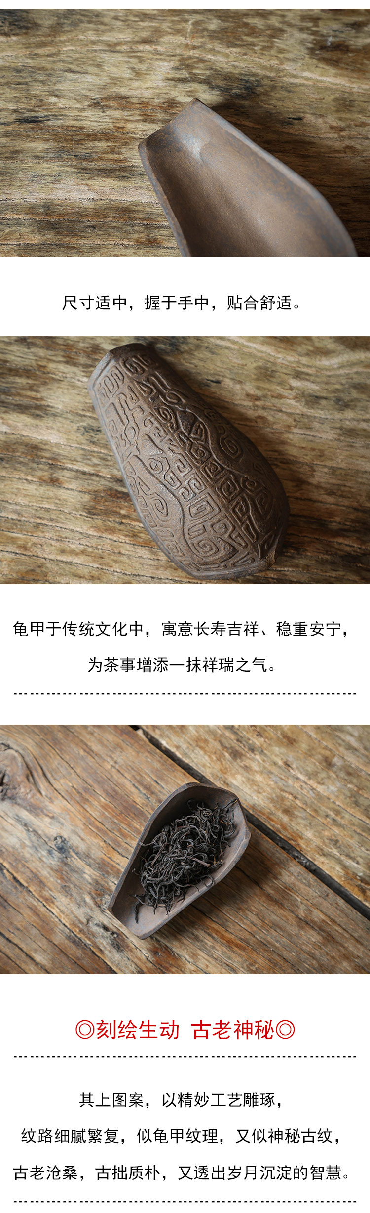 茶香记 青灰段龟甲茶则紫砂泥料茶道配件古朴清雅生动有趣