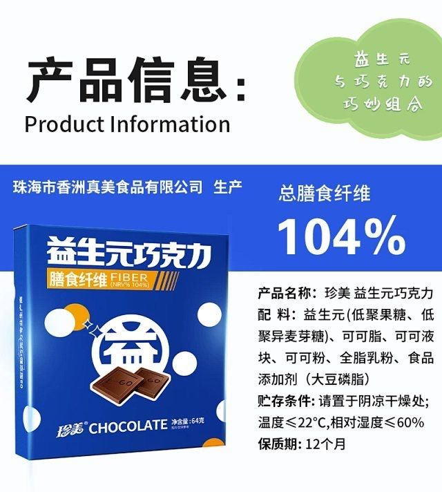 【飞行巧克力工厂 肠道益生菌的营养粮食】珍美益生元巧克力64g/盒(1-3盒)