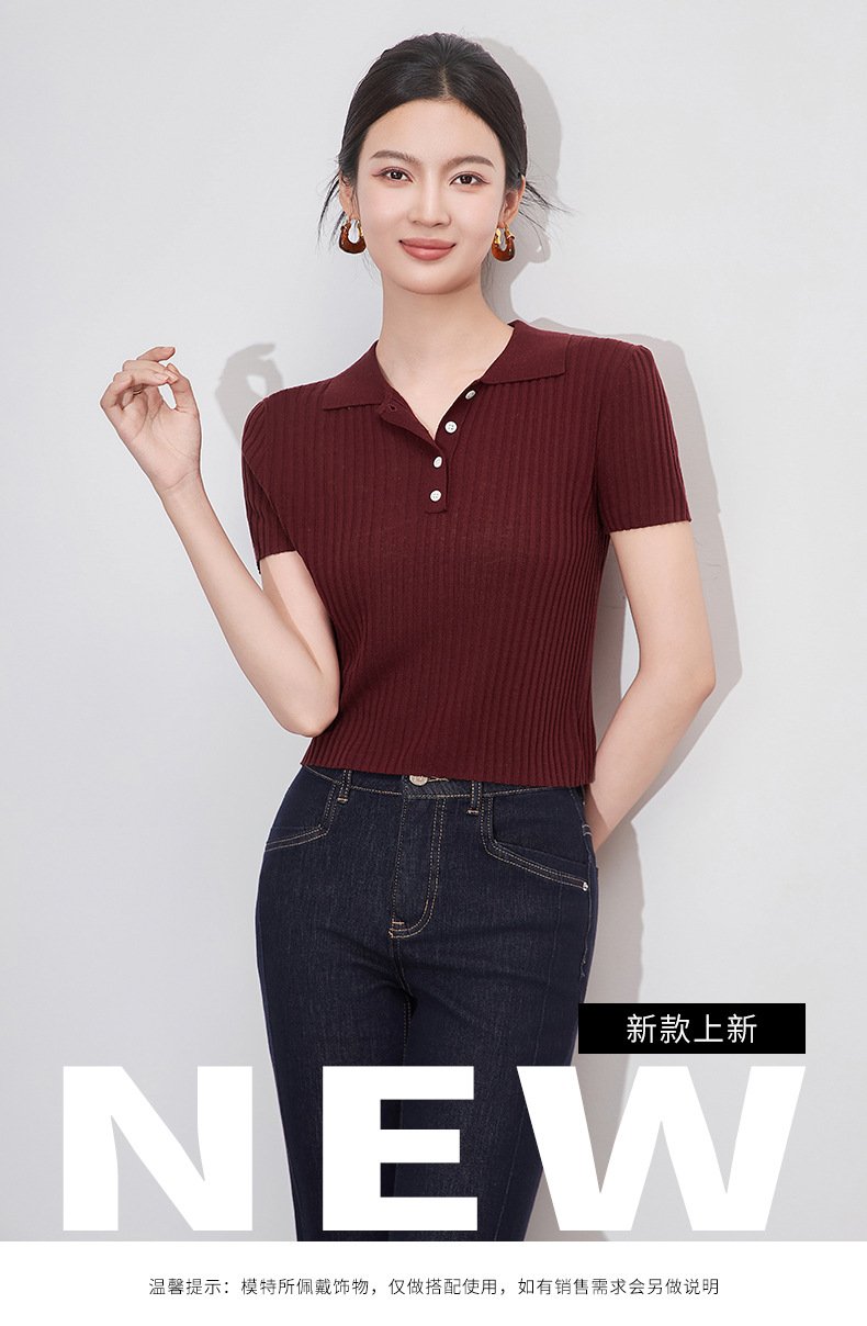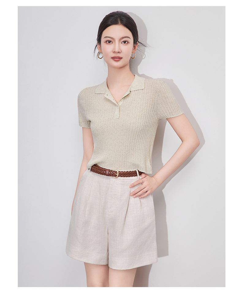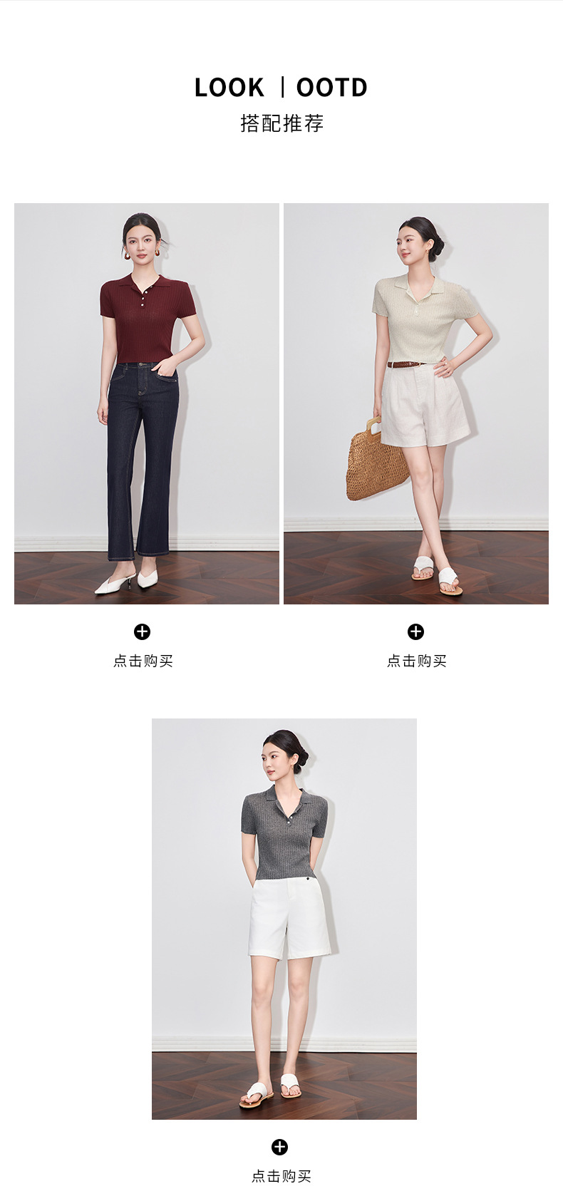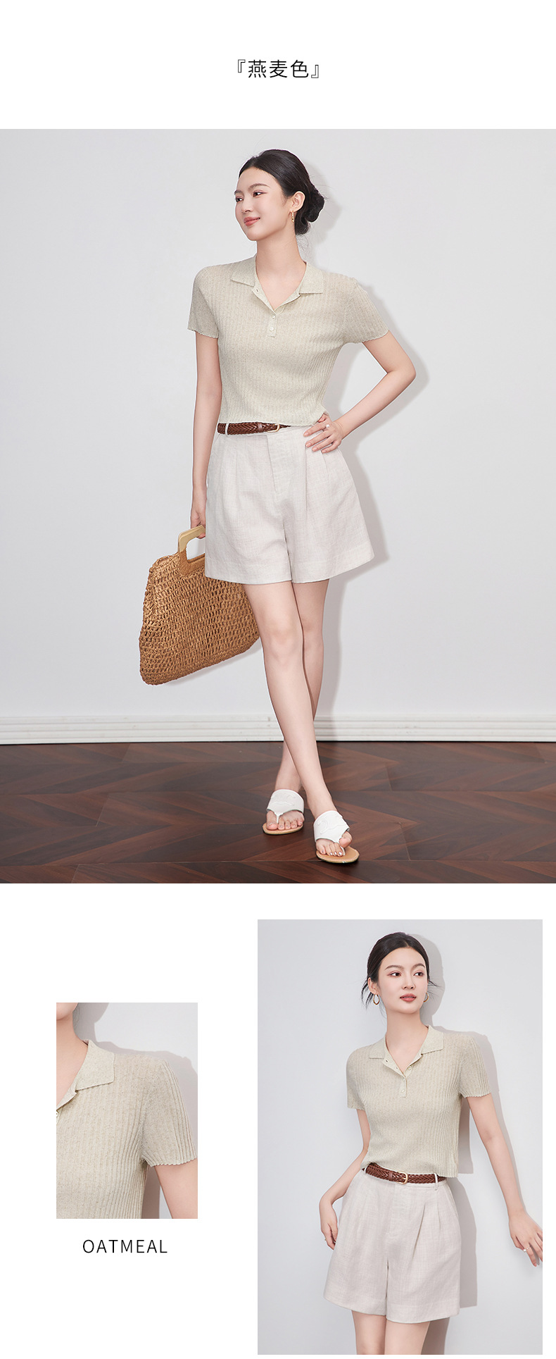 「高货wl」全新升级【铂金会员183/天猫239/差价56】(10328)洛诗琳通勤Polo领短袖上衣2025夏季超细天丝亚麻针织衫