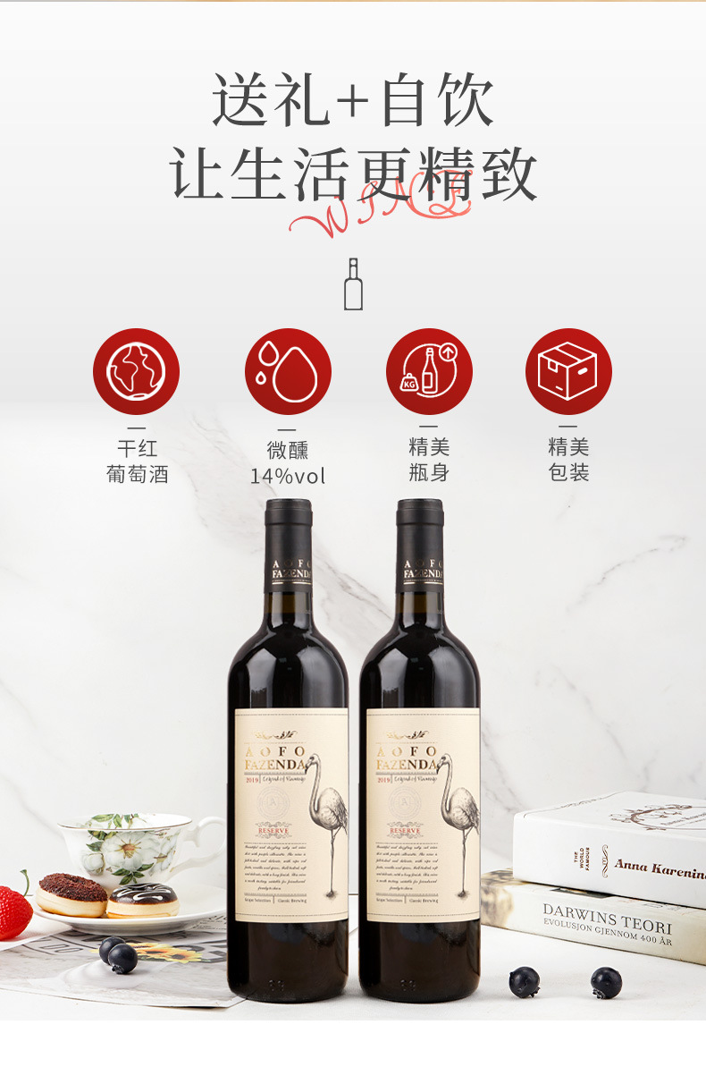 【干红葡萄酒礼盒❗满口浓香果香】精美瓶身,沉稳又大气,14度红酒干红葡萄酒750ml 双支礼盒装红酒。rf