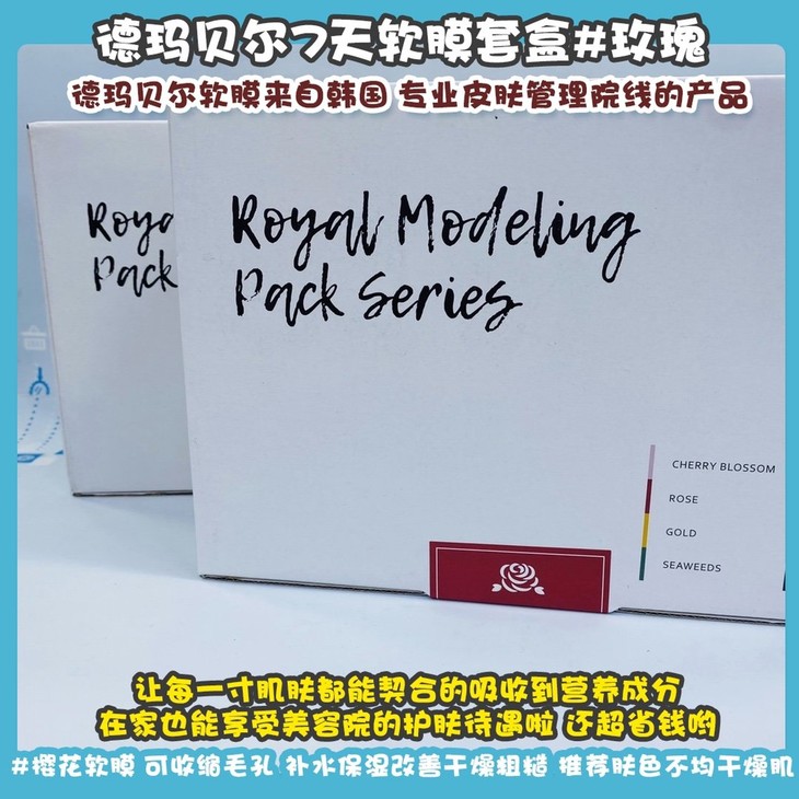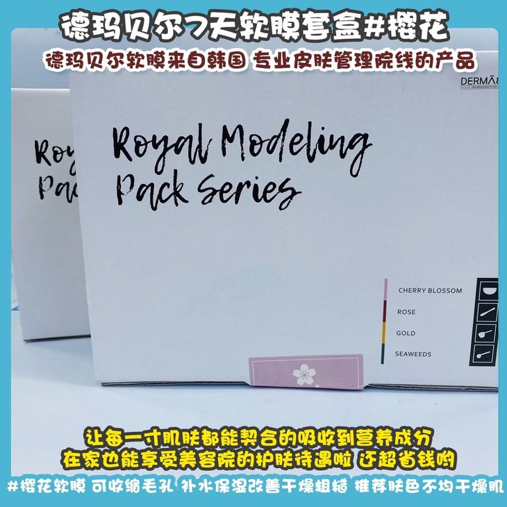 德玛贝尔7天软膜套盒#樱花/#玫瑰👍德玛贝尔软膜来自韩国🇰🇷专业皮肤管理院线的产品🏥,是全世界第1️⃣家发明凝胶软膜的工厂哦!软膜可以完全切合面部曲线💆,让每一寸肌肤都能契合的吸收到营养成分💦。在家也能享受美容院的护肤待遇啦,还超省钱哟🉑~#樱花软膜🌸可收缩毛孔,补水保湿改善干燥粗糙,推荐肤色不均干燥肌/#玫瑰软膜🌹主要针对晒后救急、抗氧、抑制黑色素、美白,推荐暗沉暗黄肌肤。