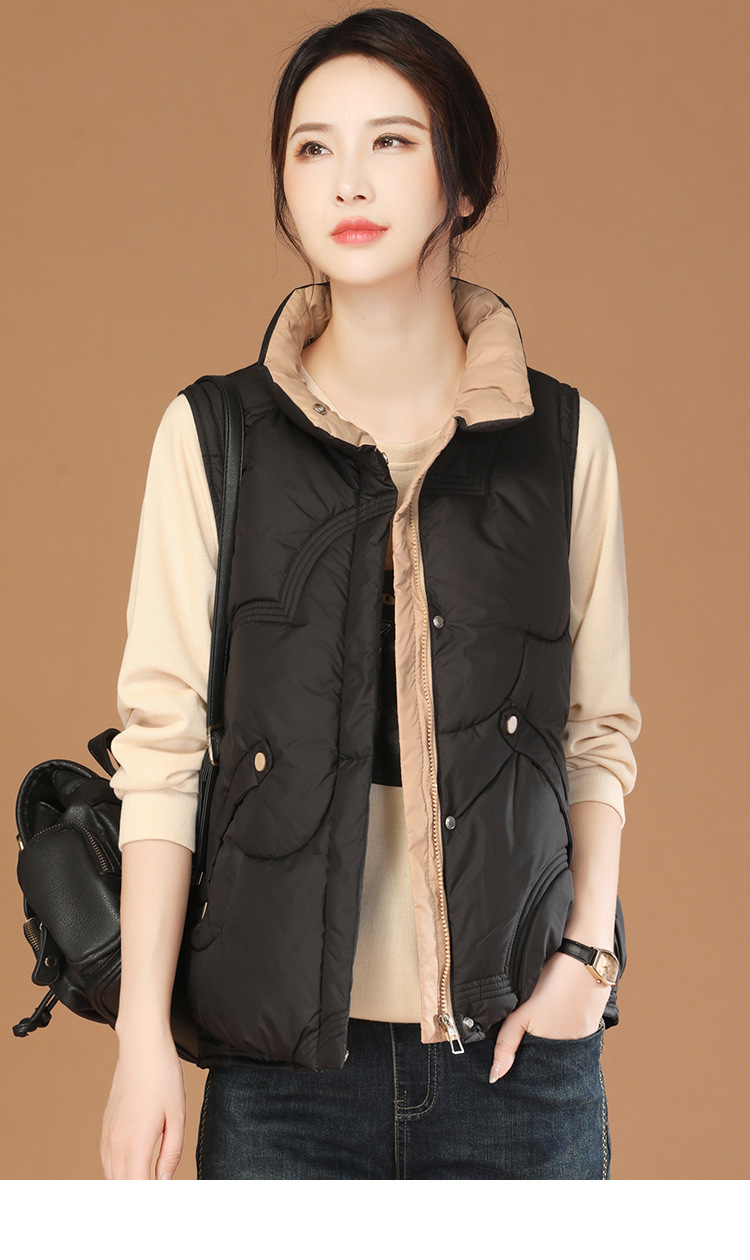 HC D0486立领坎肩加厚保暖黑色棉马甲 商品图4