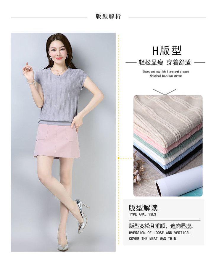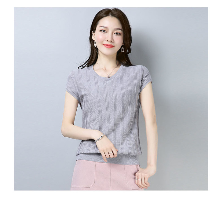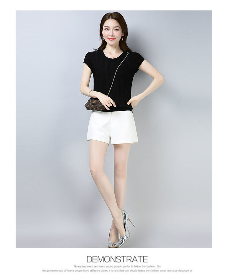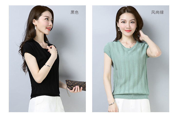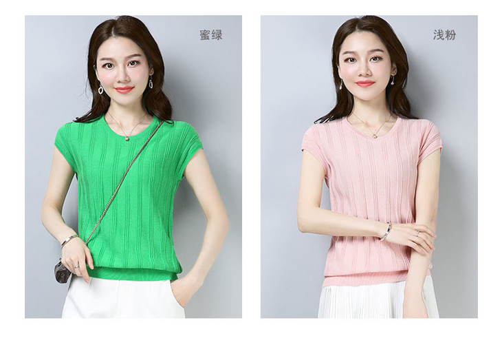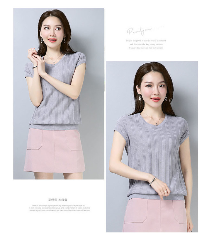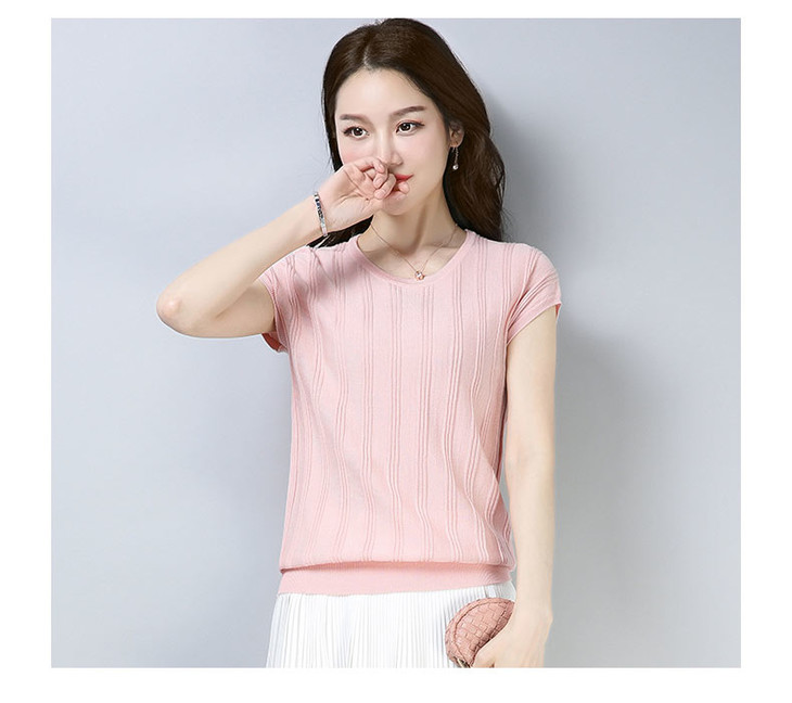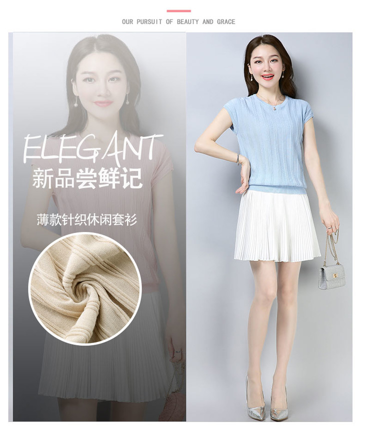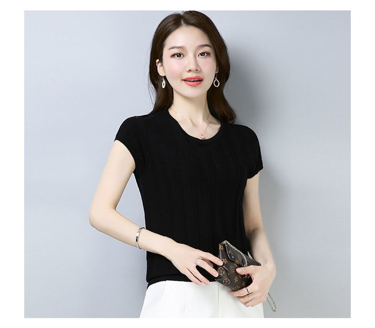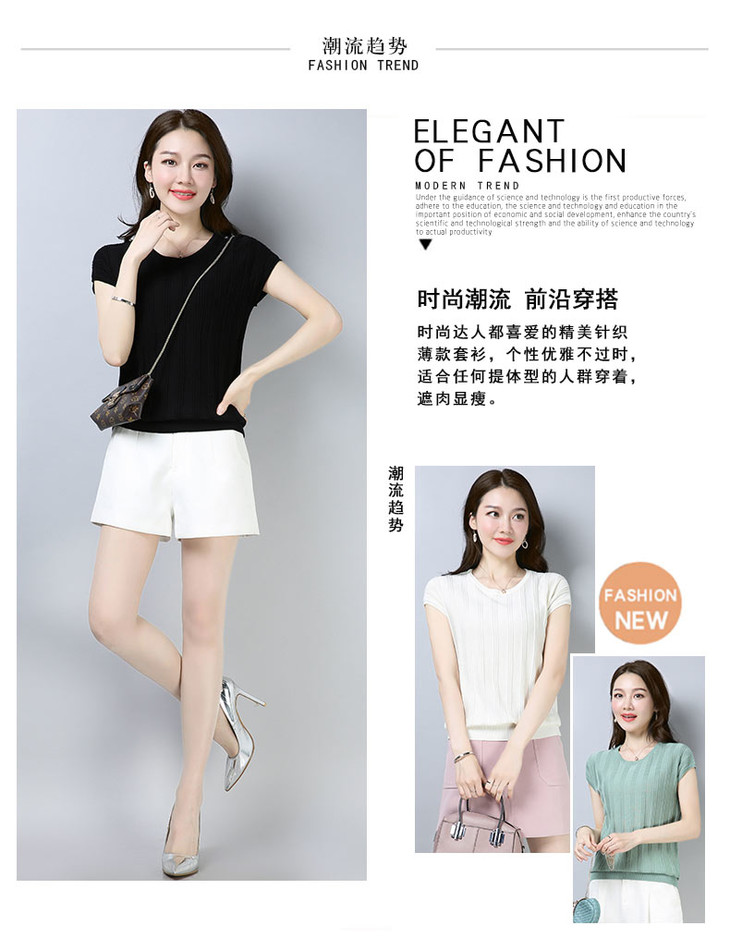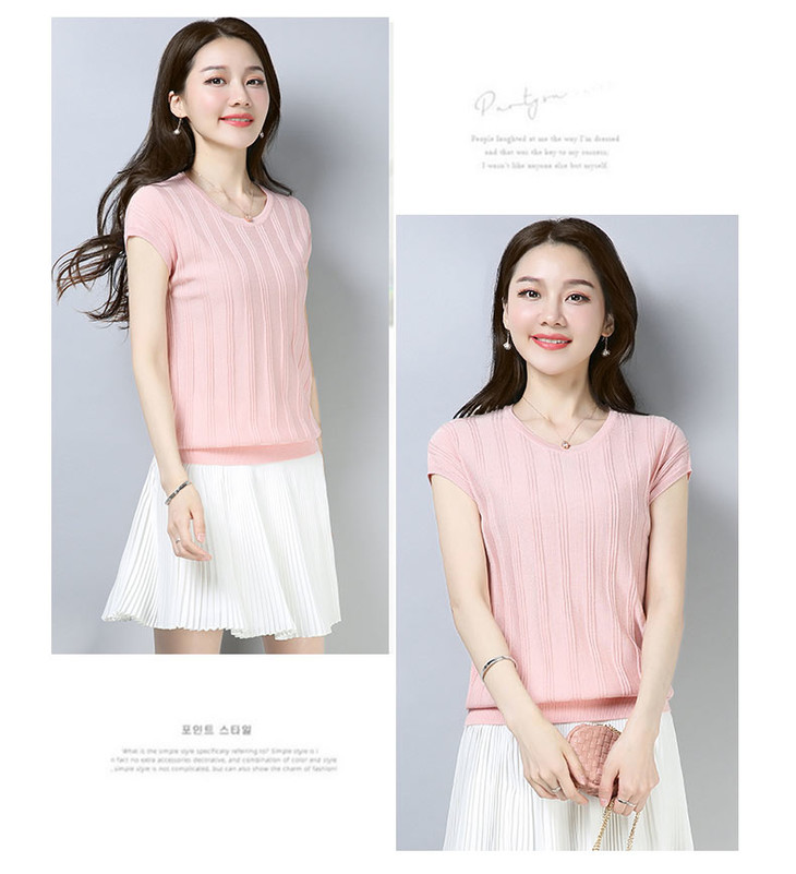 PY-39802 春夏季新款女式针织衫圆领套头短袖T恤纯色修身短款百搭打底衫
