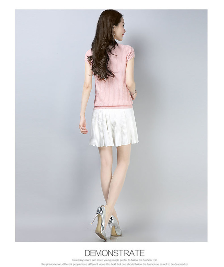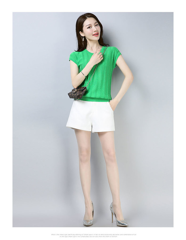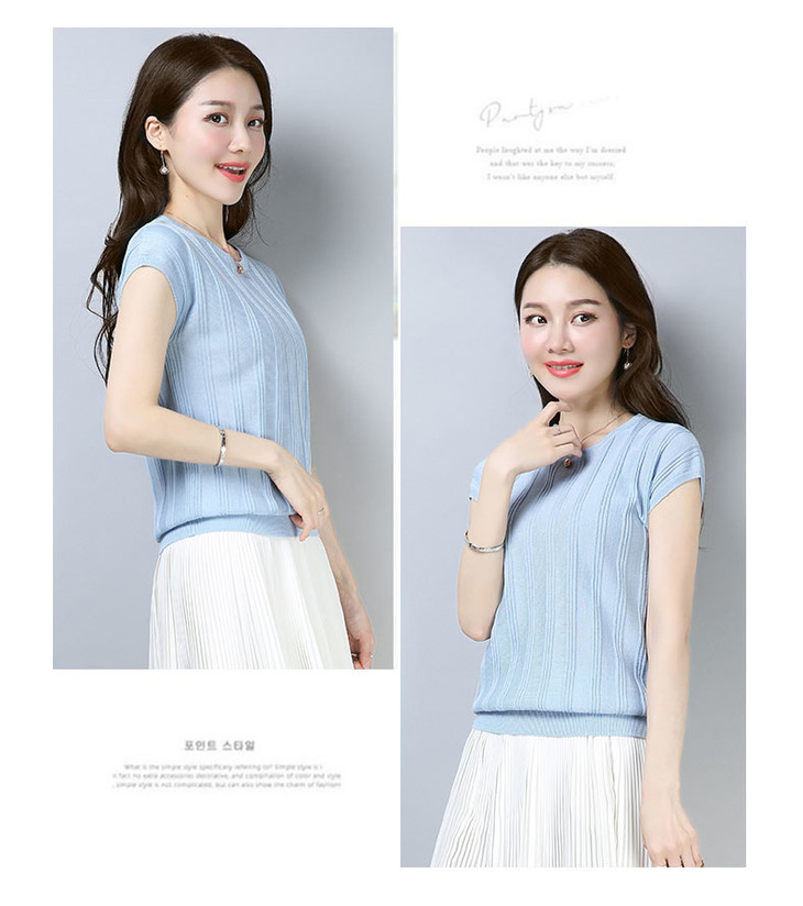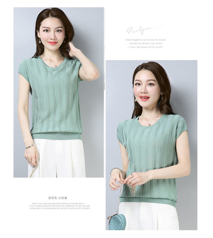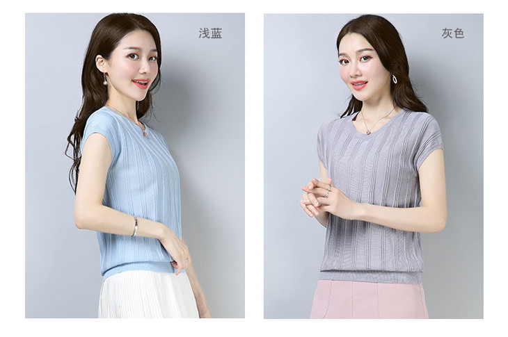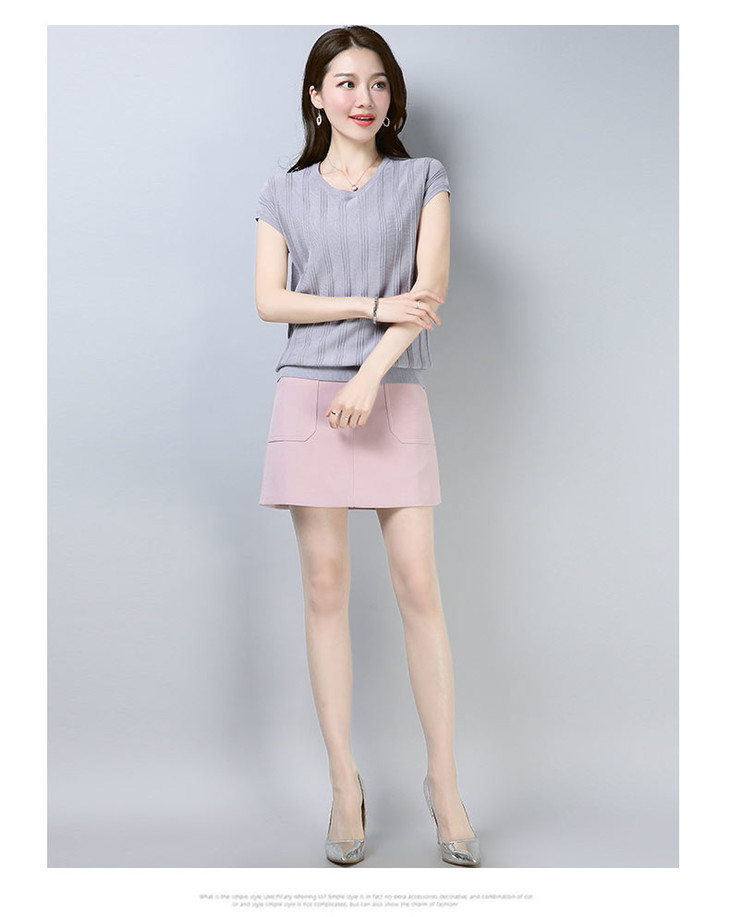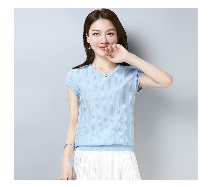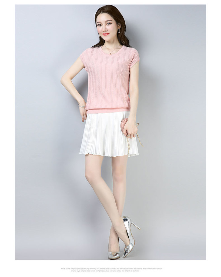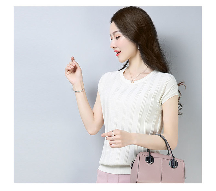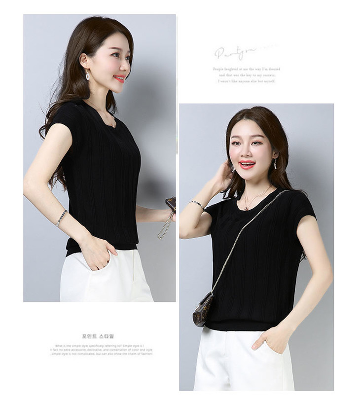 PY-39802 春夏季新款女式针织衫圆领套头短袖T恤纯色修身短款百搭打底衫