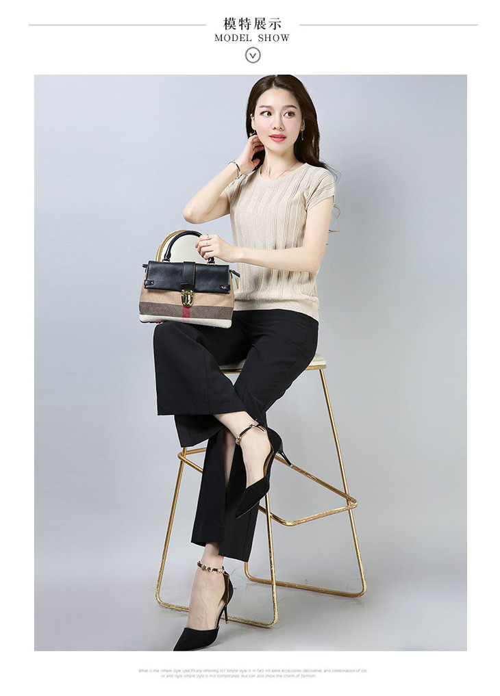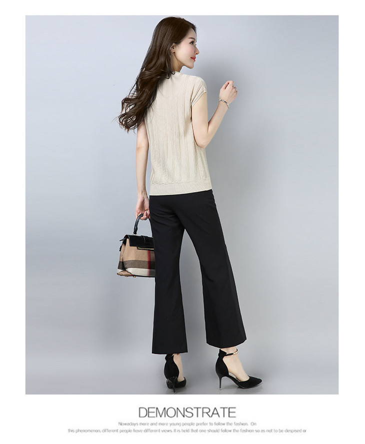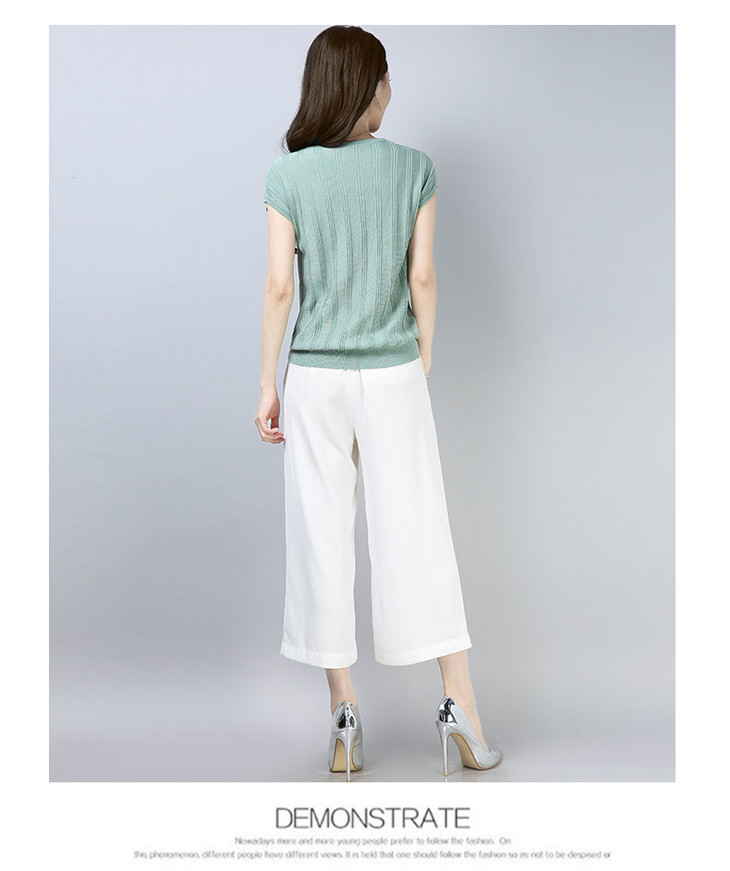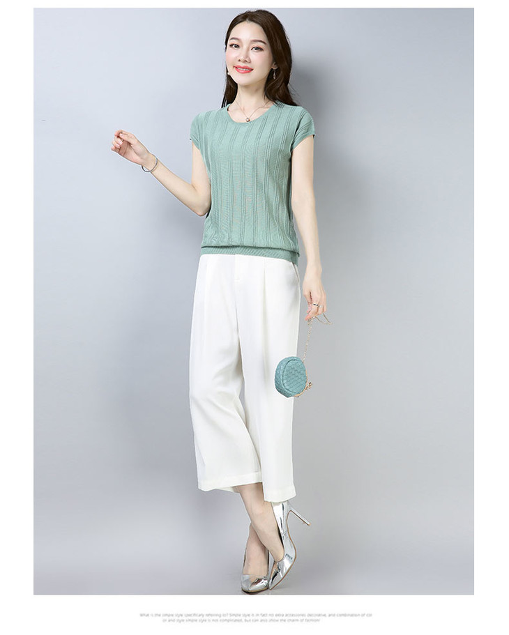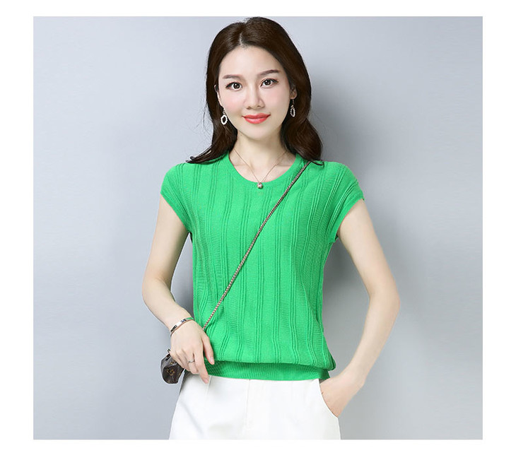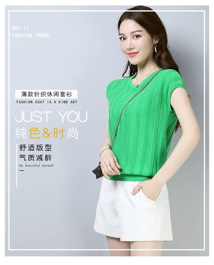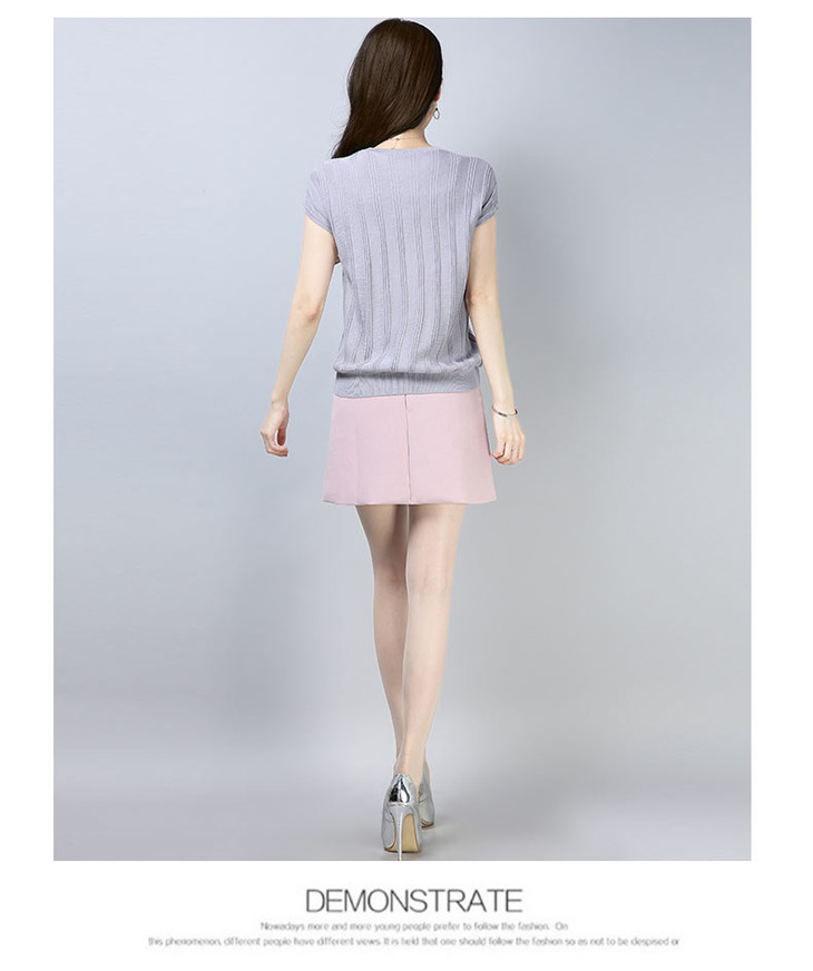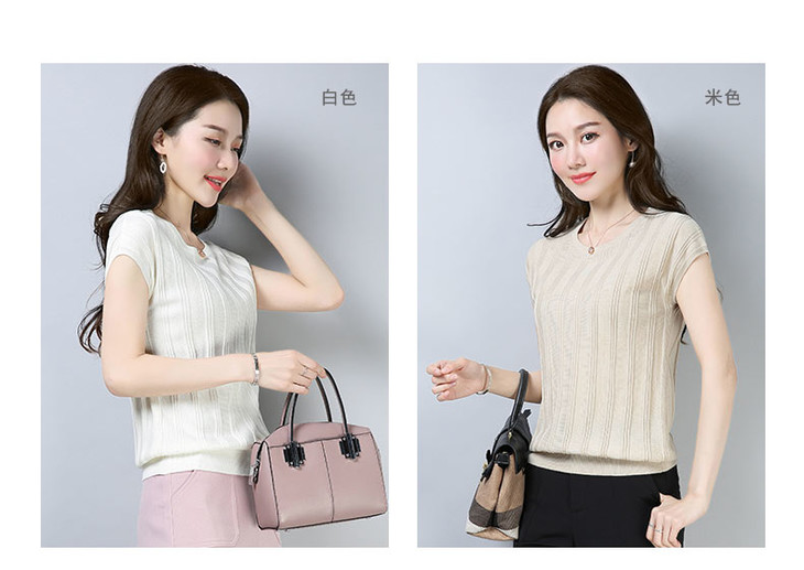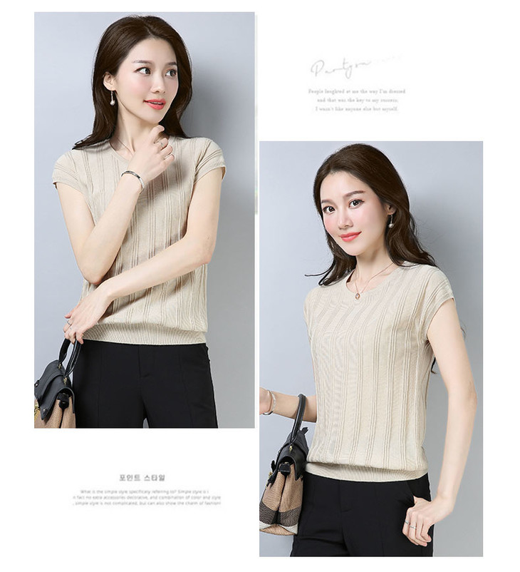 PY-39802 春夏季新款女式针织衫圆领套头短袖T恤纯色修身短款百搭打底衫