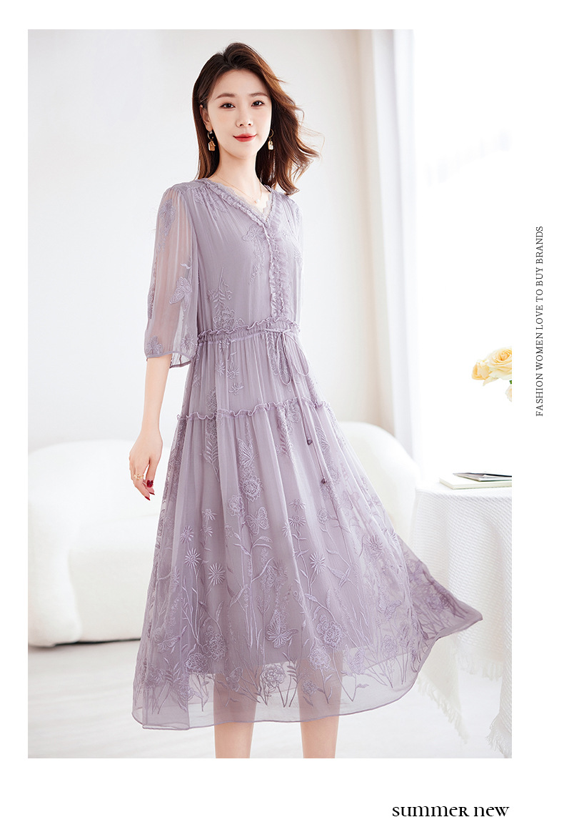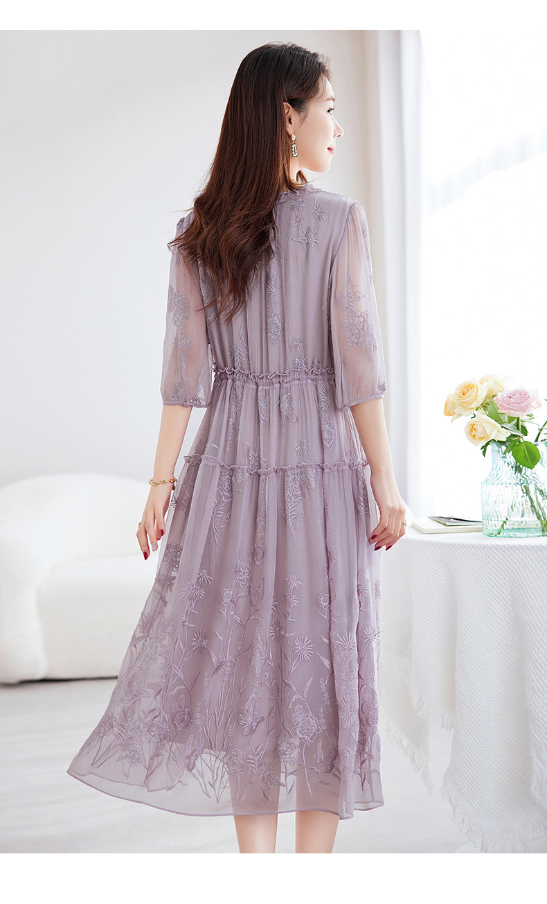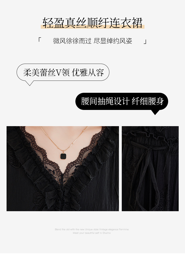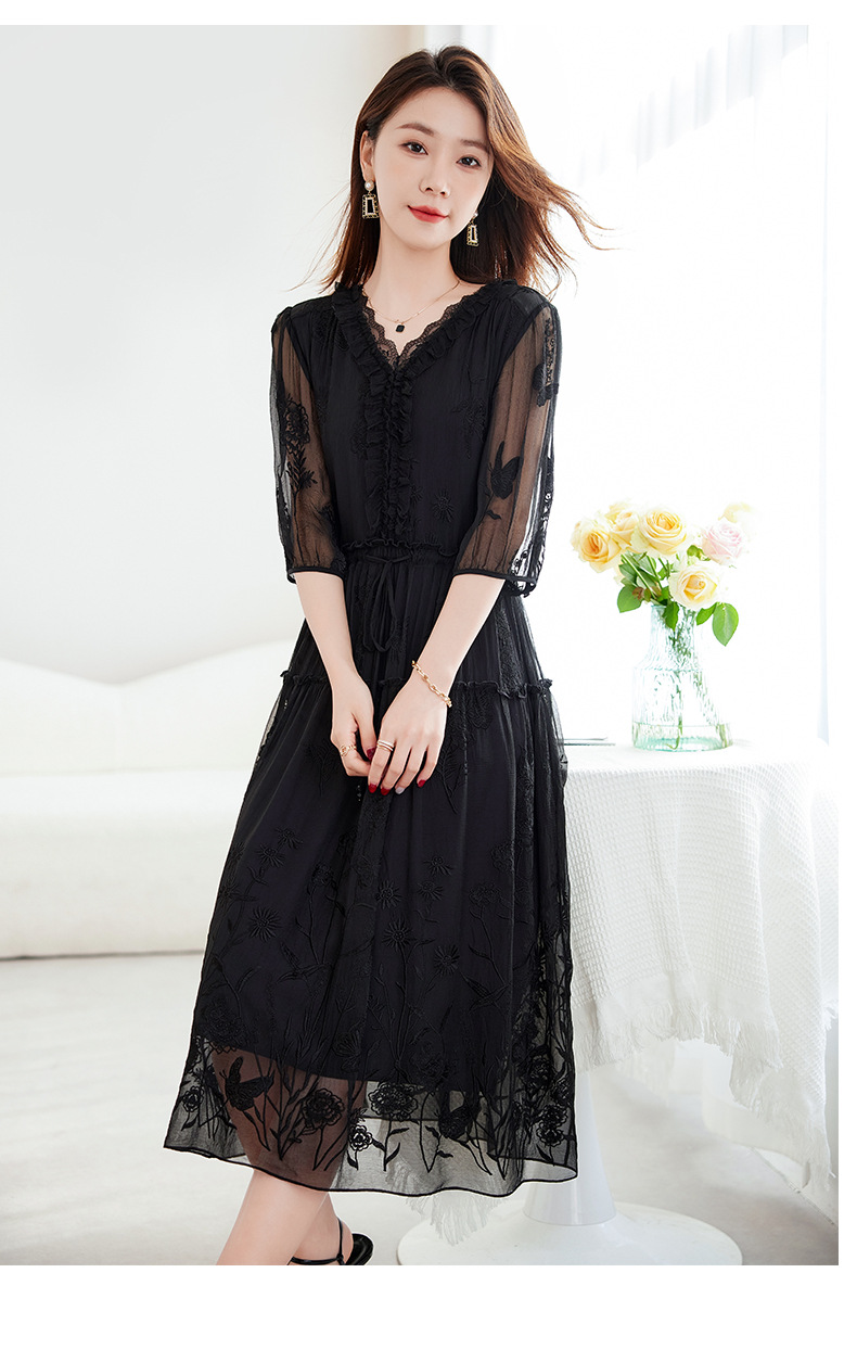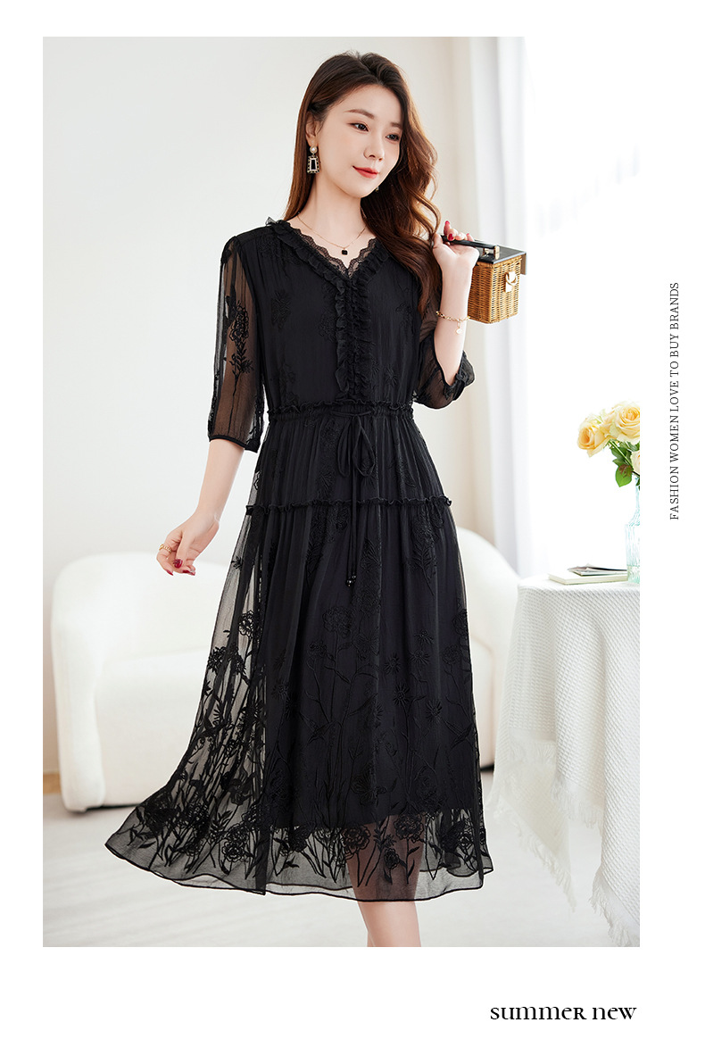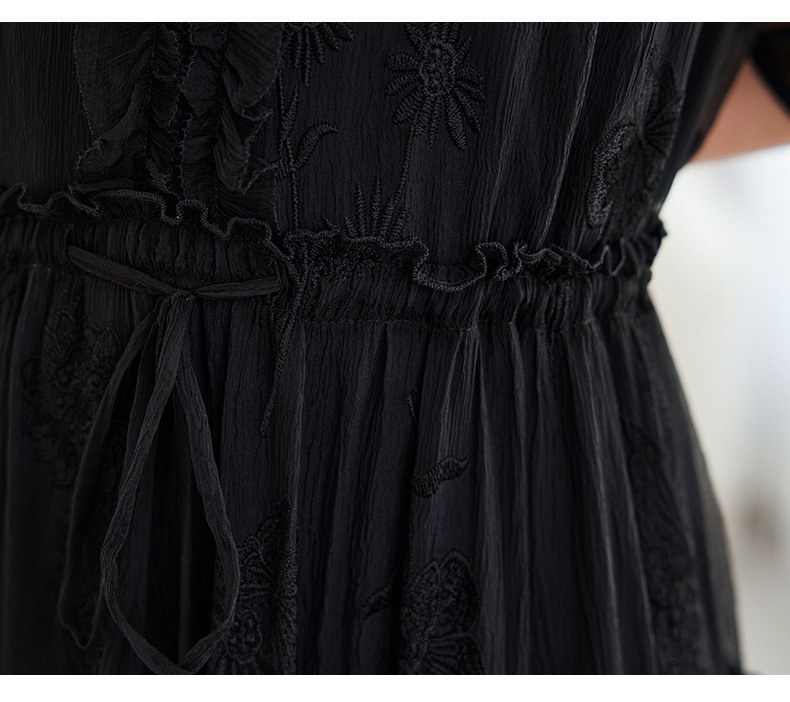 丁摩原创丝绸100%桑蚕丝重工绣花真丝连衣裙女AL9500