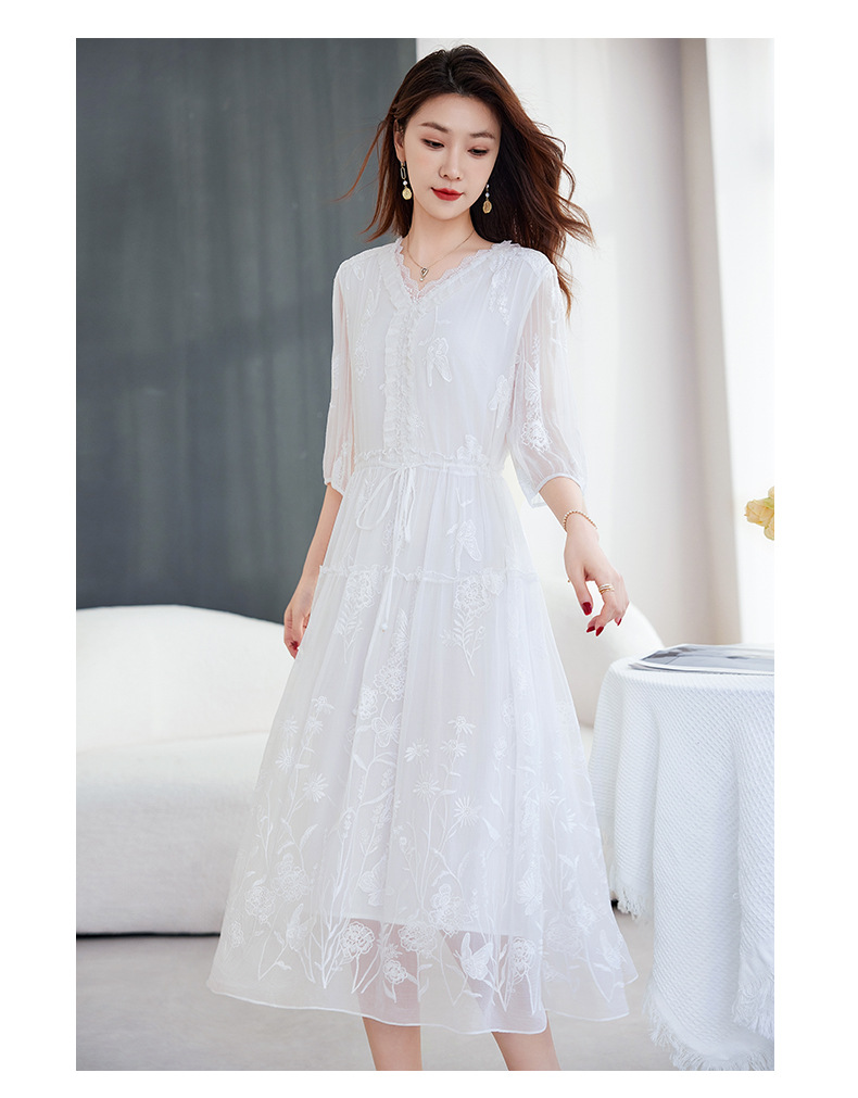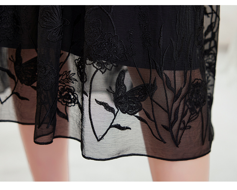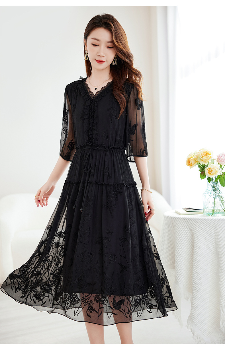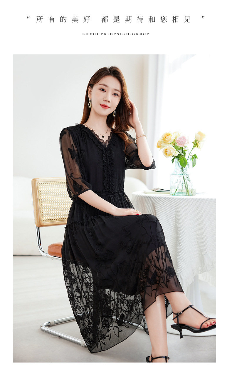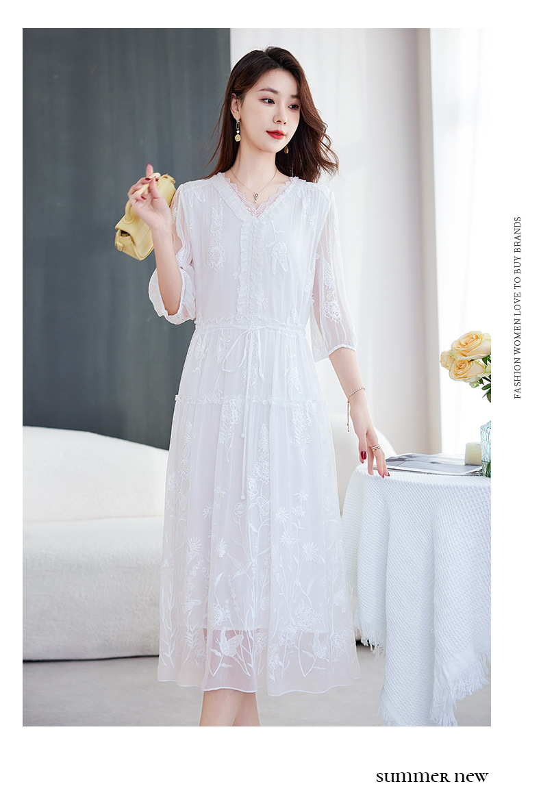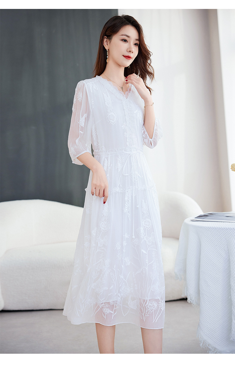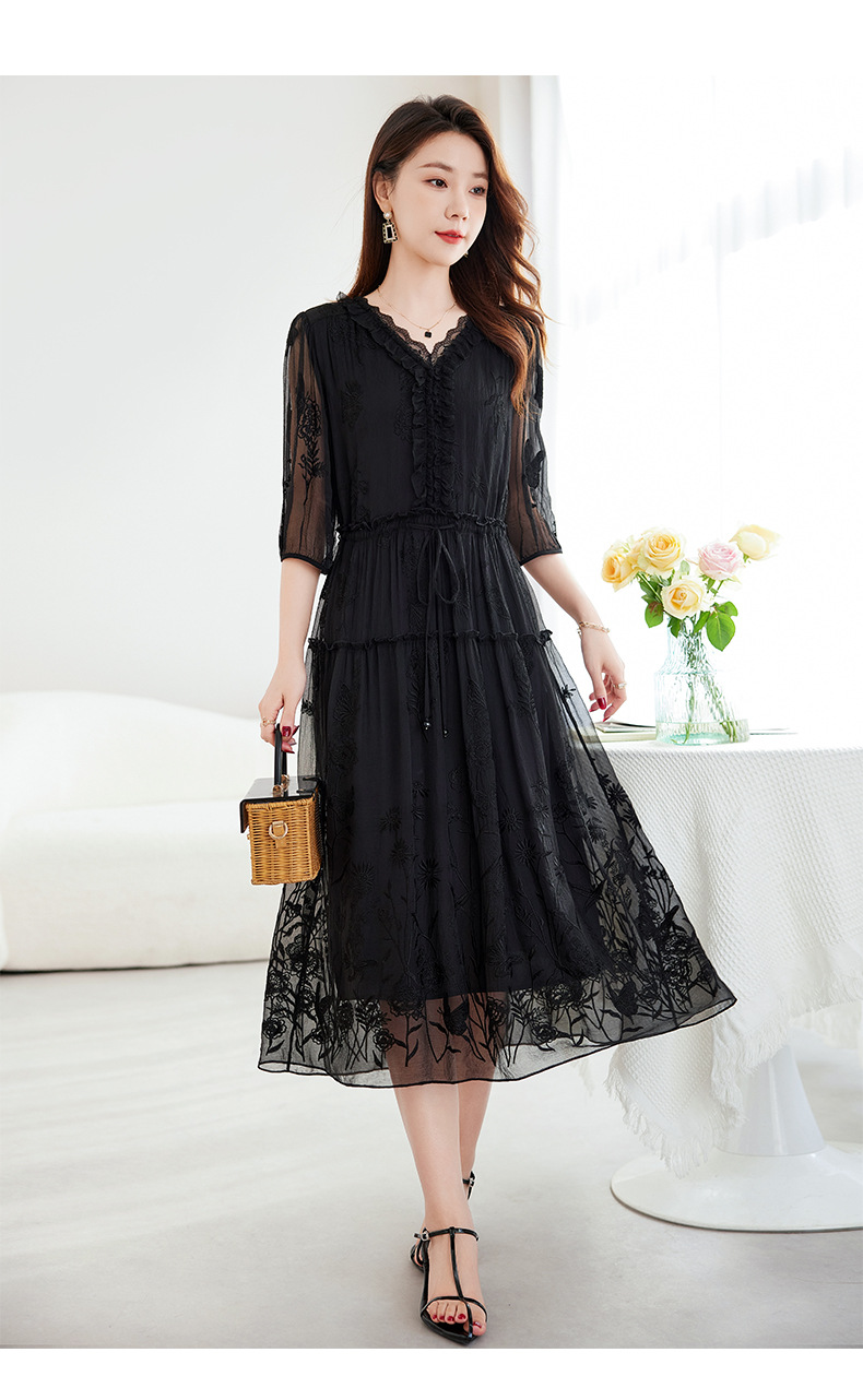 丁摩原创丝绸100%桑蚕丝重工绣花真丝连衣裙女AL9500