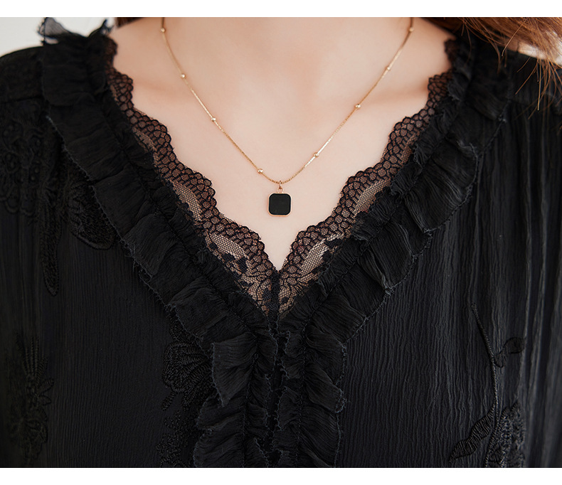 百媚生 桑蚕丝羊毛法式蕾丝拼接V领针织开衫女NS-6006-68