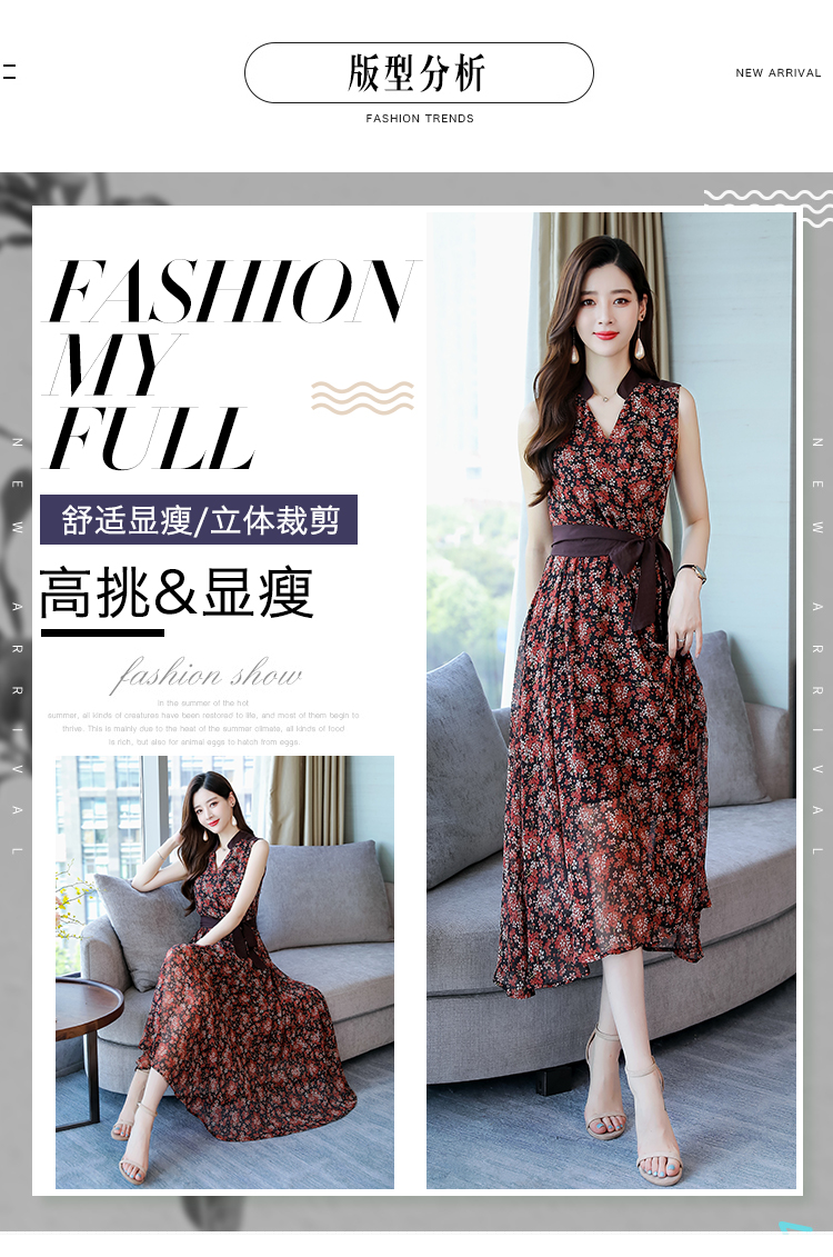 WZNH-BBL6670(配腰带)印花潮流时尚短袖韩版收腰夏季连衣裙