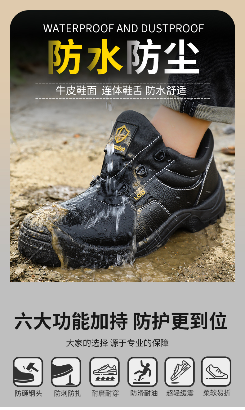 蓝鸥盾劳保鞋防砸防刺安全鞋钢包头牛皮防水工作鞋