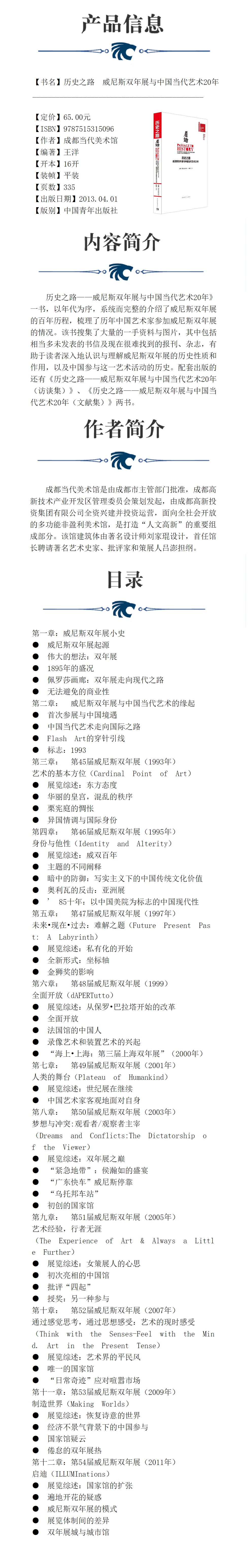 历史之路:威尼斯双年展与中国当代艺术20年 成都当代美术馆主编,王洋编著 中国青年出版社