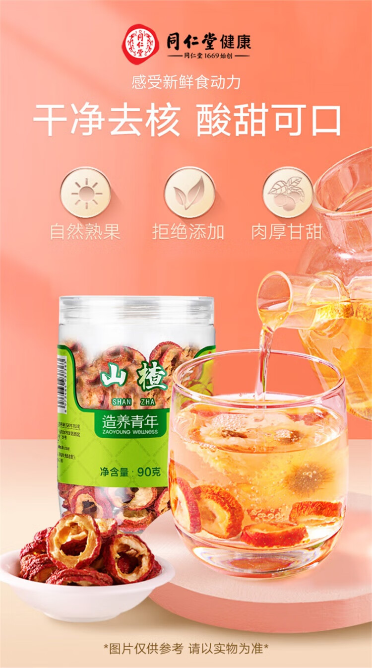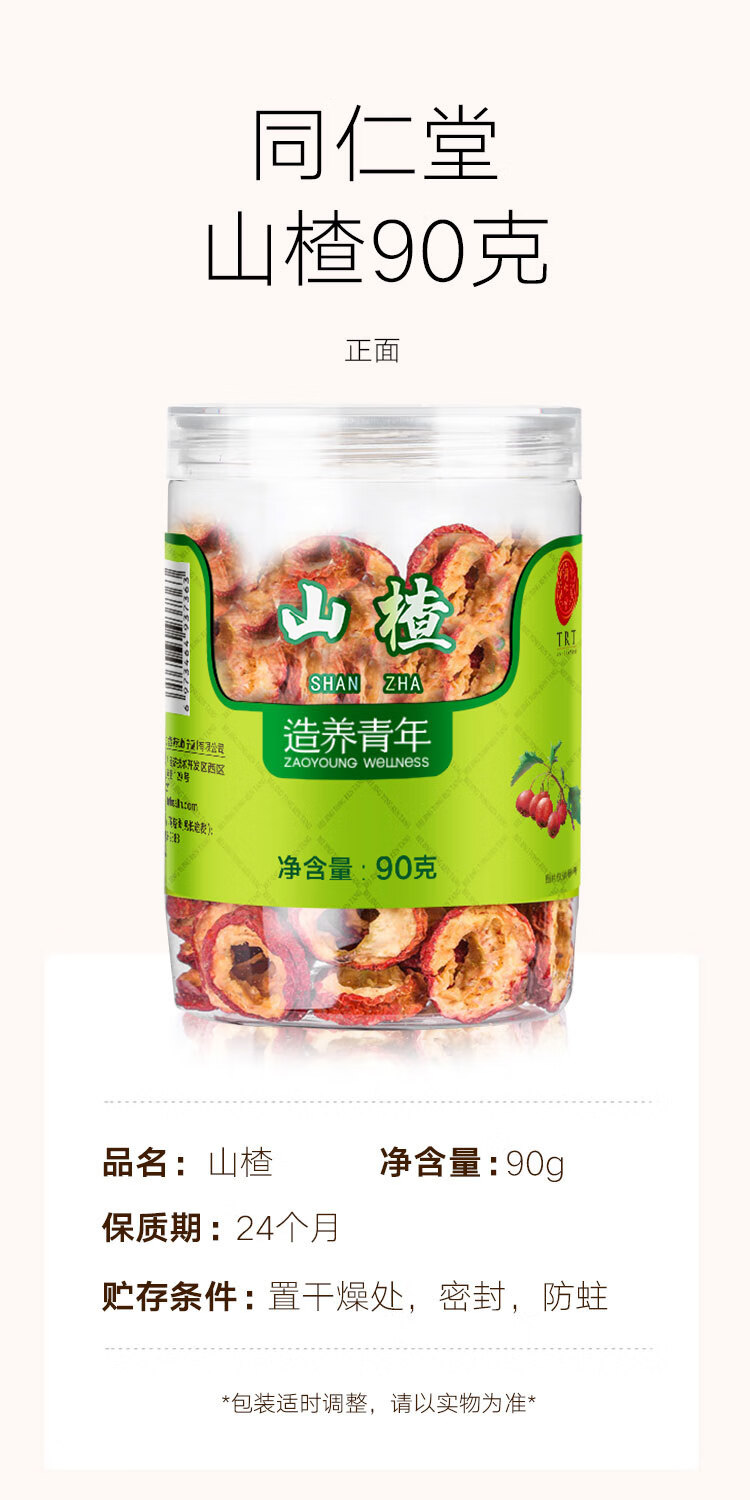 北京同仁堂 造养青年 精选无核山楂干90g*2罐 山楂片 干制山楂 泡水饮用SY