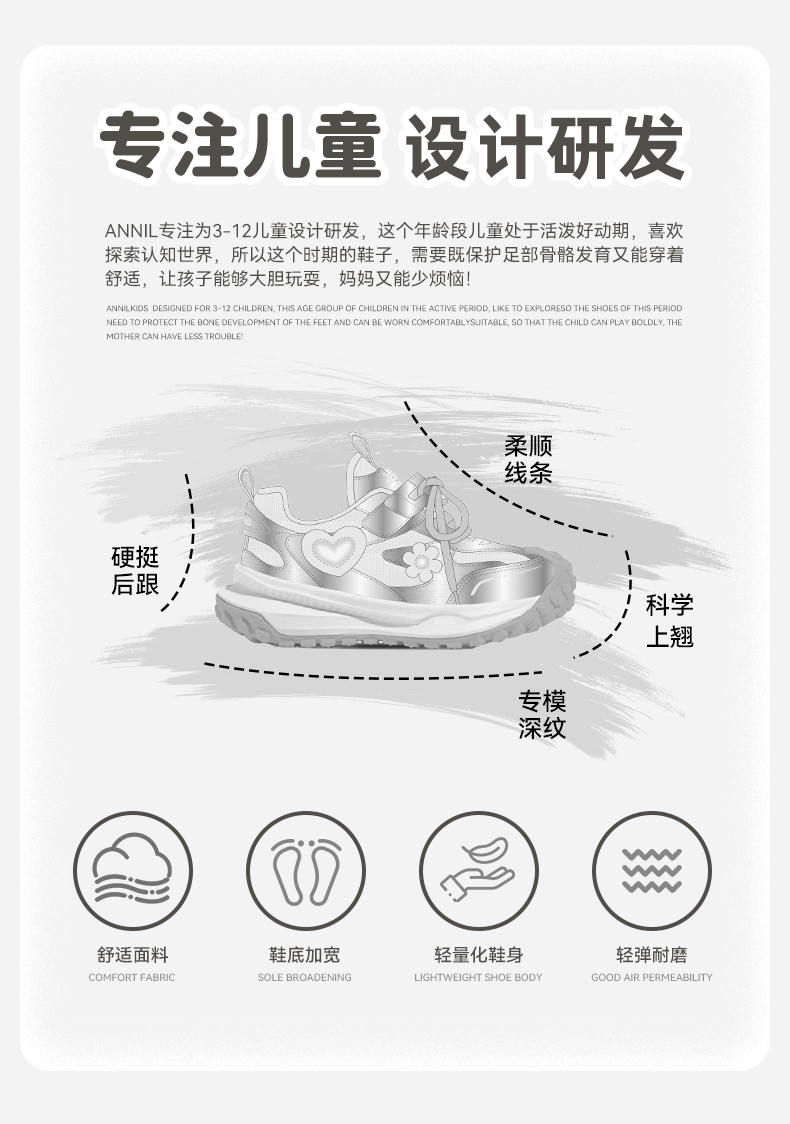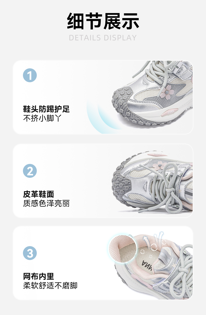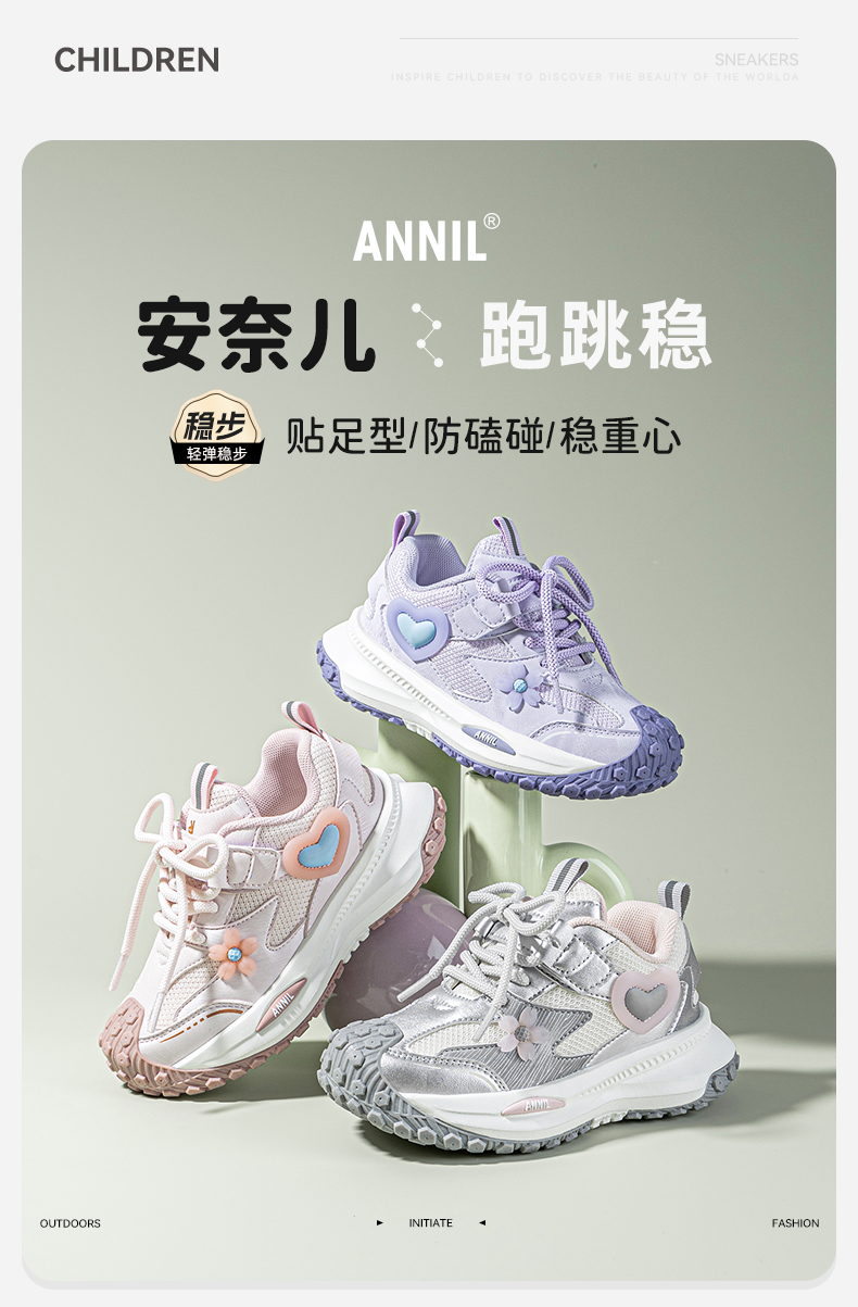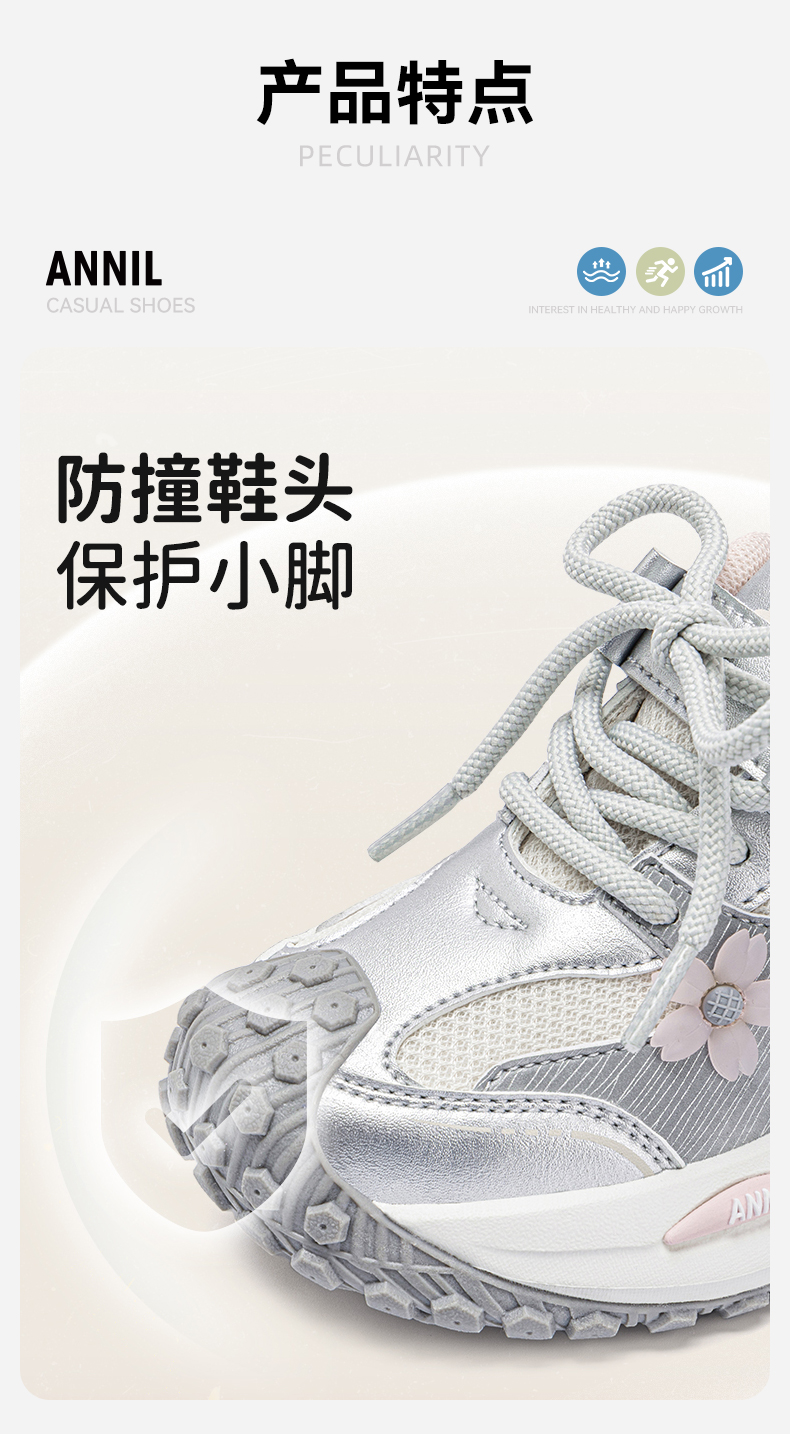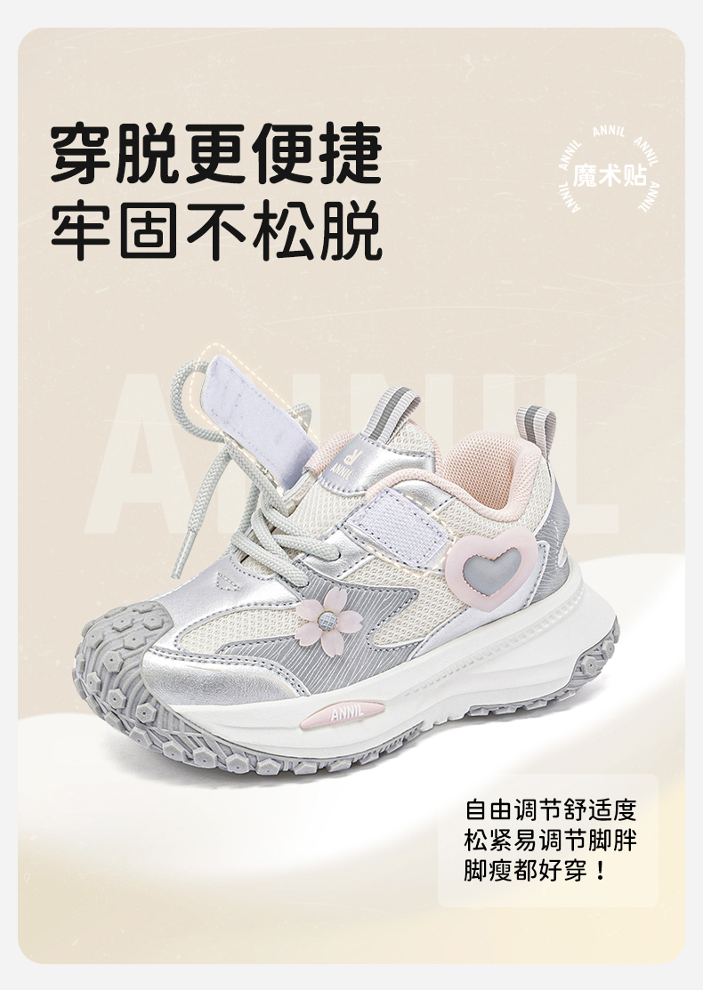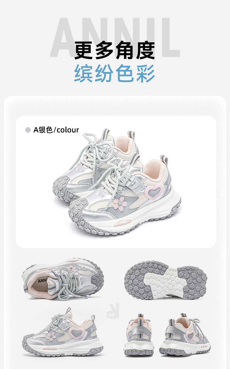 ANNIL/安奈儿童鞋女童运动鞋2025春季新款小女孩公主儿童透气宝宝网面鞋HG5105210