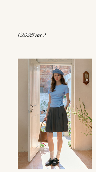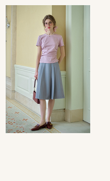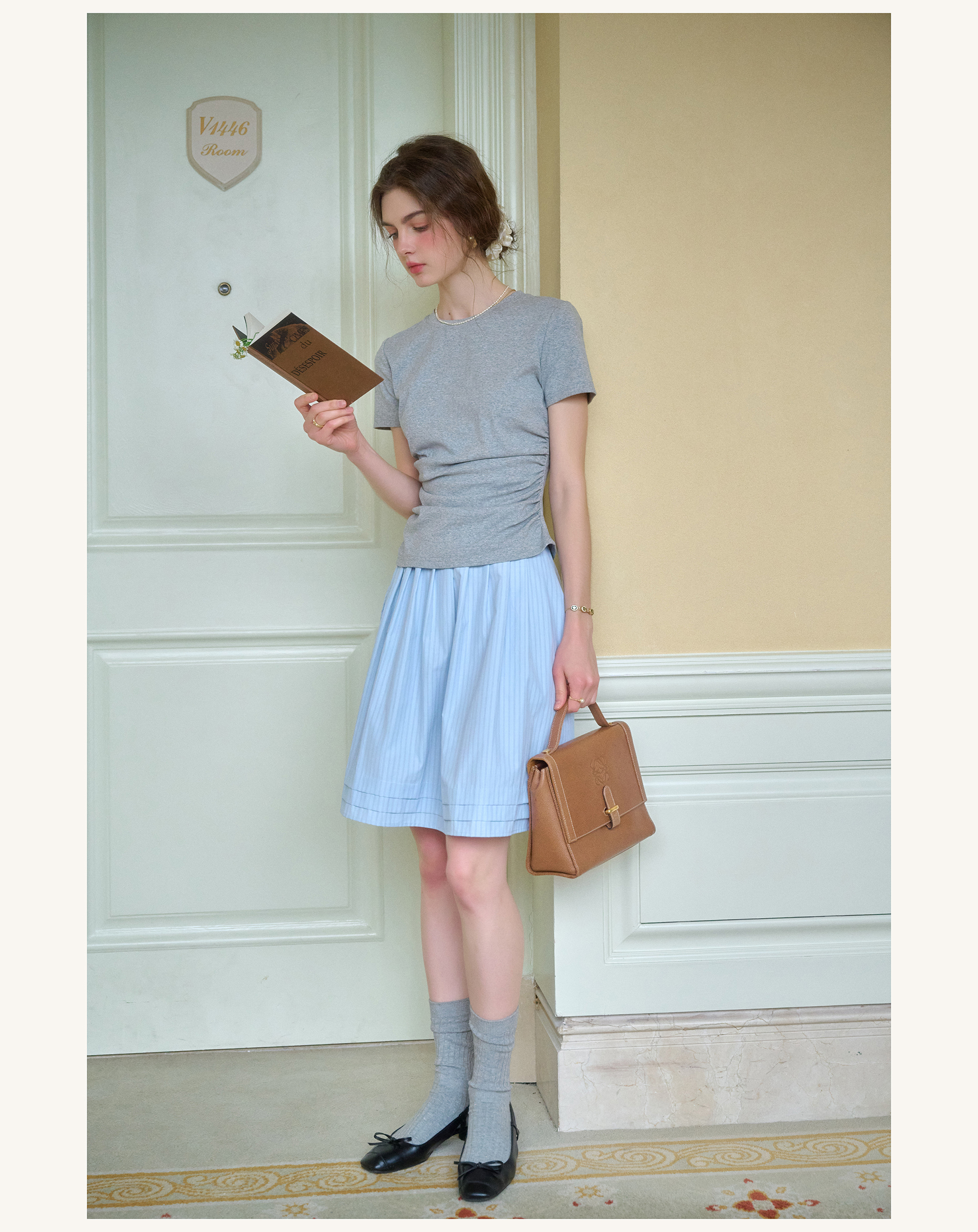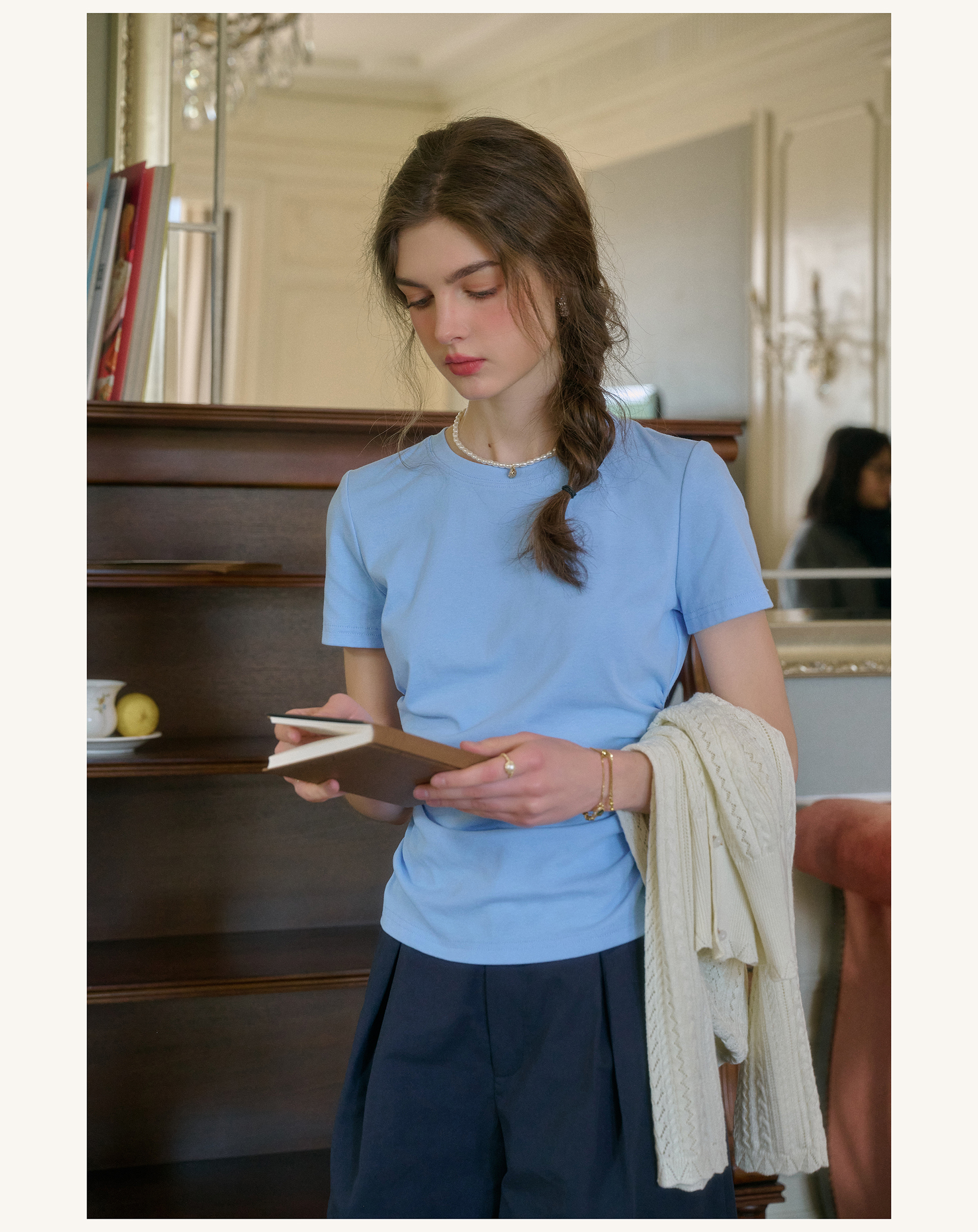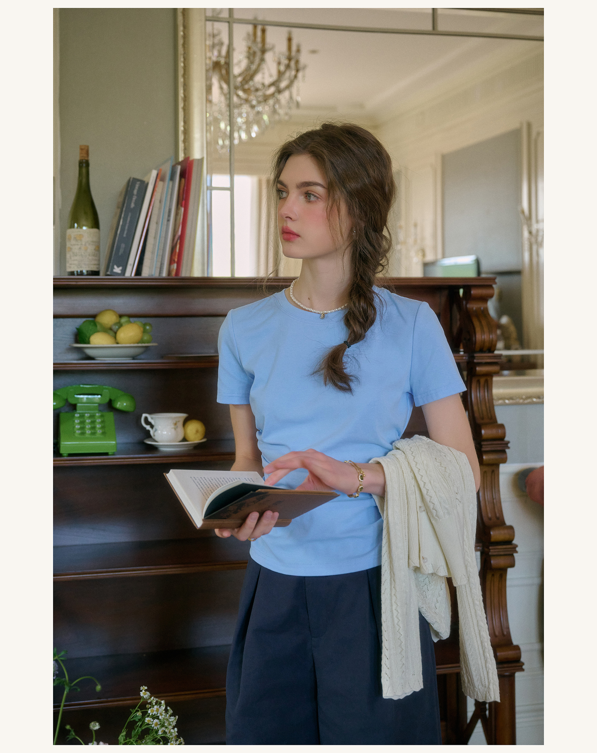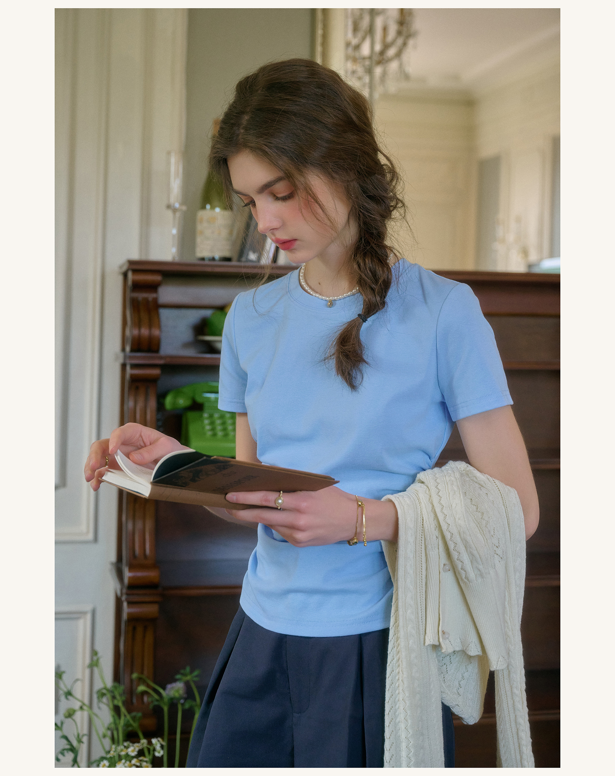 SimpleRetro可可布雷 3色腰部立体收褶短款T恤女圆领百搭显瘦上衣