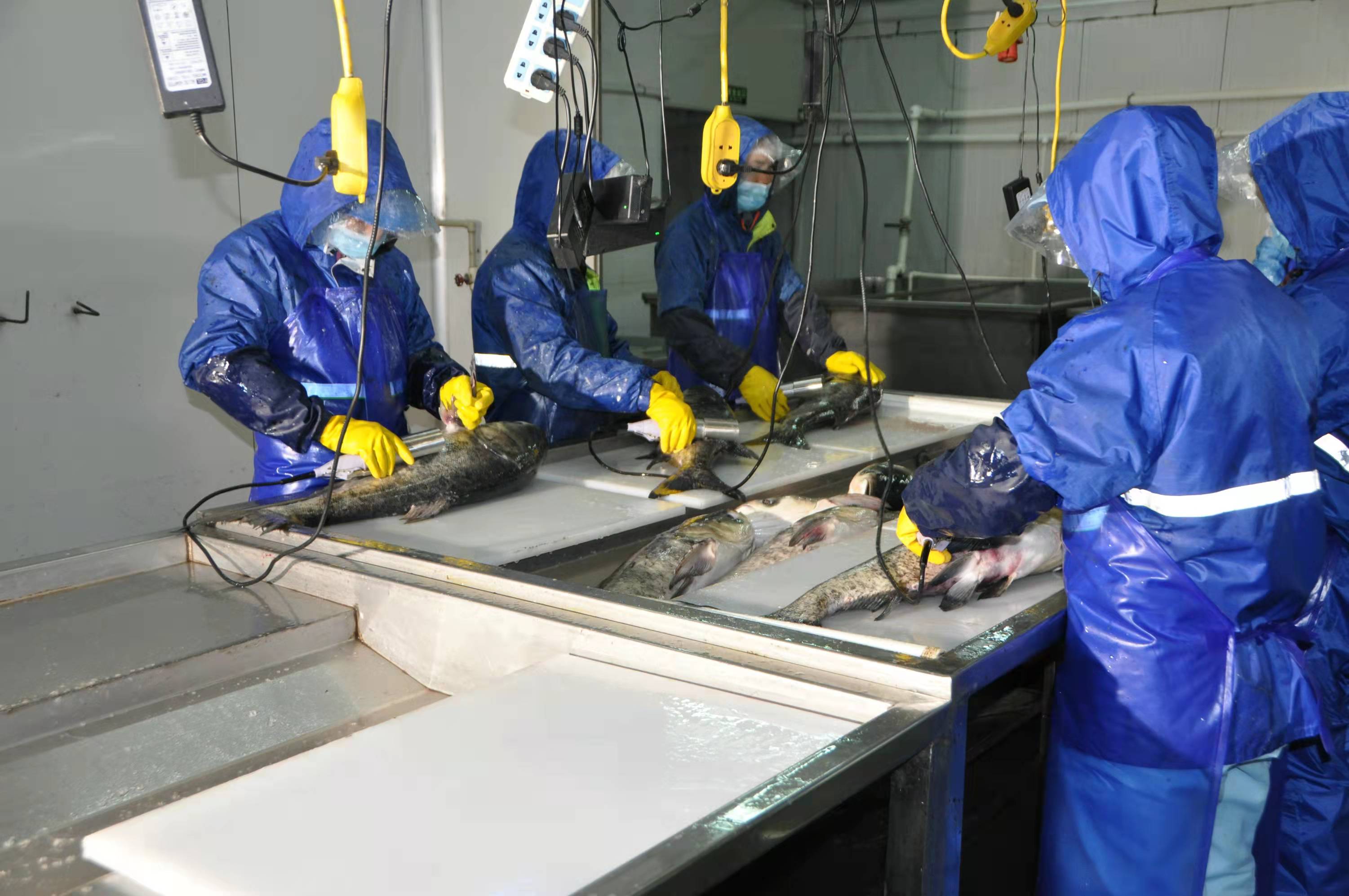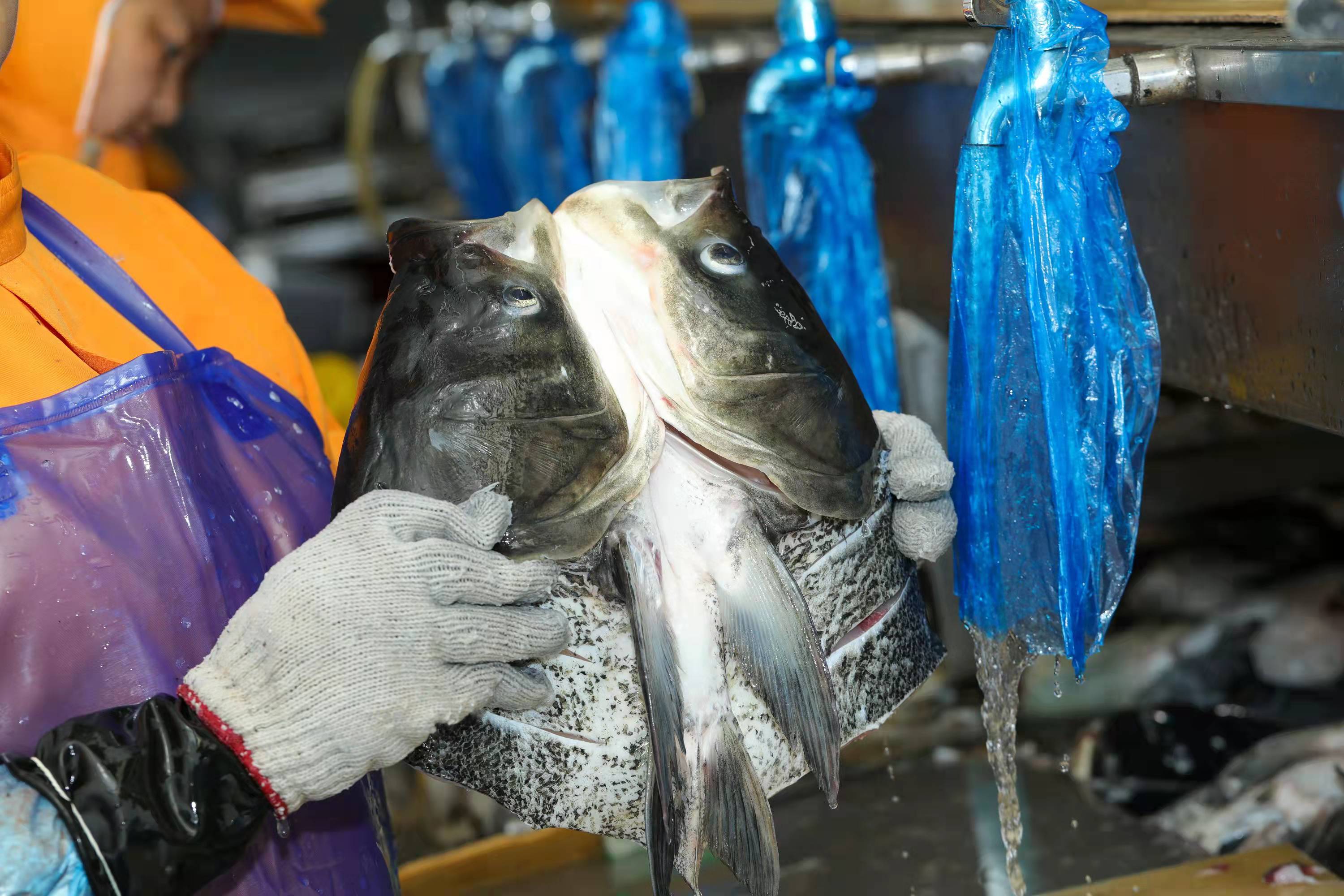 我们选用的胖头鱼在5斤左右,清晨捕捞运至加工厂,当天现捕现杀现发。去除鳞片、鳃和内脏,冰鲜装箱打包发货,顺丰速运+冰袋+保温袋+内袋真空。