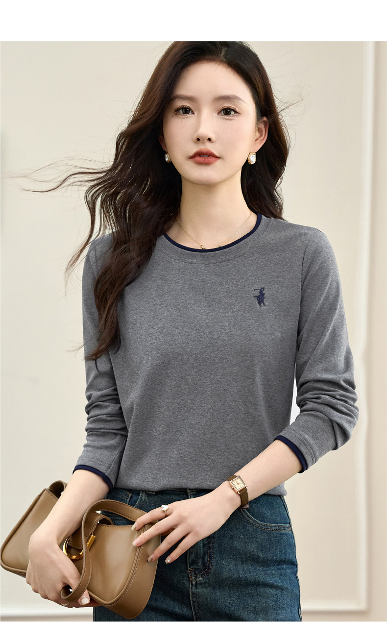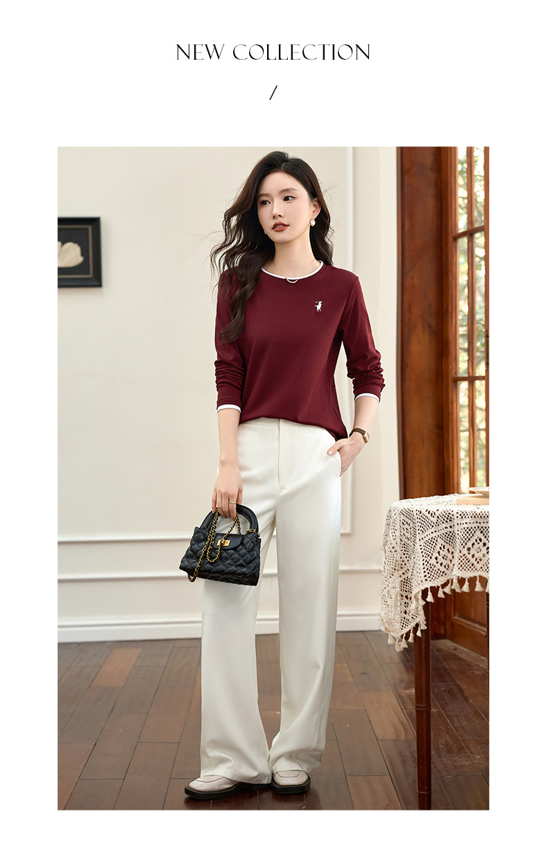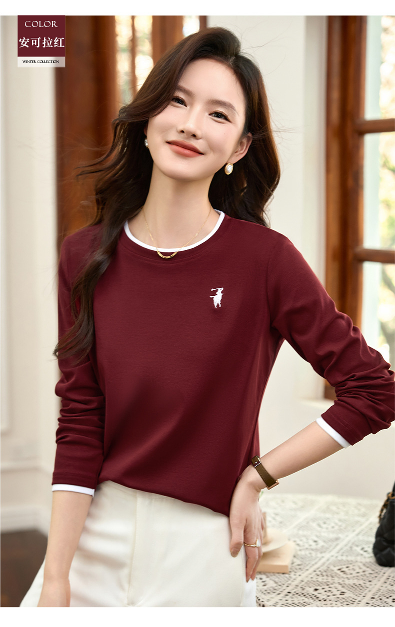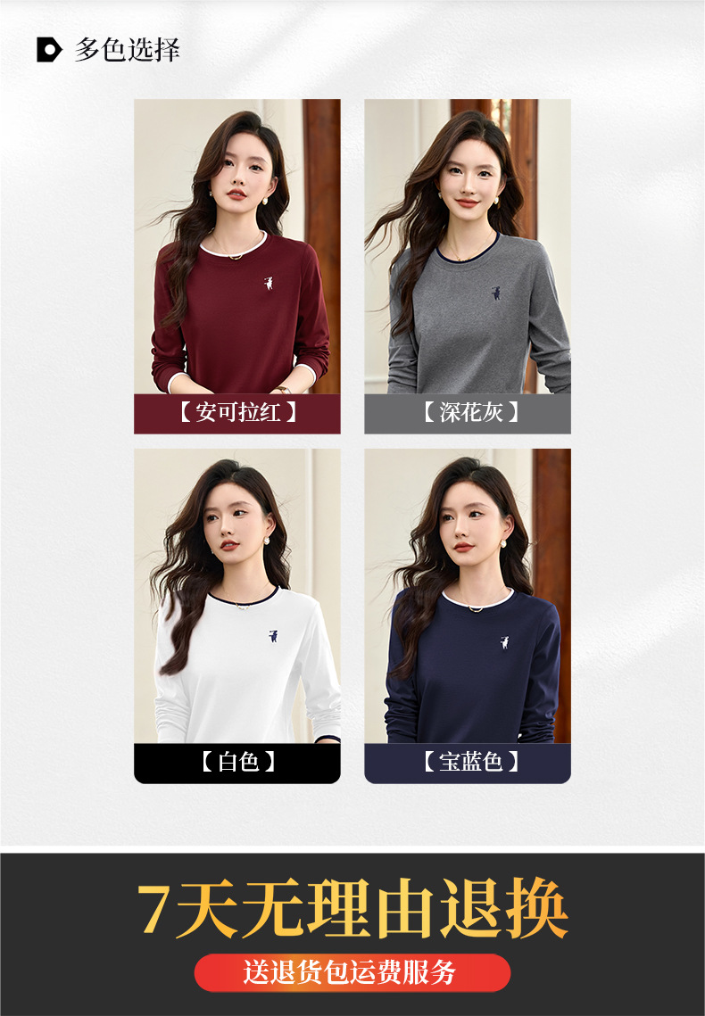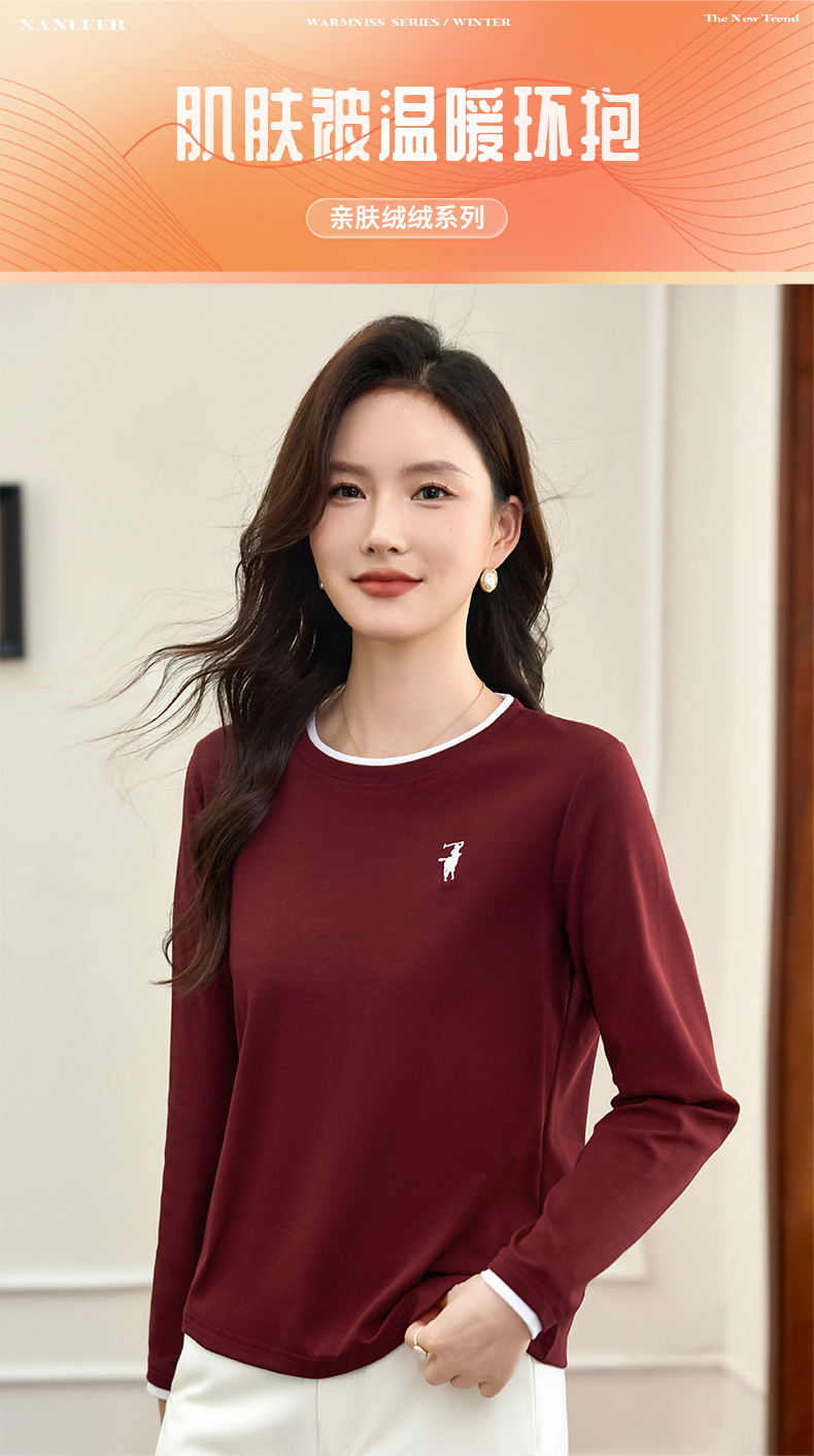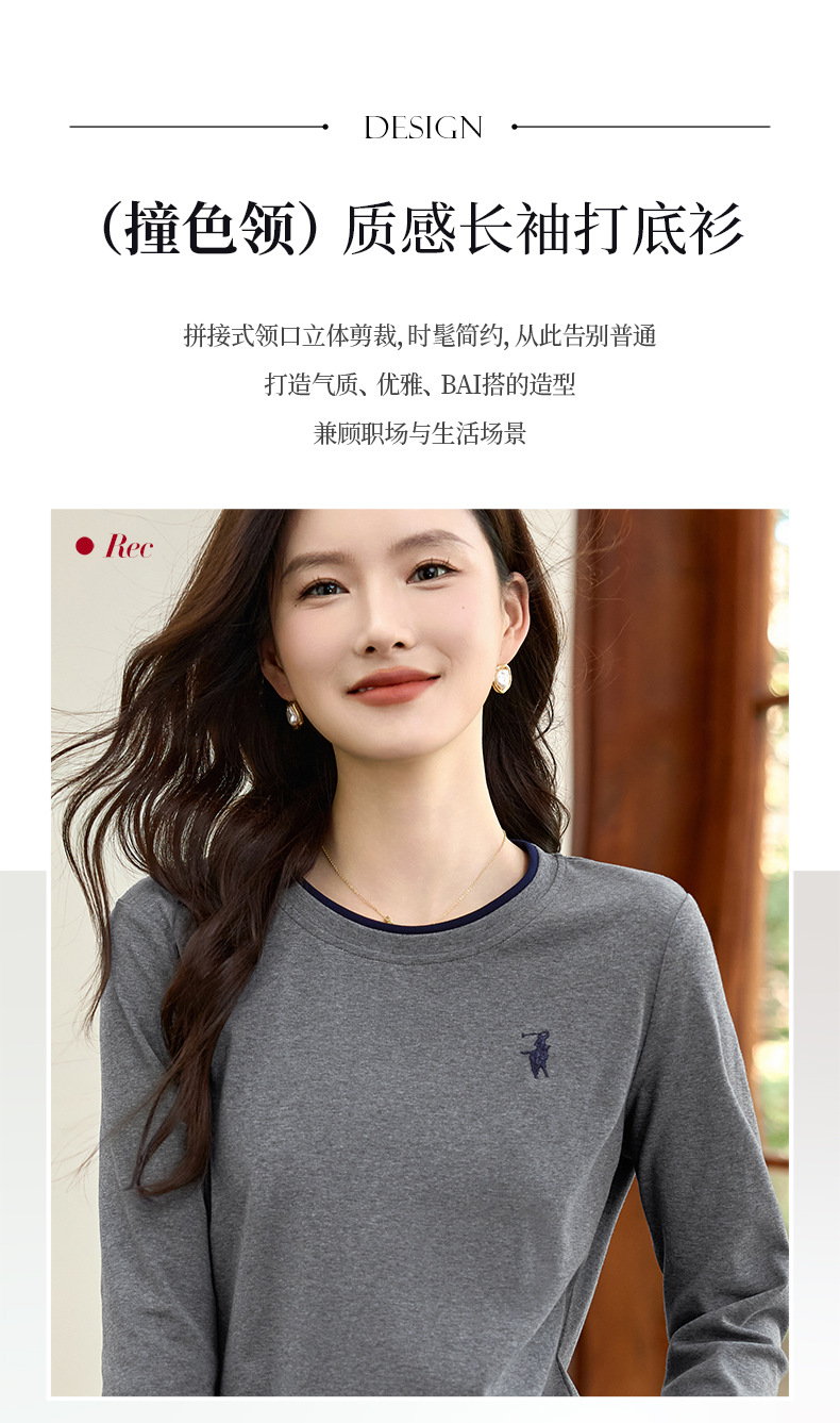百媚生 正肩长袖t恤女加绒内搭打底衫S82430125P
