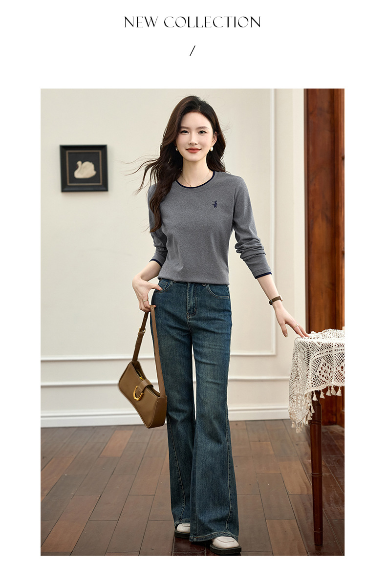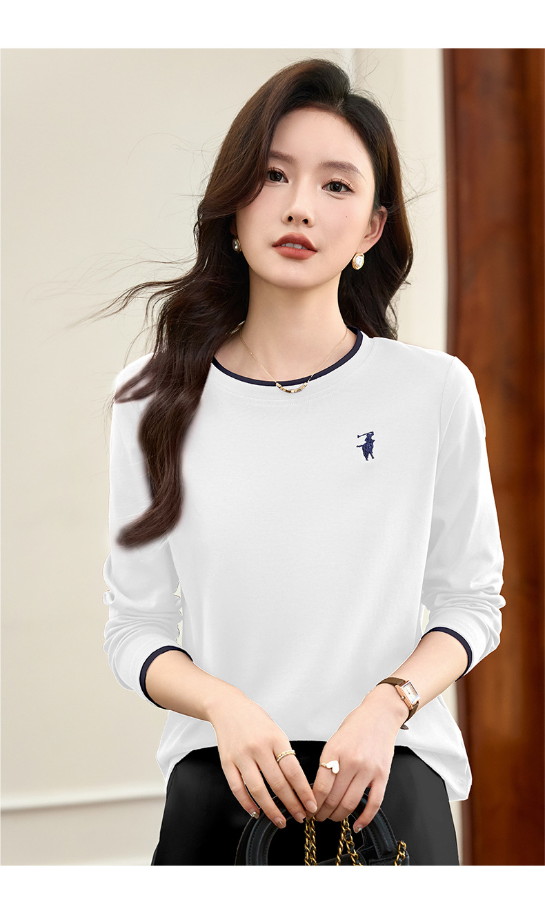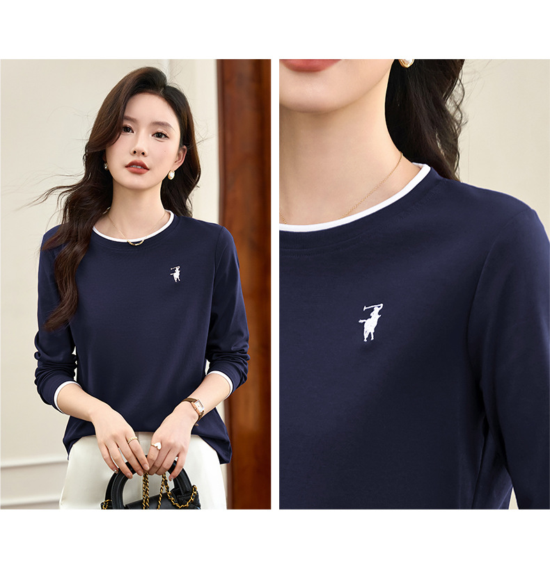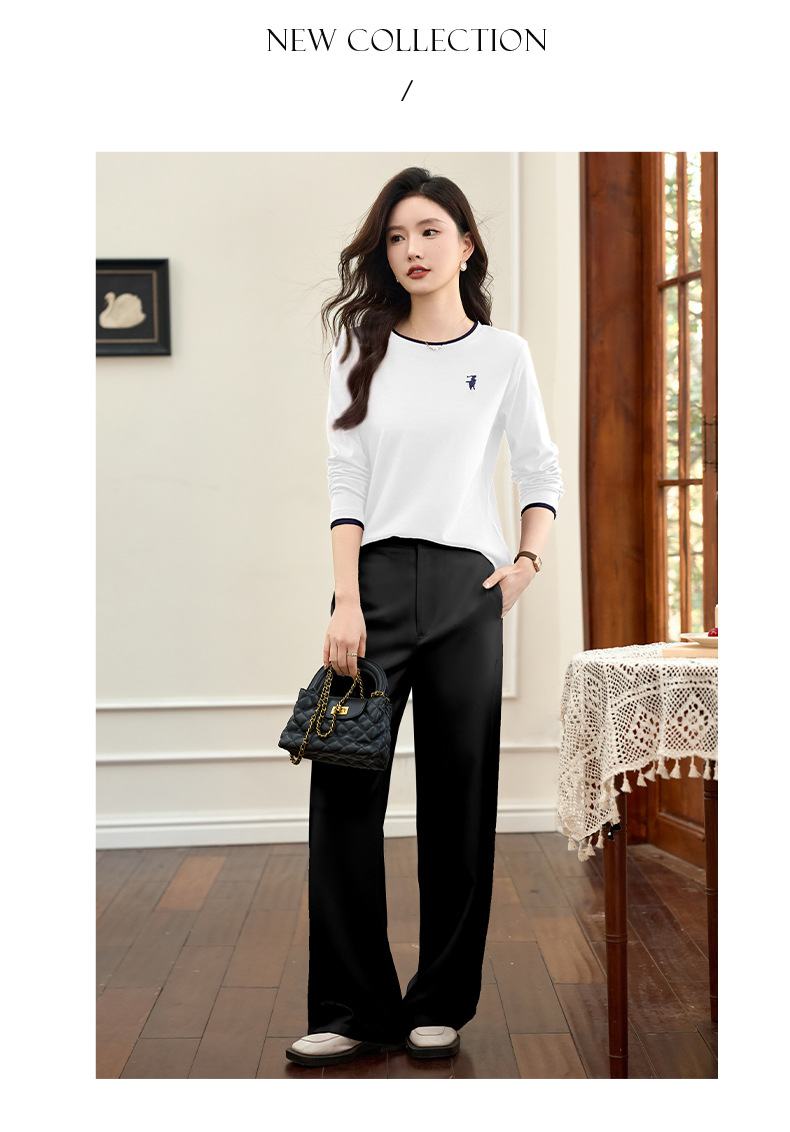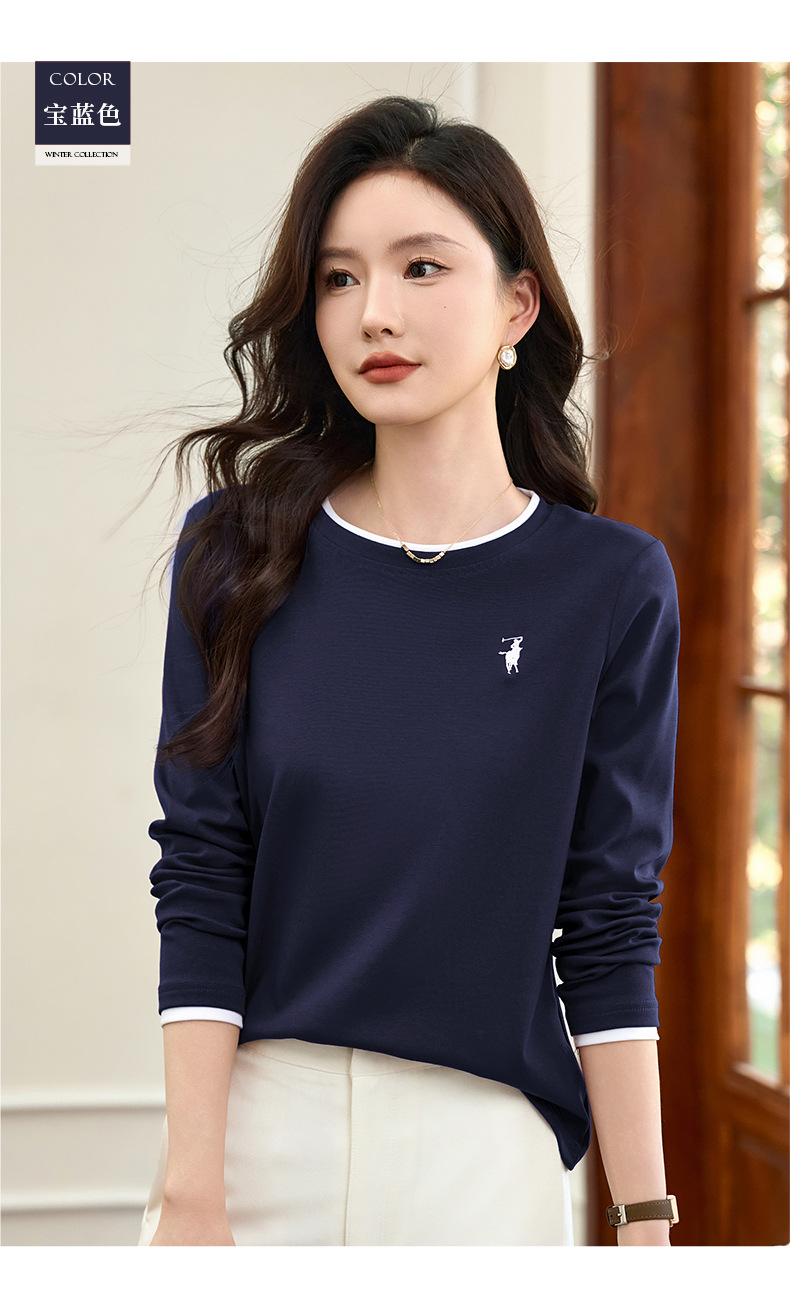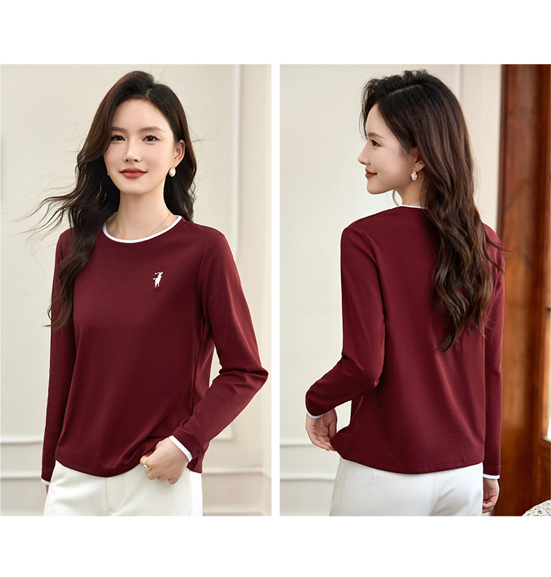 百媚生 正肩长袖t恤女加绒内搭打底衫S82430125P