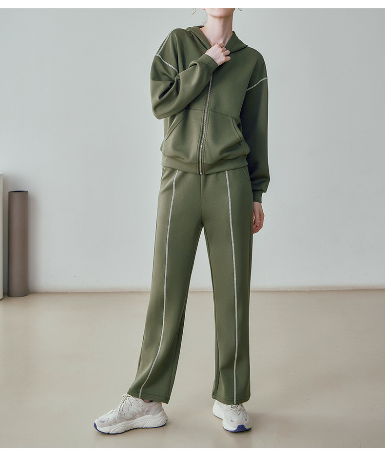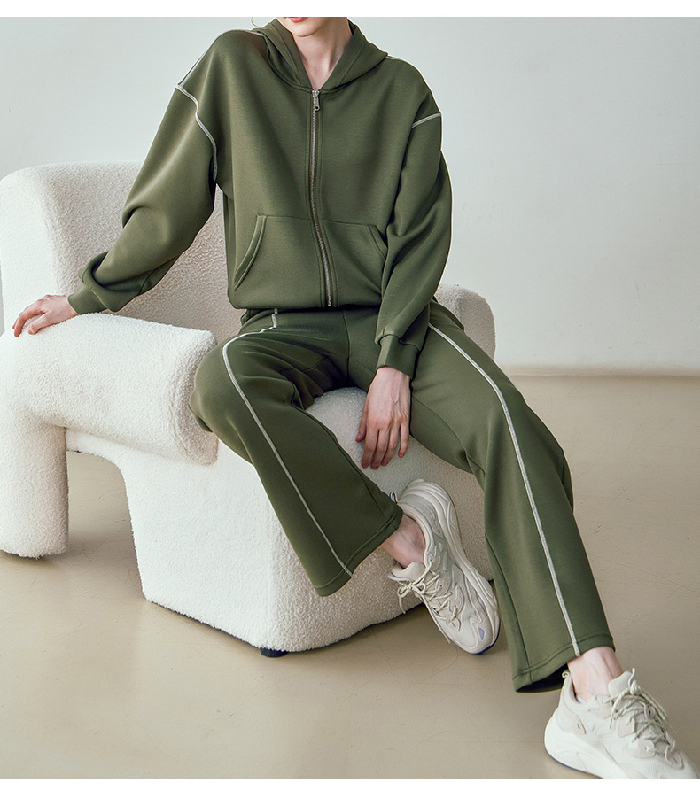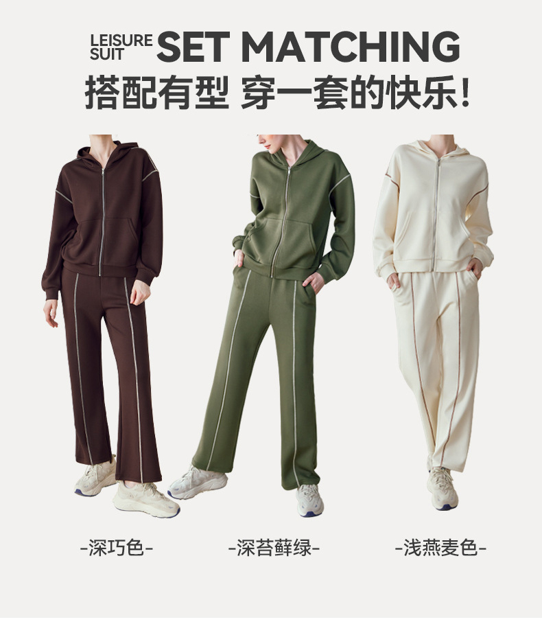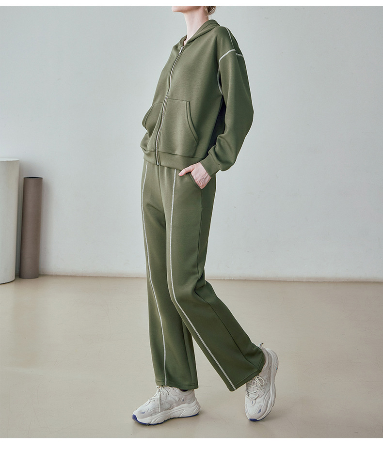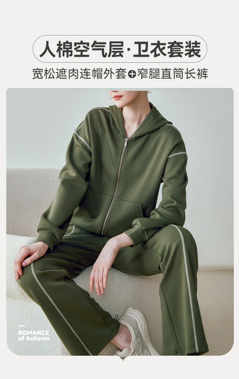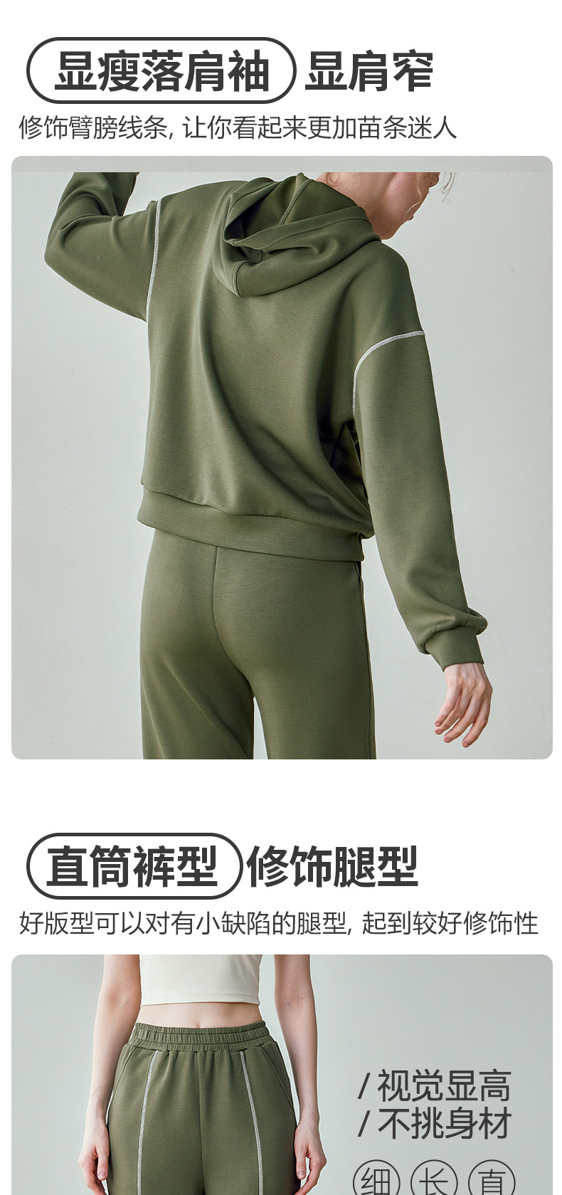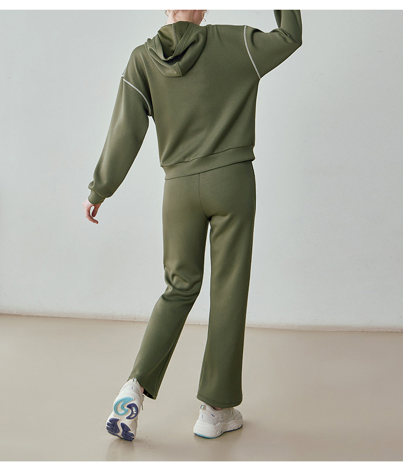 跃牌【健舞健美】系列 运动套装女秋冬新款宽松休闲拉链连帽卫衣韩版宽松直筒长裤两件套8676+6975