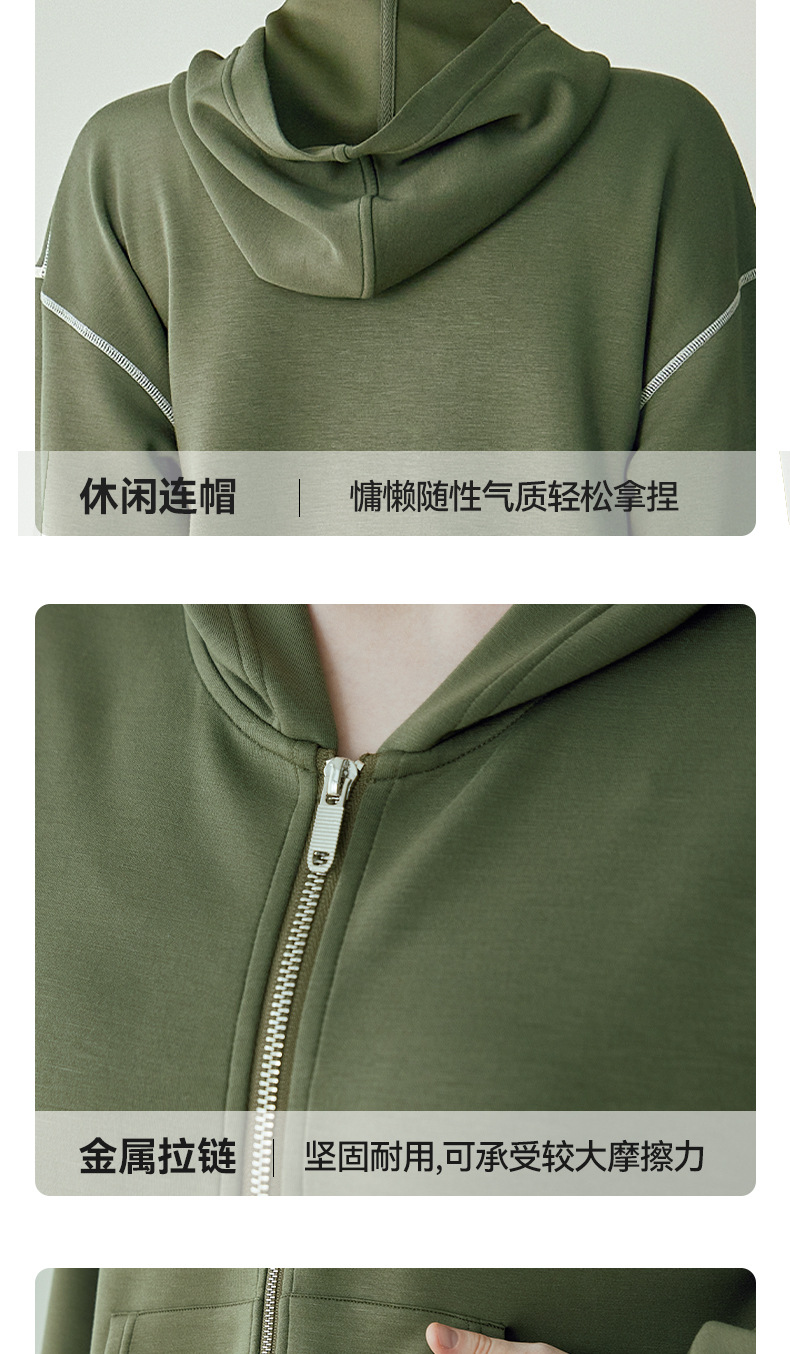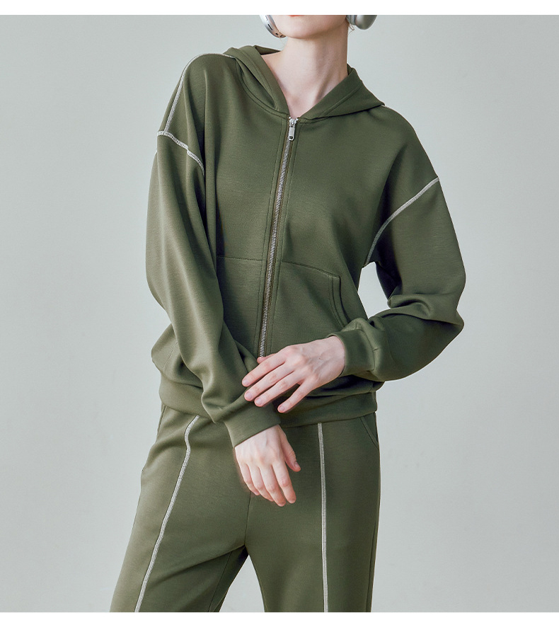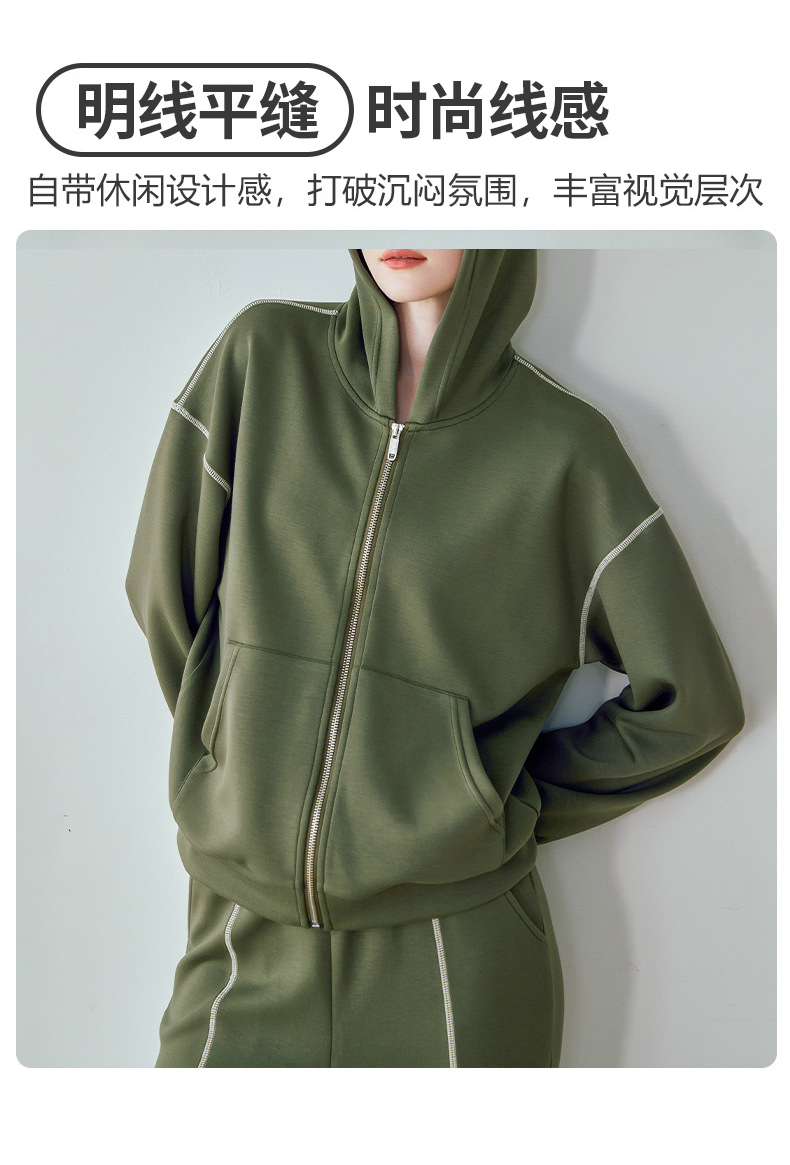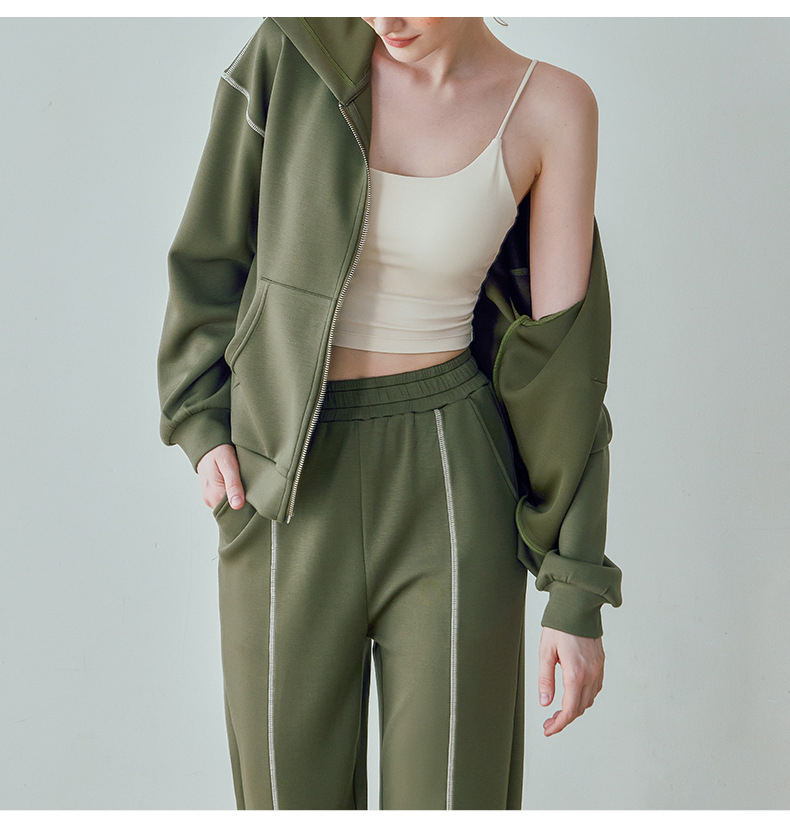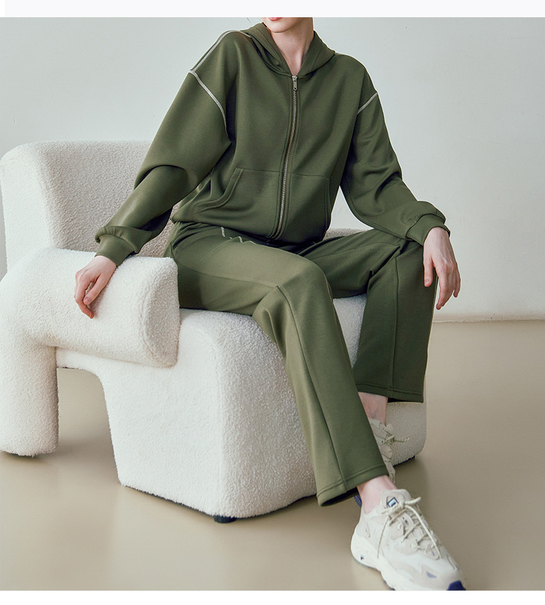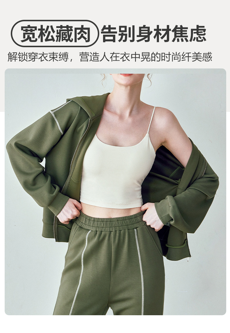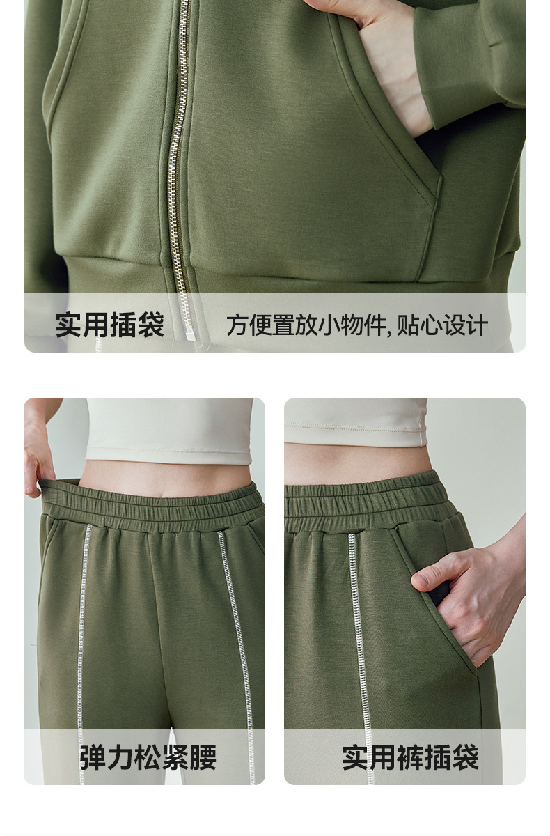 跃牌【健舞健美】系列 运动套装女秋冬新款宽松休闲拉链连帽卫衣韩版宽松直筒长裤两件套8676+6975